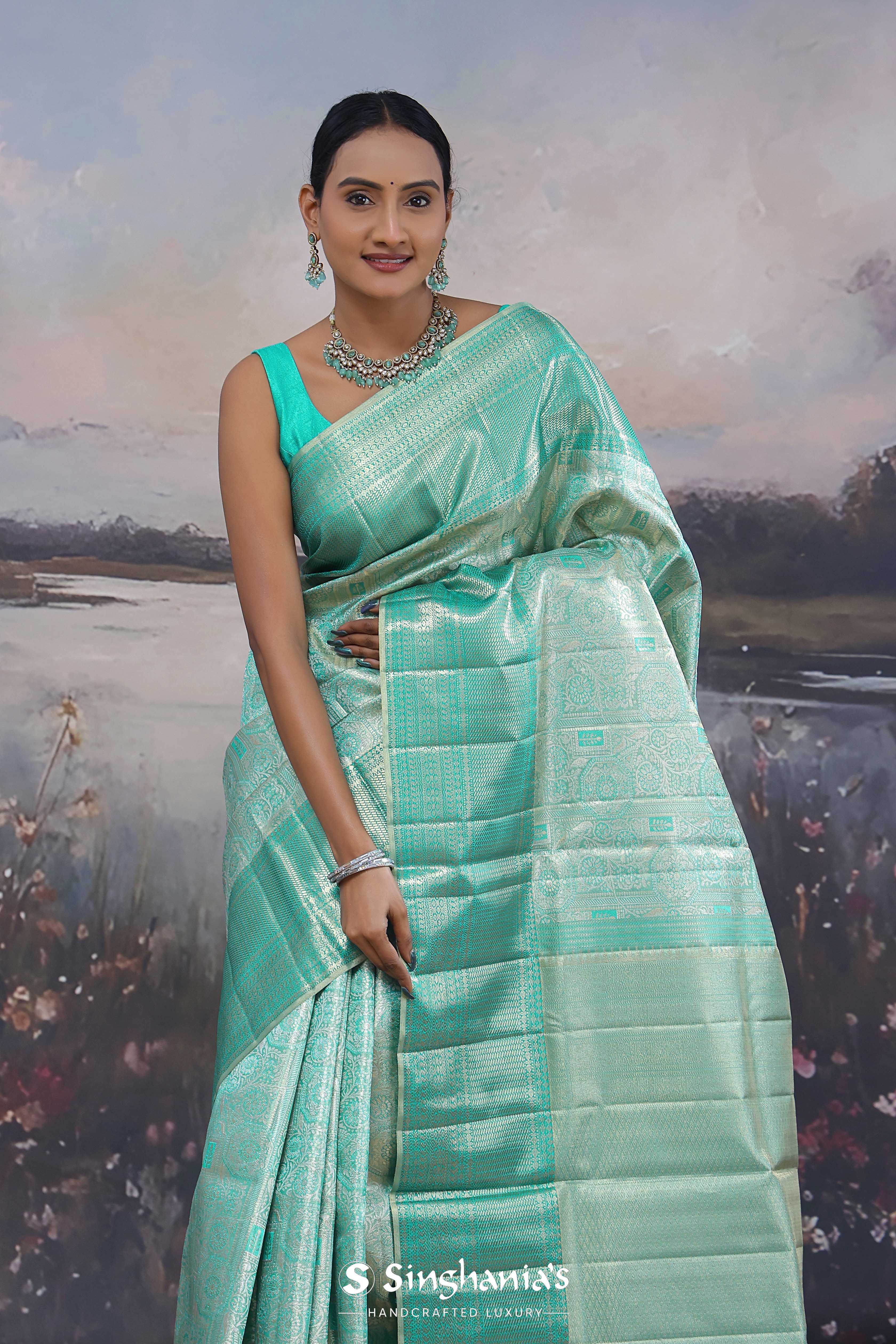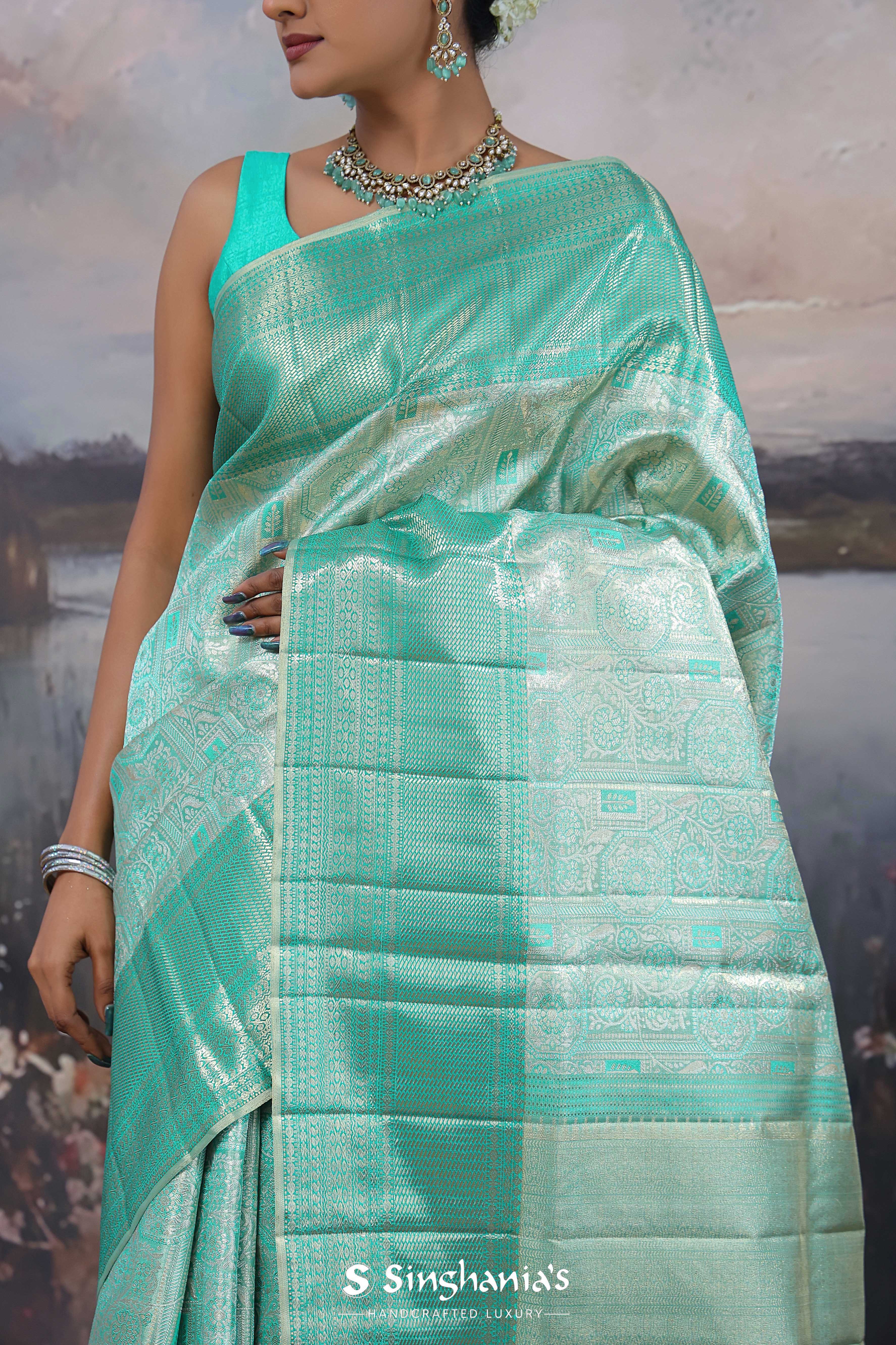 Turquoise Kanjivaram Saree