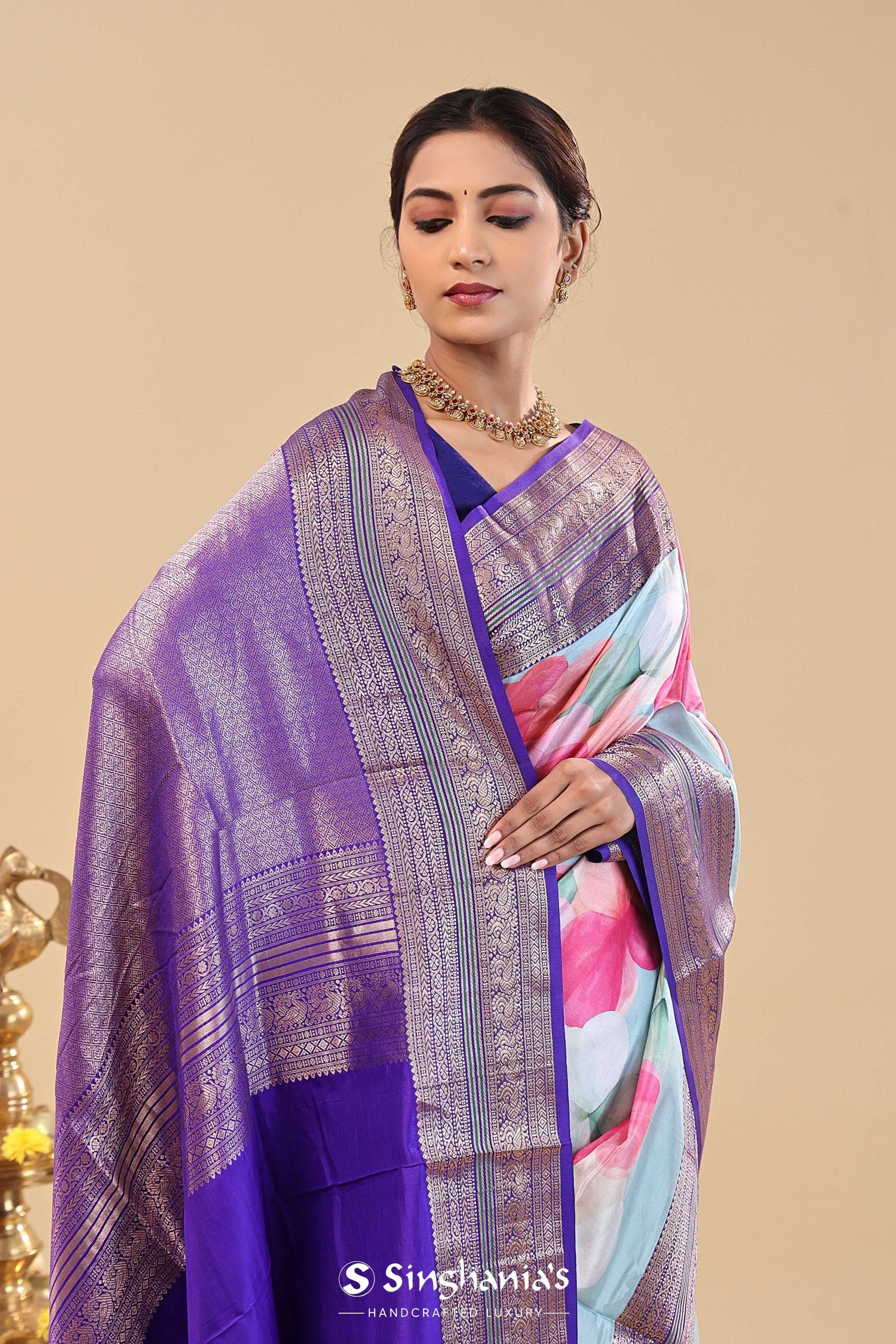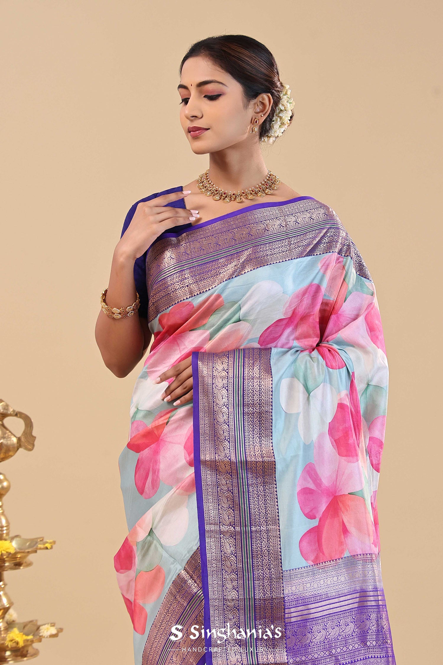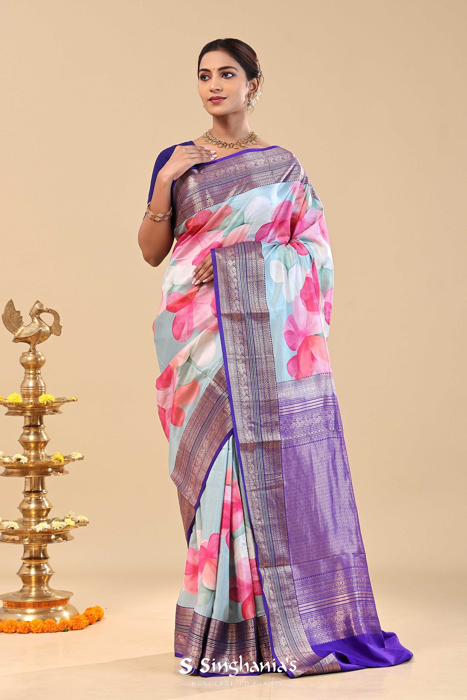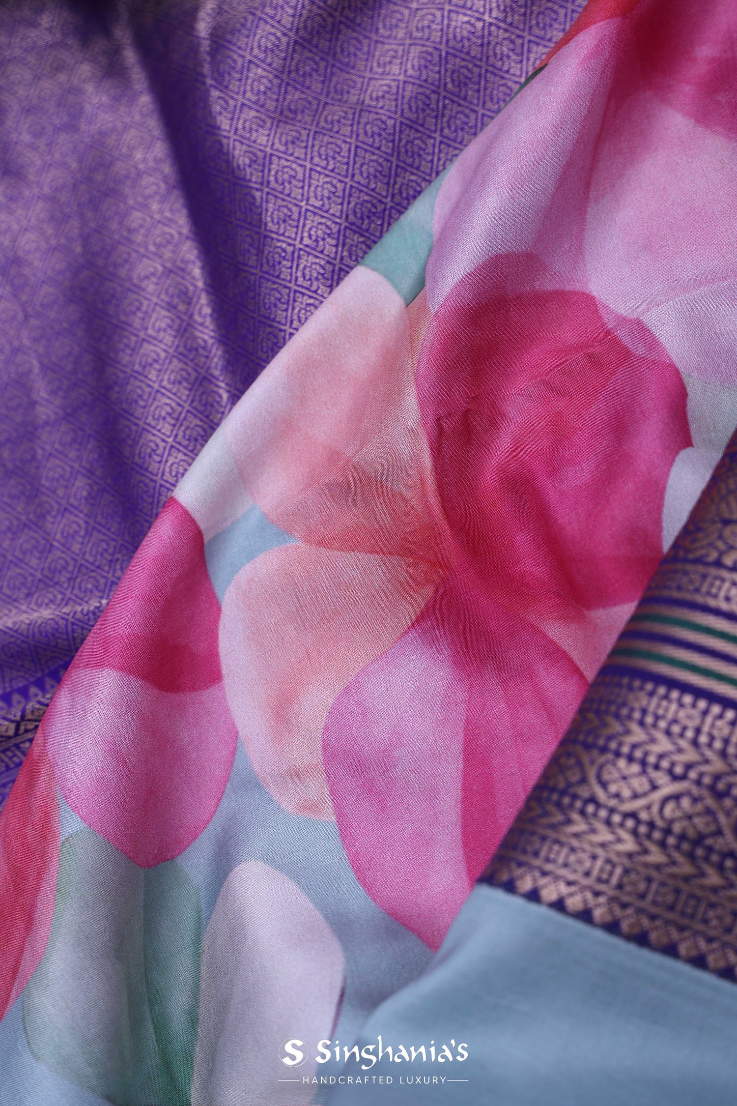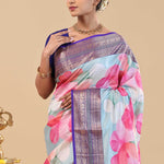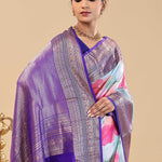 Violet Kanjivaram Saree With Floral Digital Prints
