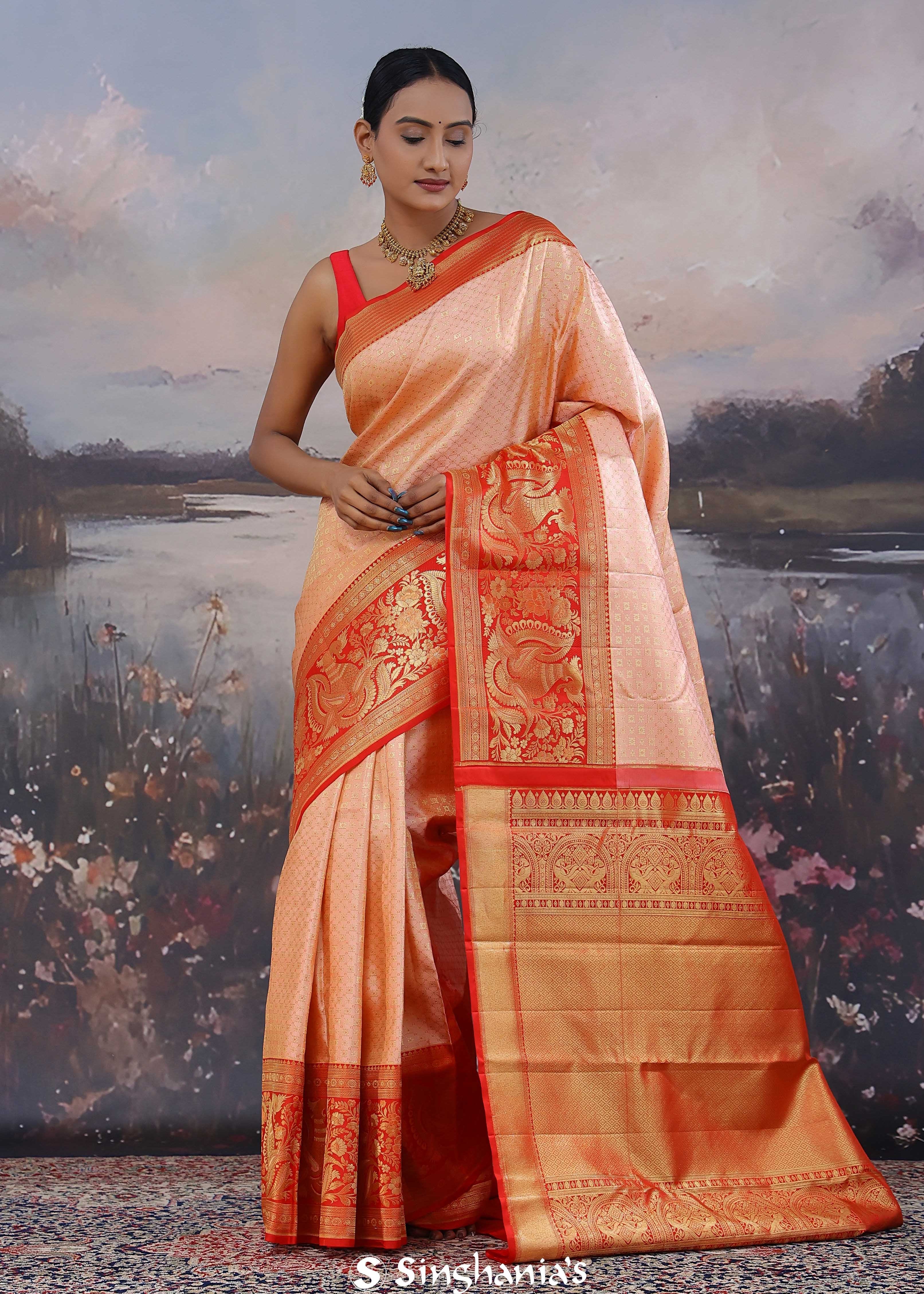 Discover the strength and unique technique of Korvai Kanjivaram Silk Sarees at Singhania's. These hand-loomed beauties are a cherished asset, favored by women for their rich cultural significance. Made with high-quality silk and intricate craftsmanship, the korvai Kanchipuram sarees showcase the best of traditional handloom work. Adorned with exquisite zari work of gold and silver, the silver zari kanjivaram sarees with korvai border silk sarees are a symbol of elegance. For authentic korvai silk sarees online shopping, choose Singhania's. Explore our comprehensive range and experience the timeless beauty of these exquisite sarees.