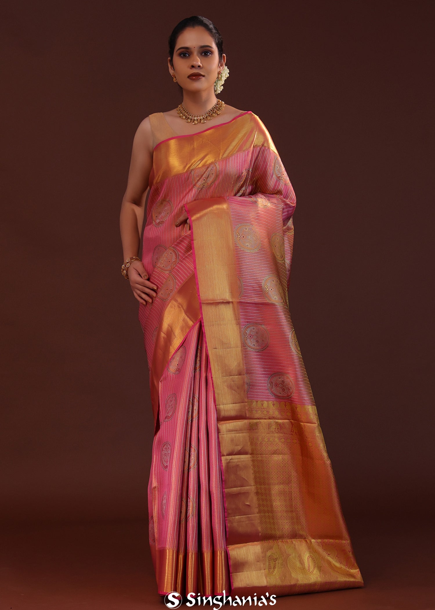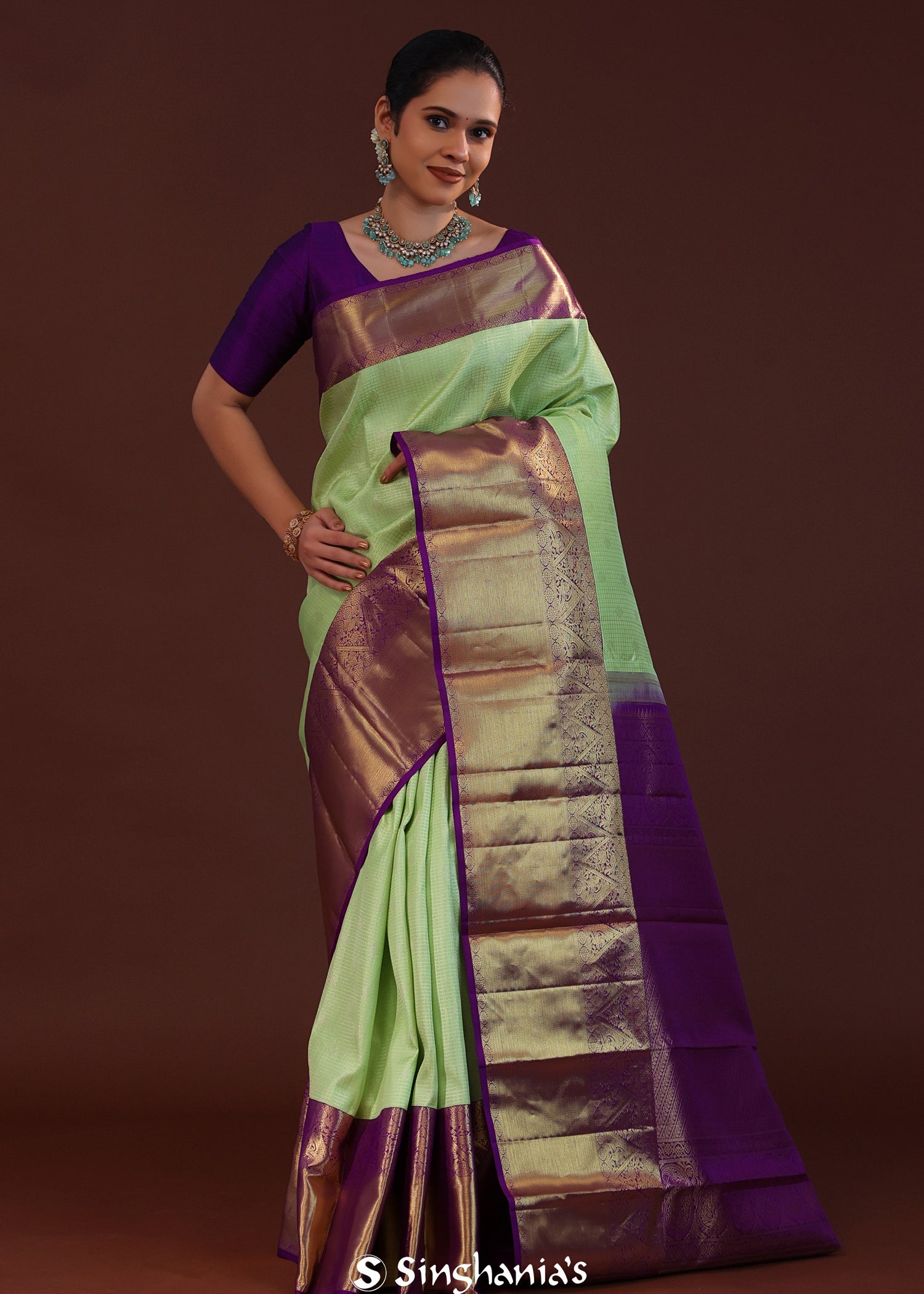 Discover the strength and unique technique of Korvai Kanjivaram Silk Sarees at Singhania's. These hand-loomed beauties are a cherished asset, favored by women for their rich cultural significance. Made with high-quality silk and intricate craftsmanship, the korvai Kanchipuram sarees showcase the best of traditional handloom work. Adorned with exquisite zari work of gold and silver, the silver zari kanjivaram sarees with korvai border silk sarees are a symbol of elegance. For authentic korvai silk sarees online shopping, choose Singhania's. Explore our comprehensive range and experience the timeless beauty of these exquisite sarees.