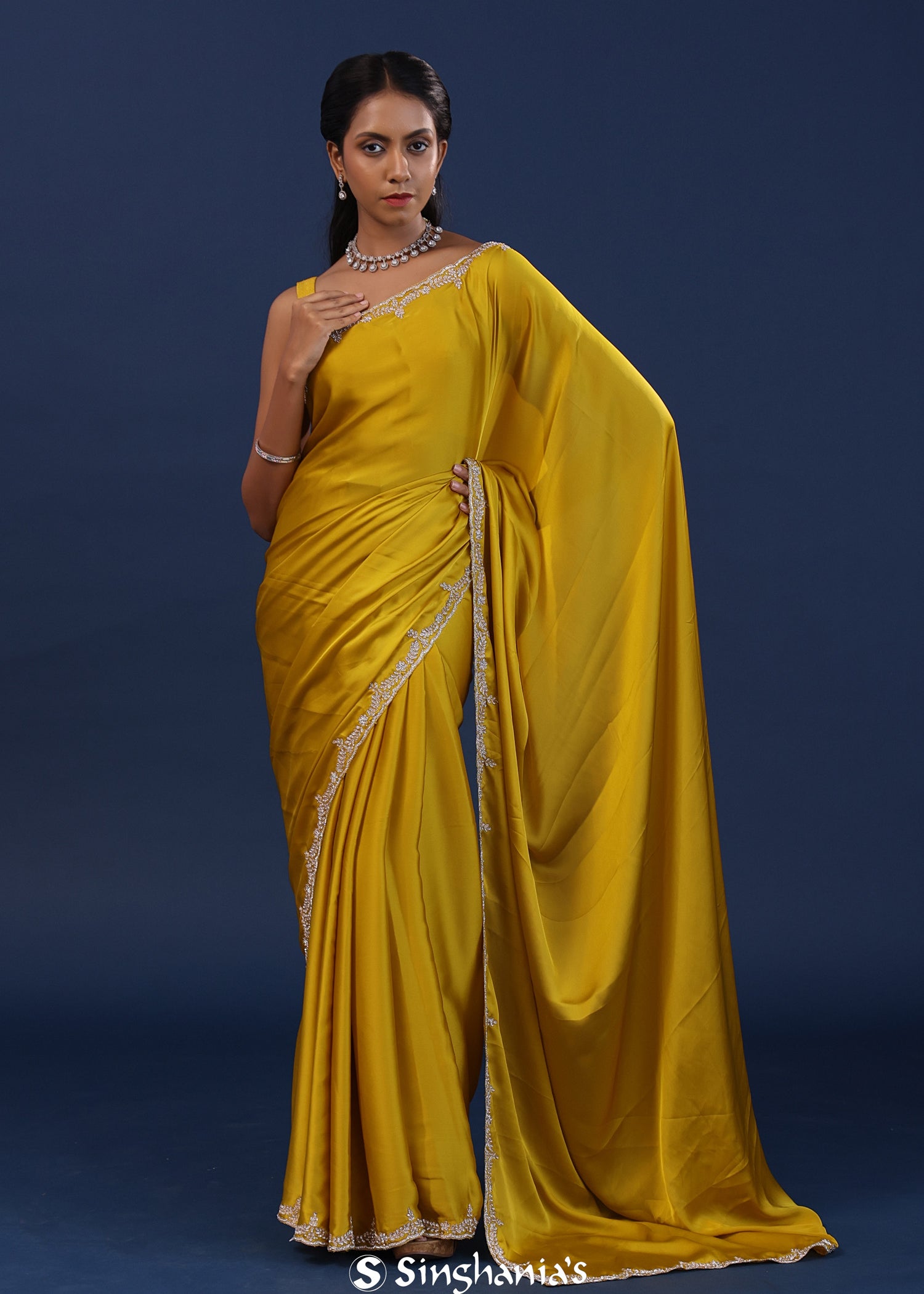 Golden Yellow Cotton Santoon Embroidered Kurti Set