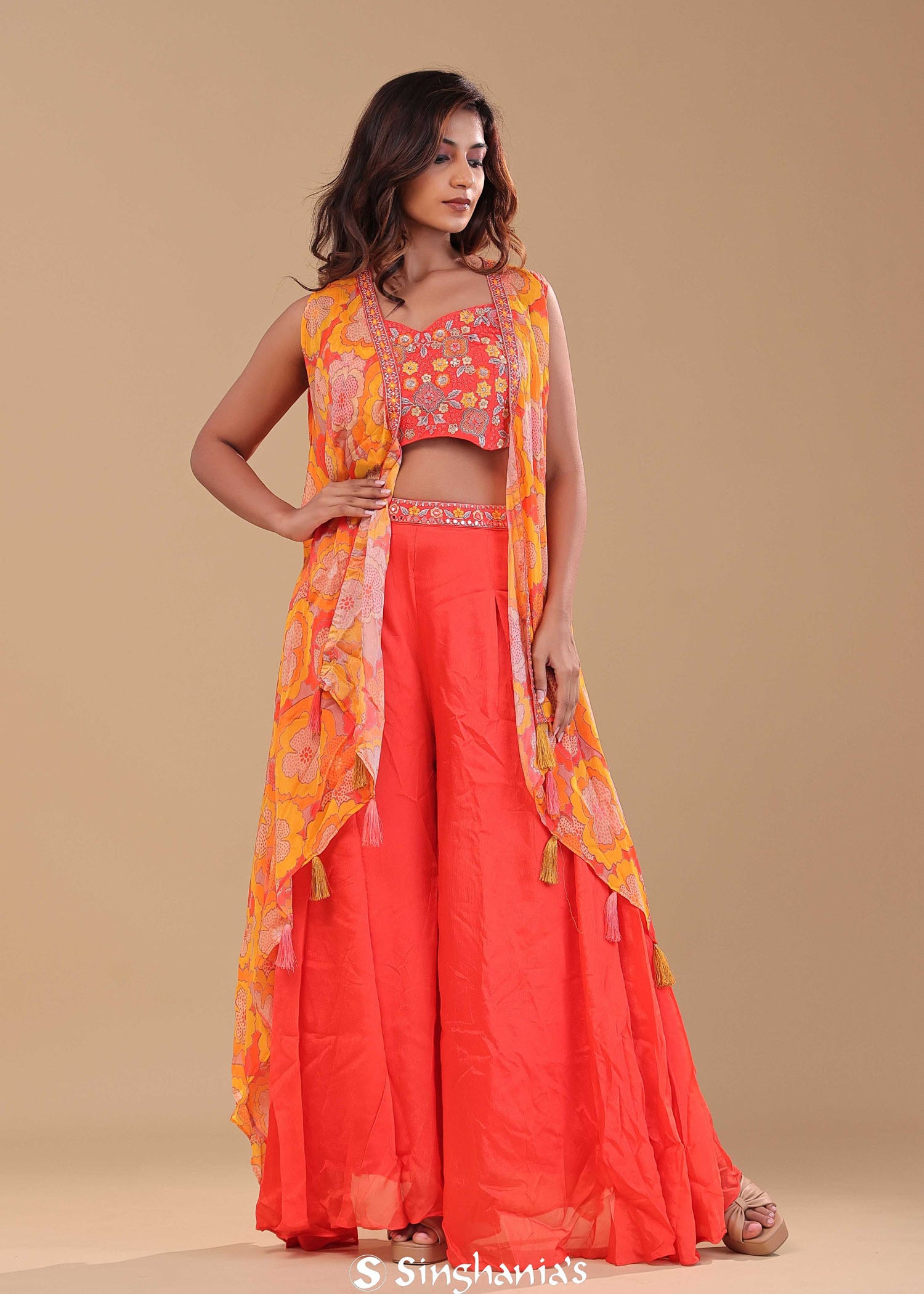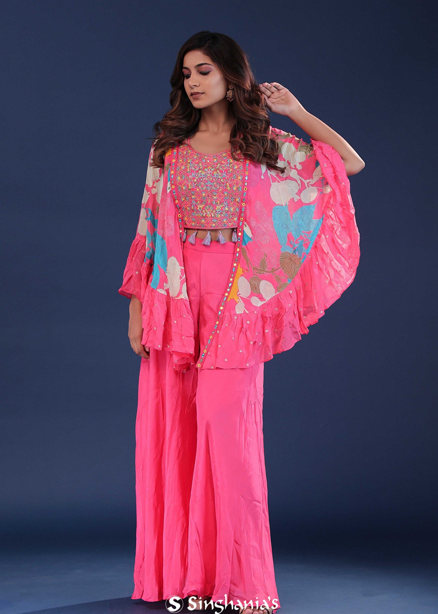 Bright Pink Banarasi Tissue Straight Cut Palazzo Set
