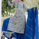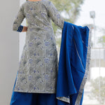 Grey And Blue Floral Printed Cotton Palazzo And Kurta Set