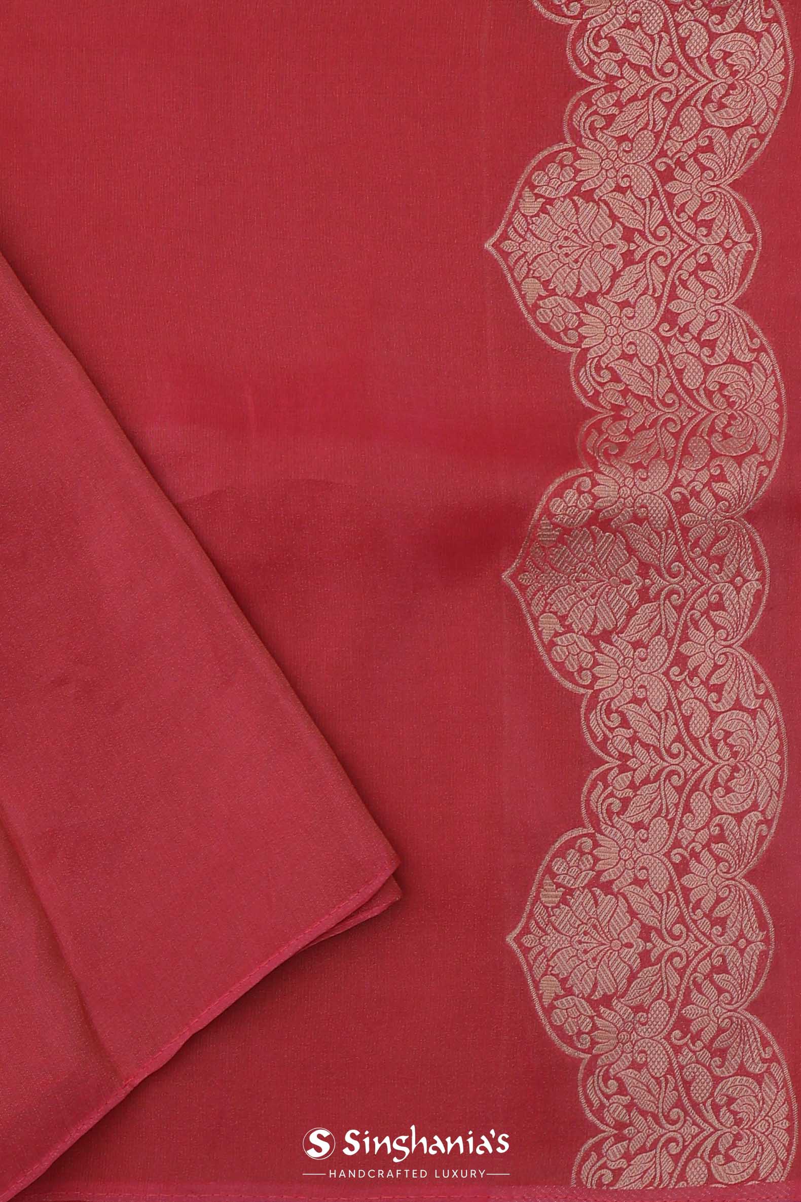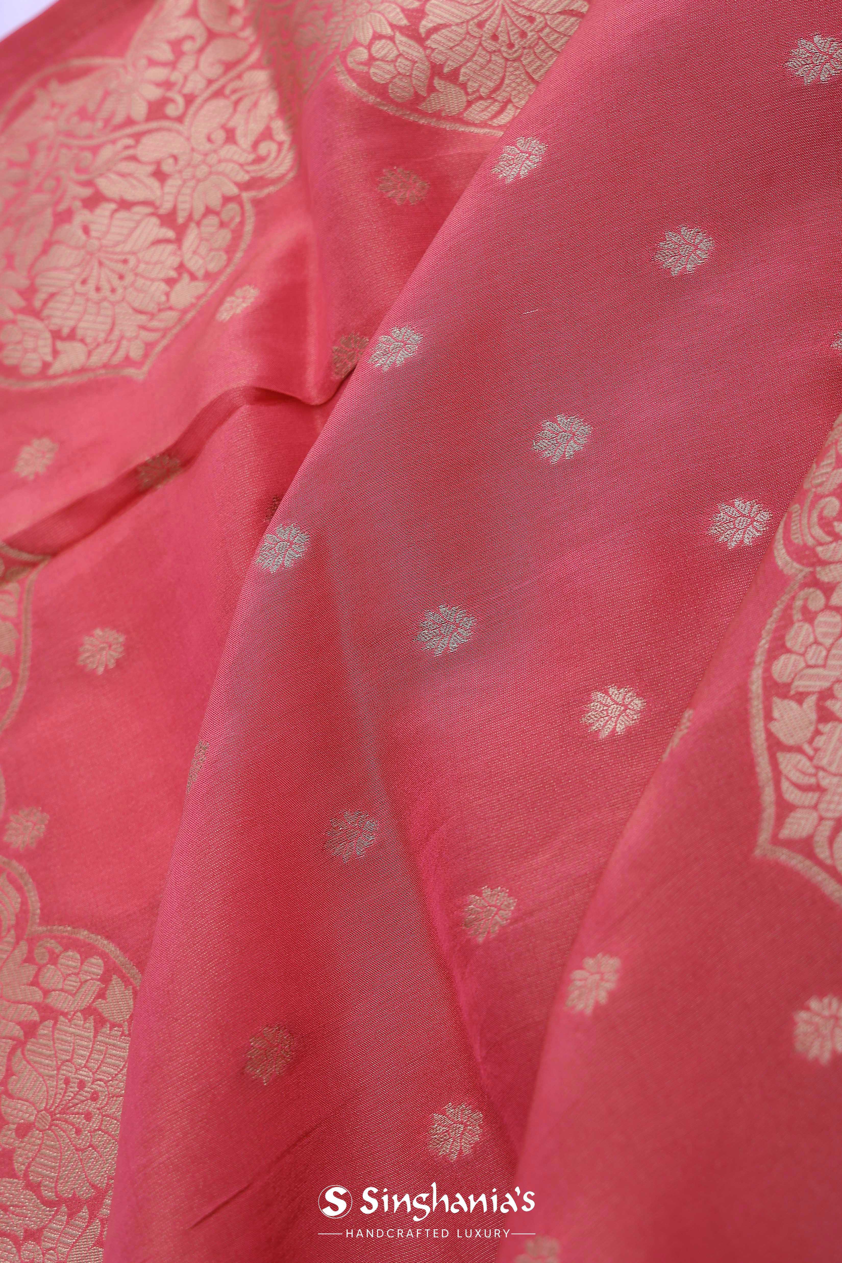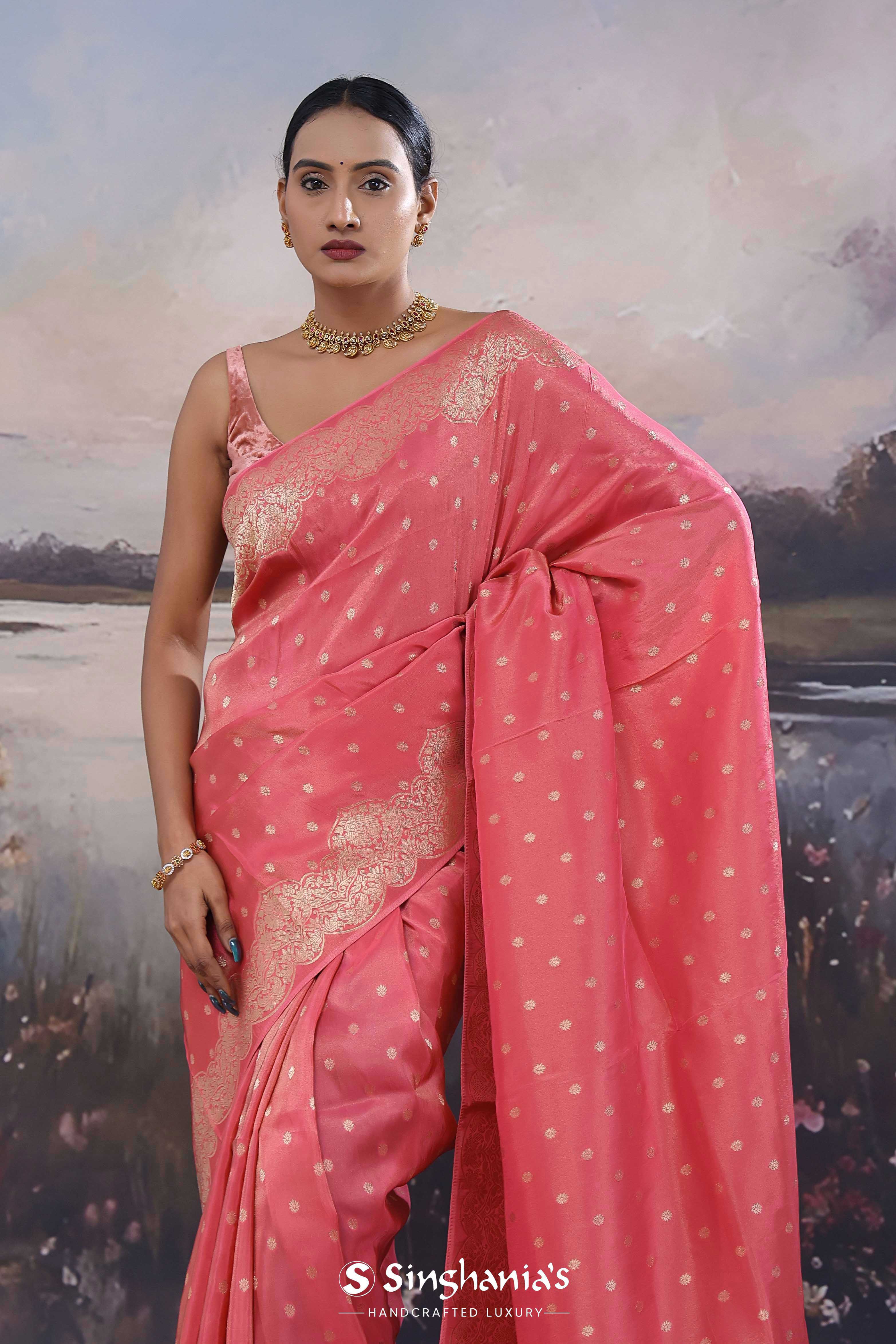 The authentic silk base of the Light carmine pink banarasi saree featuring butti's and self border adorned with floral design making every moment festive.
