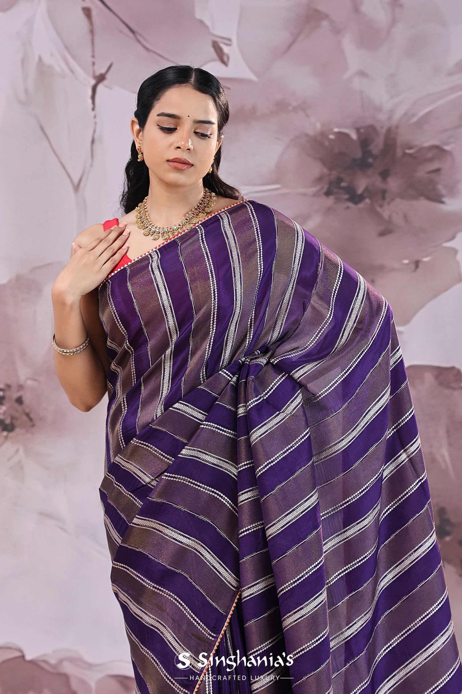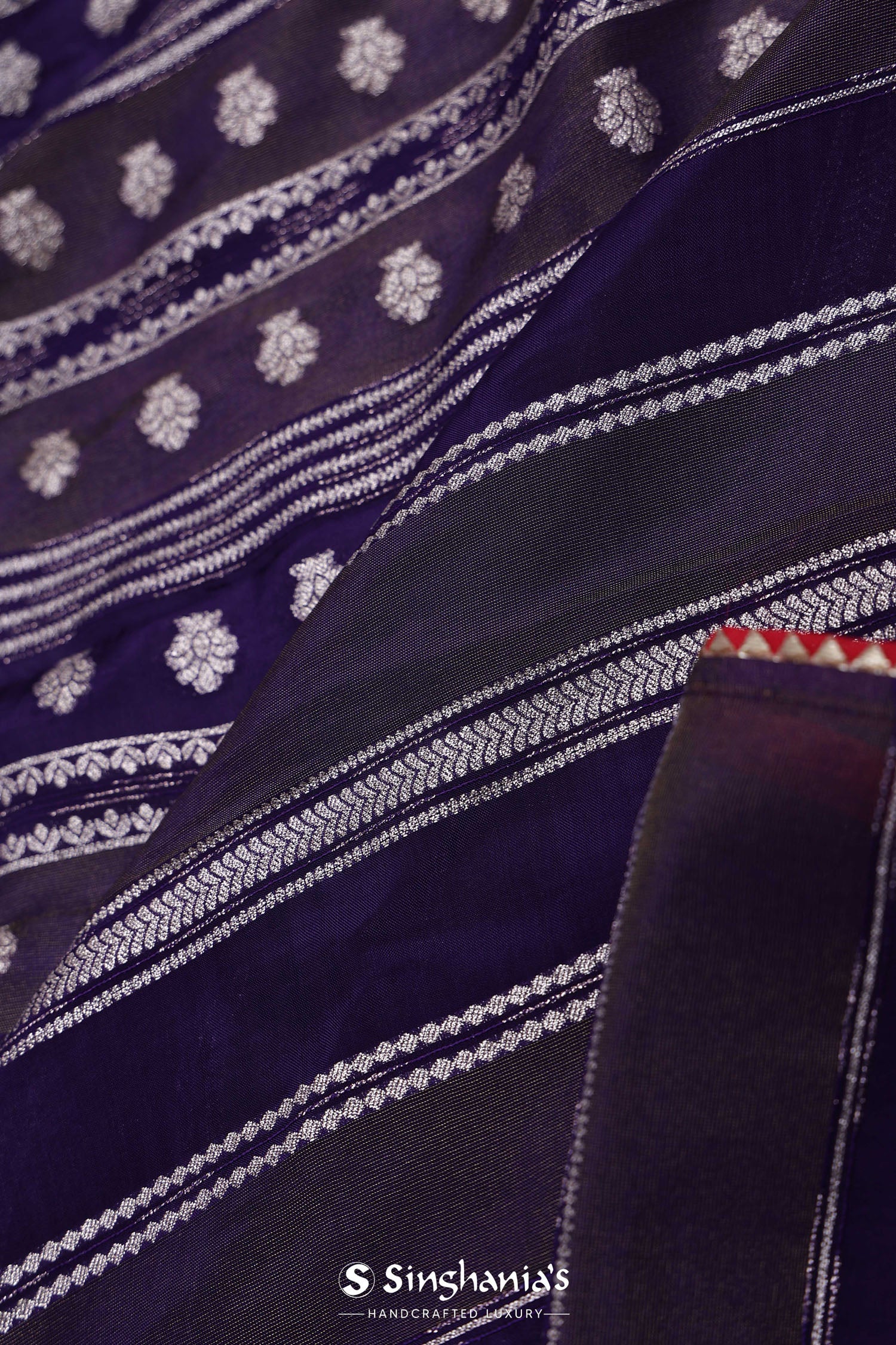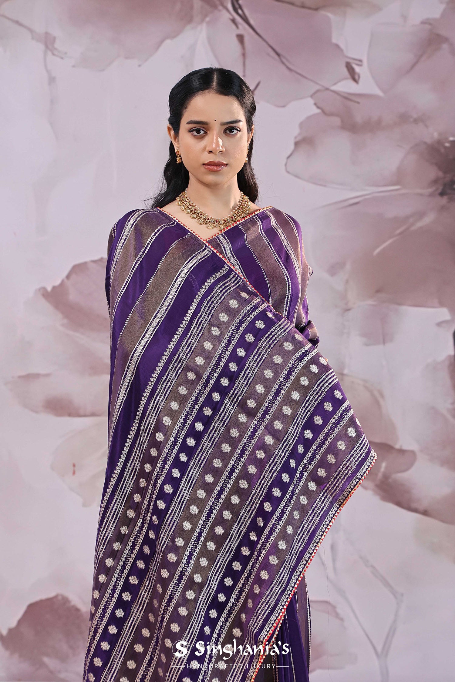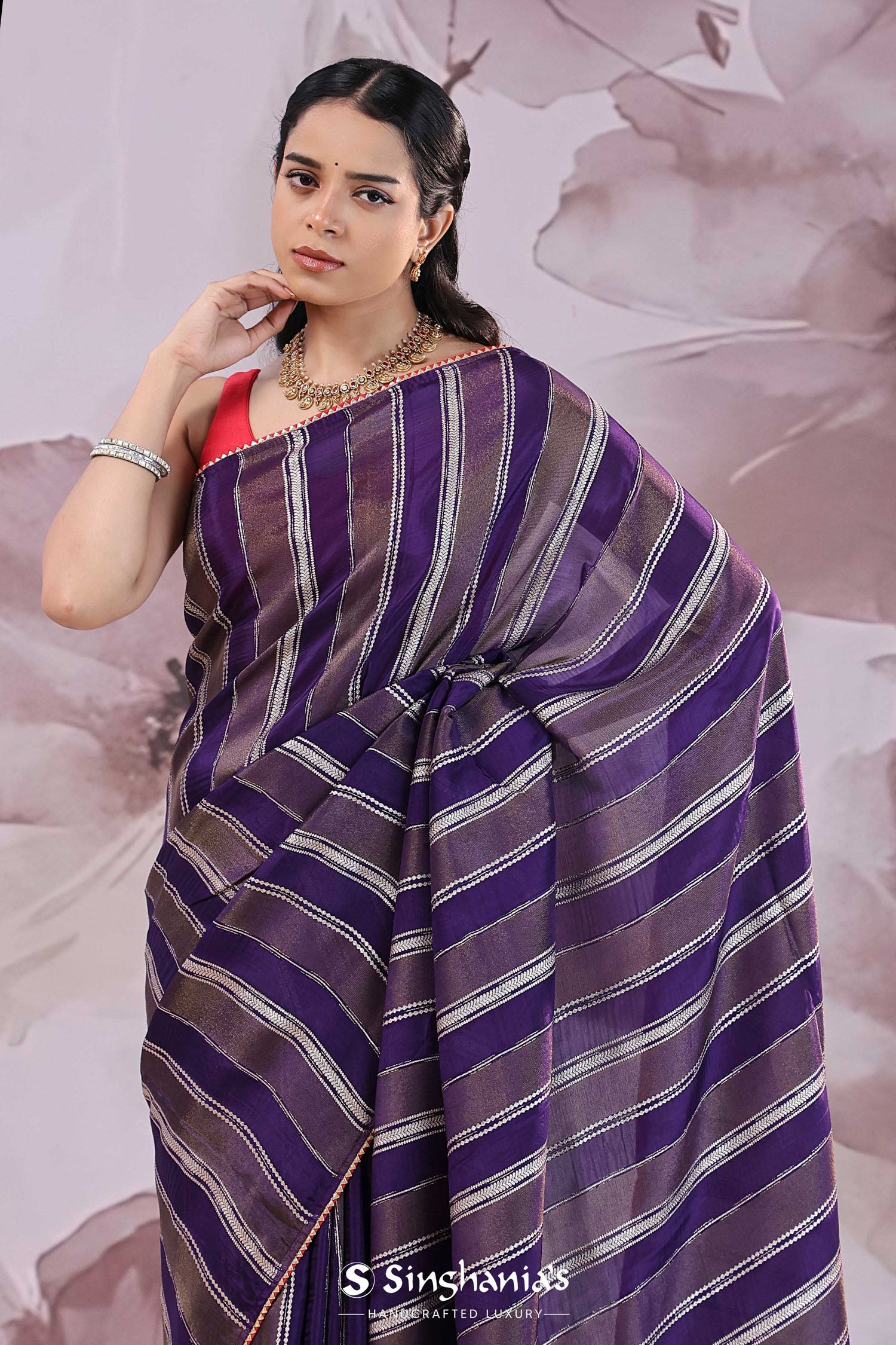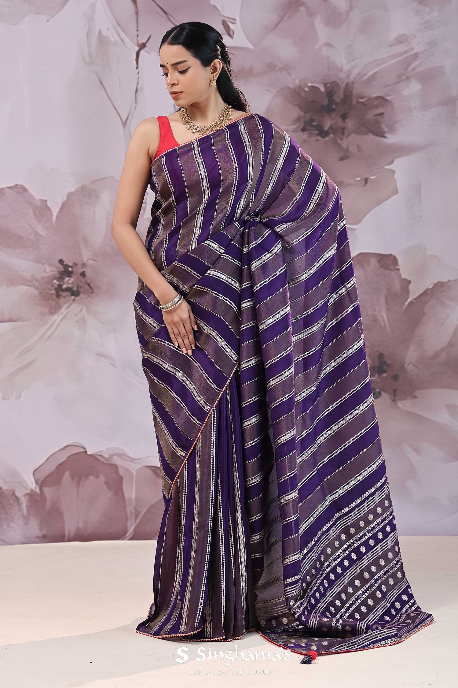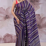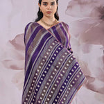 Midnight blue rangkat banarasi saree features two colors alternatively aligned and separated by gold zari design reflects classy and elegant to drape for formal and informal occasions