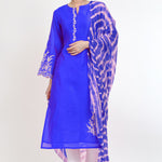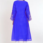 Neon Blue Raw Silk Floral Embroidered Kurti Set