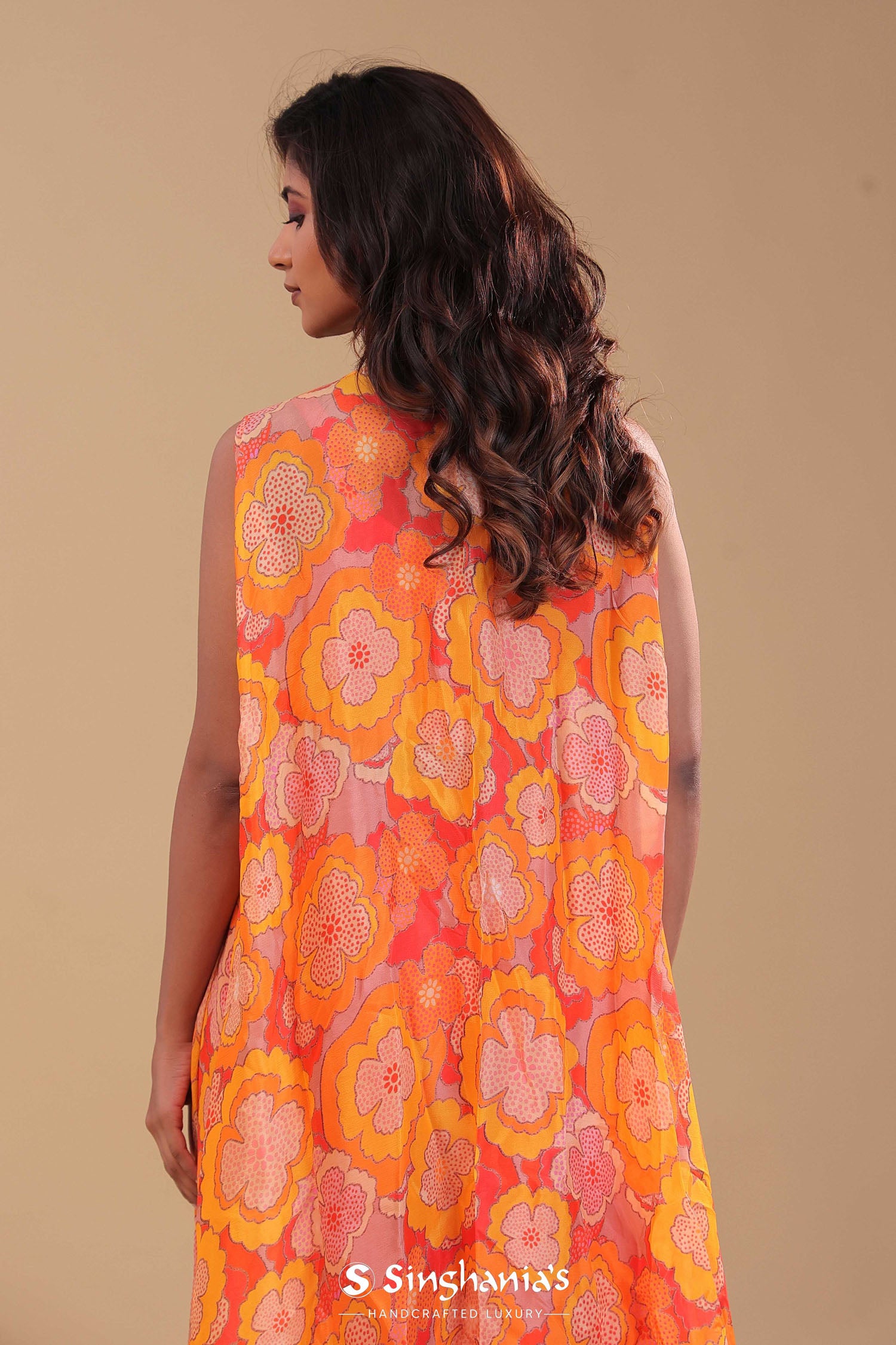 Orange Chinon Crepe Indo-Western Set