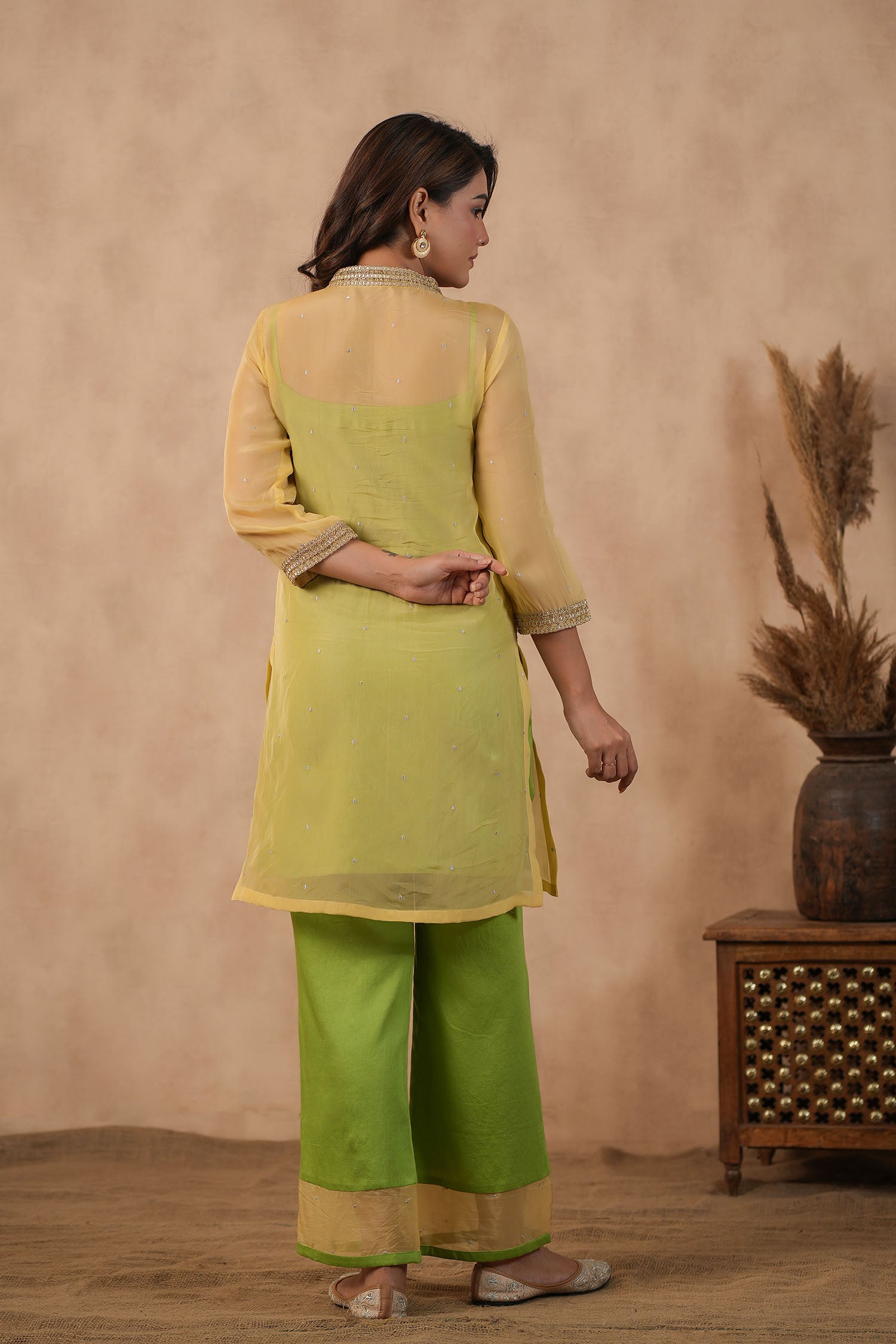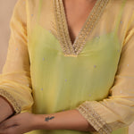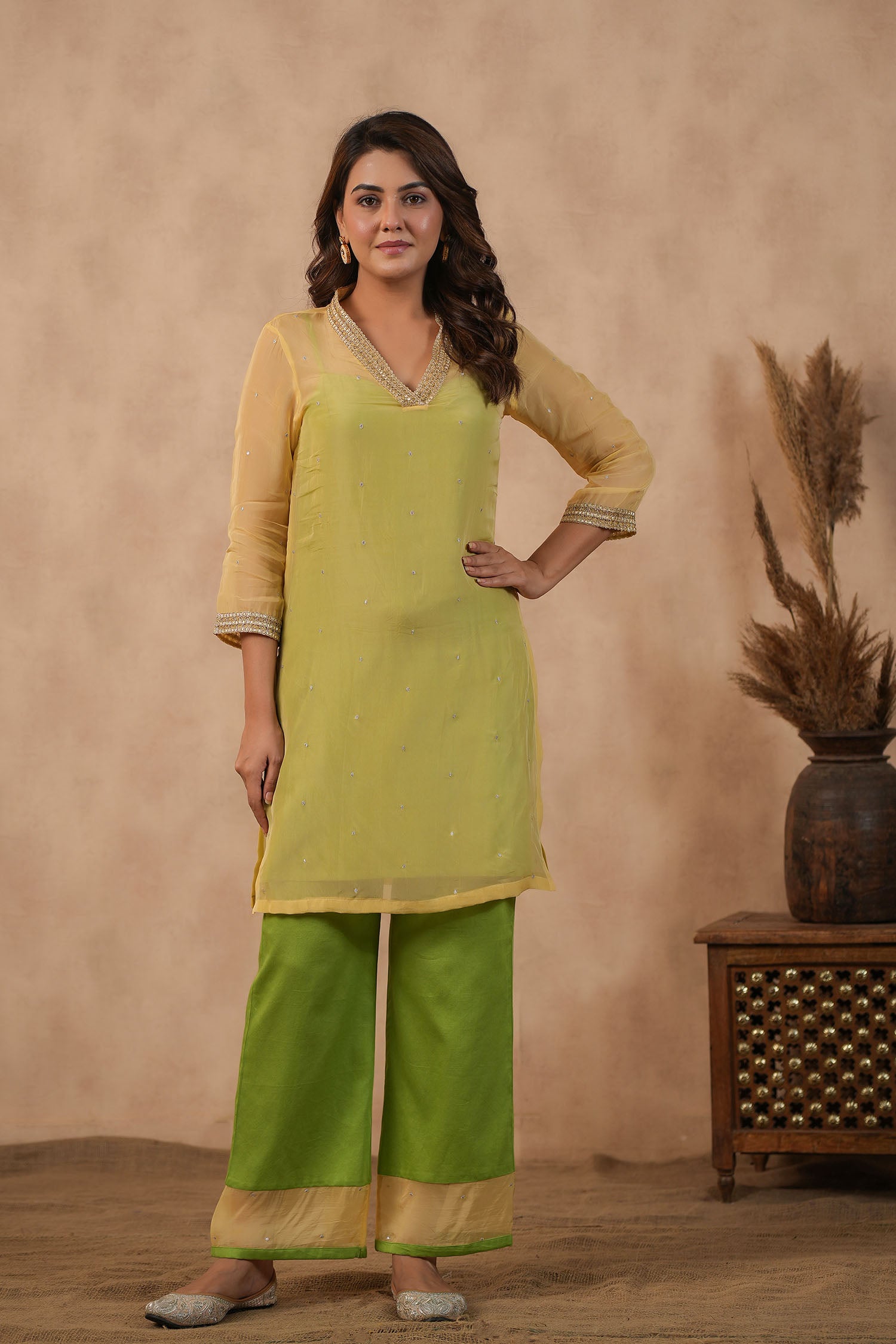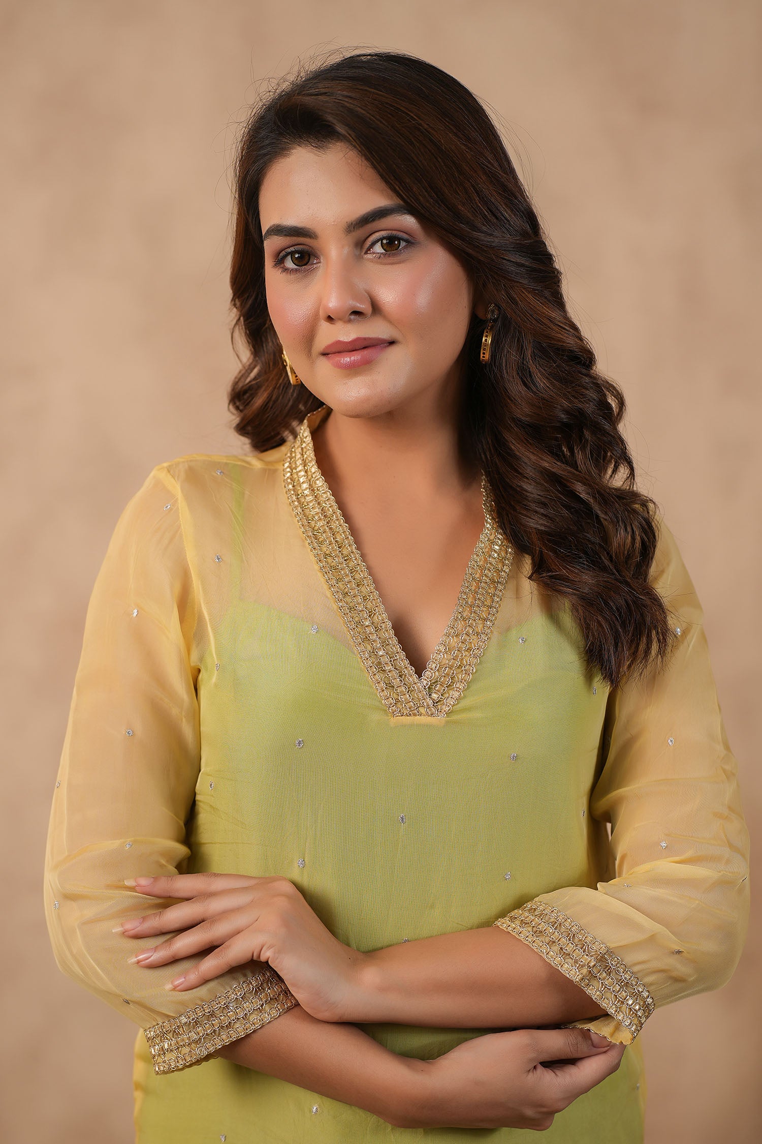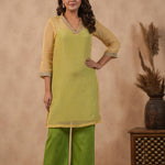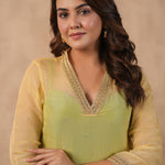 Pastel Green Organza Subtle Embroidered Kurti Set
