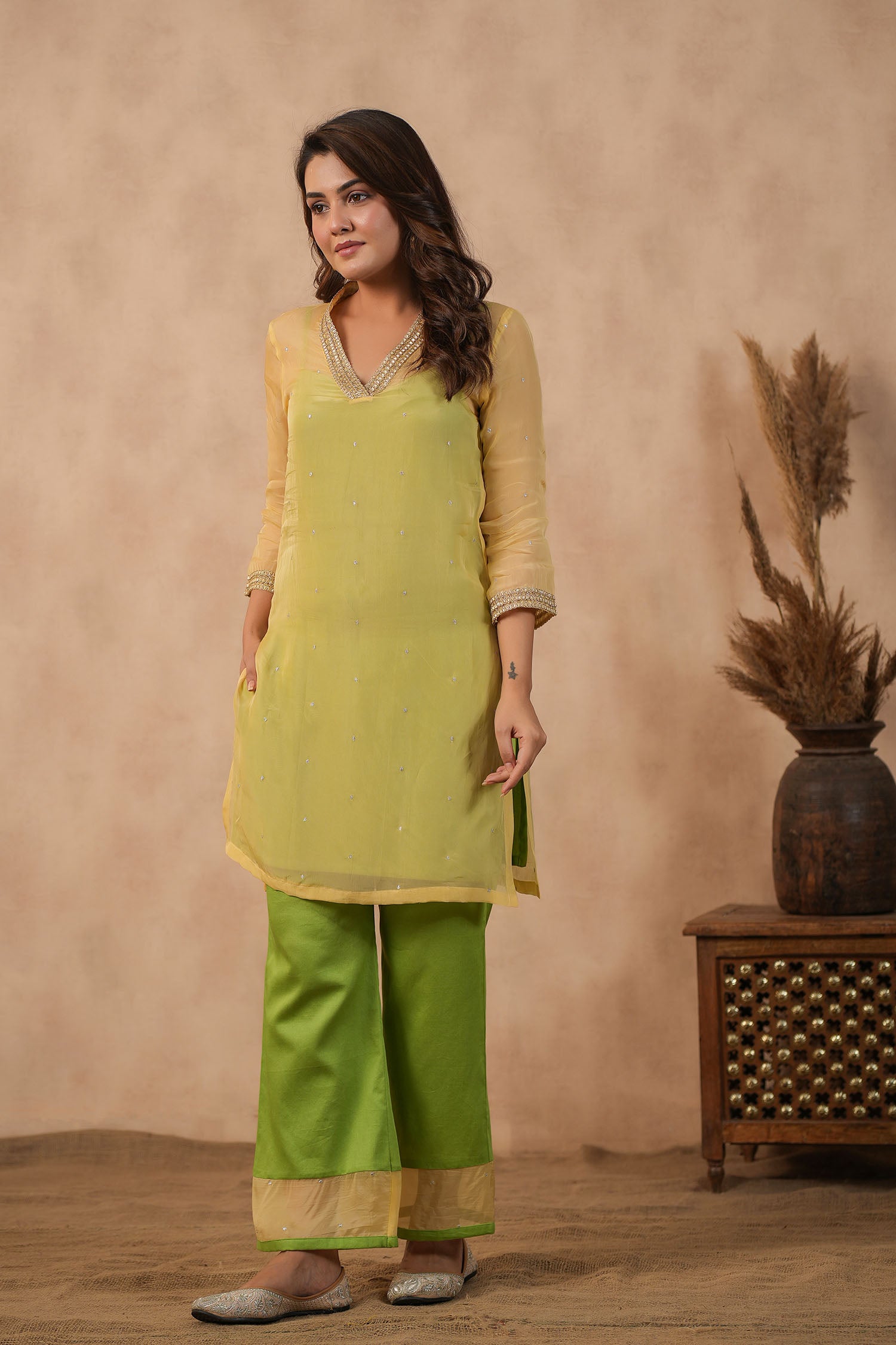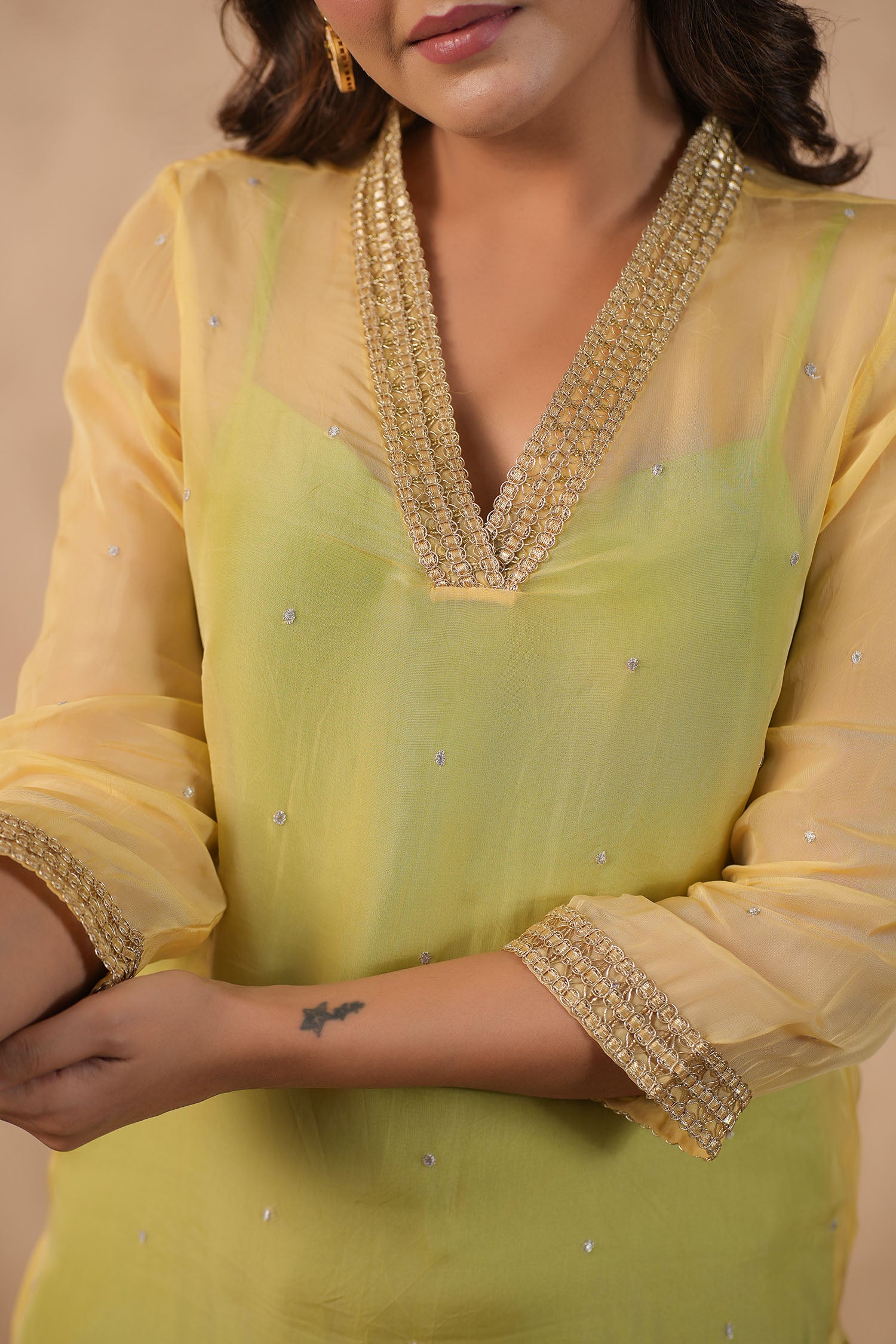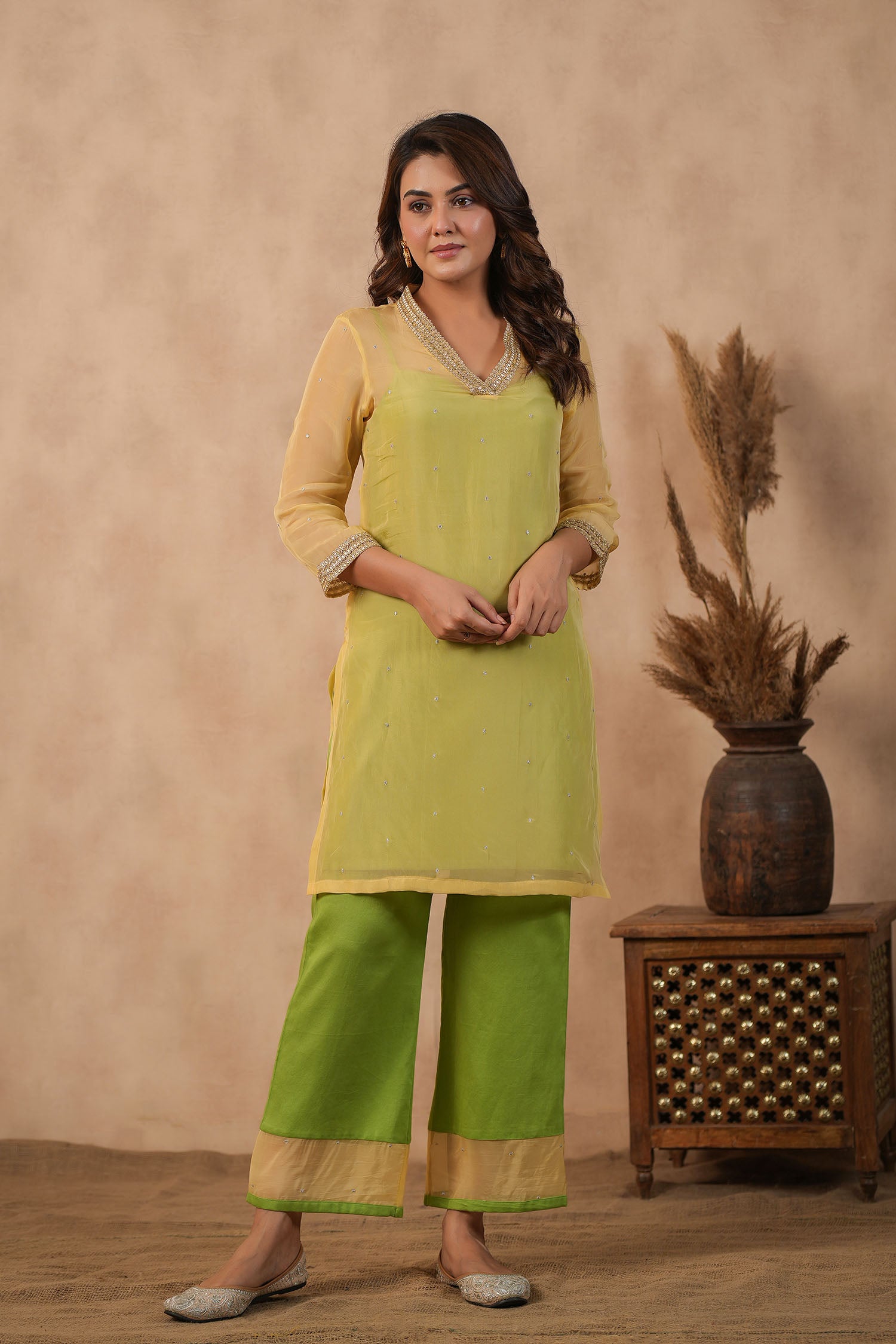 Pastel Green Organza Subtle Embroidered Kurti Set