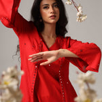 Red Rayon Kurti With Pants