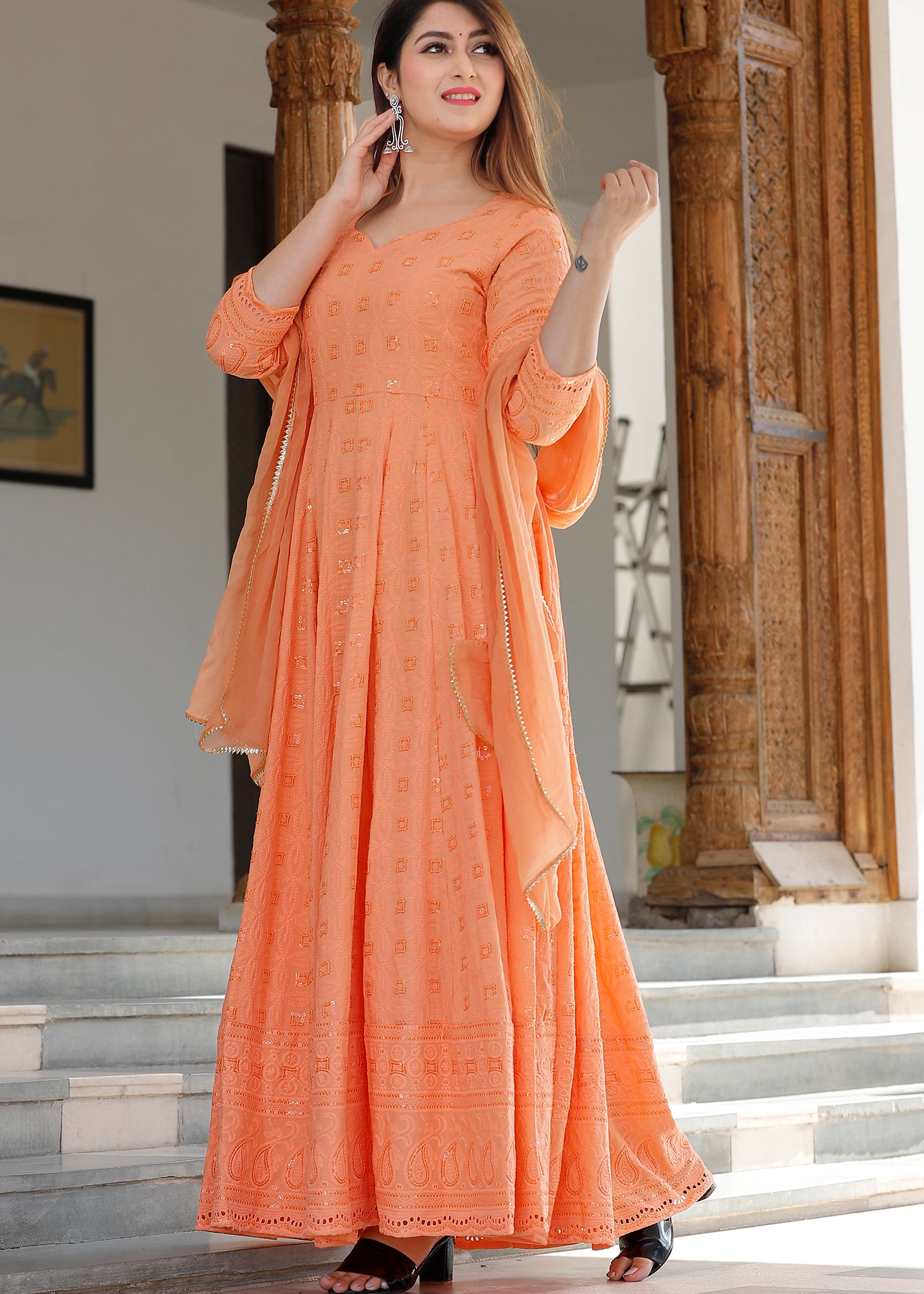 Dark Pink Rayon Long Traditional Kurti With Dupatta