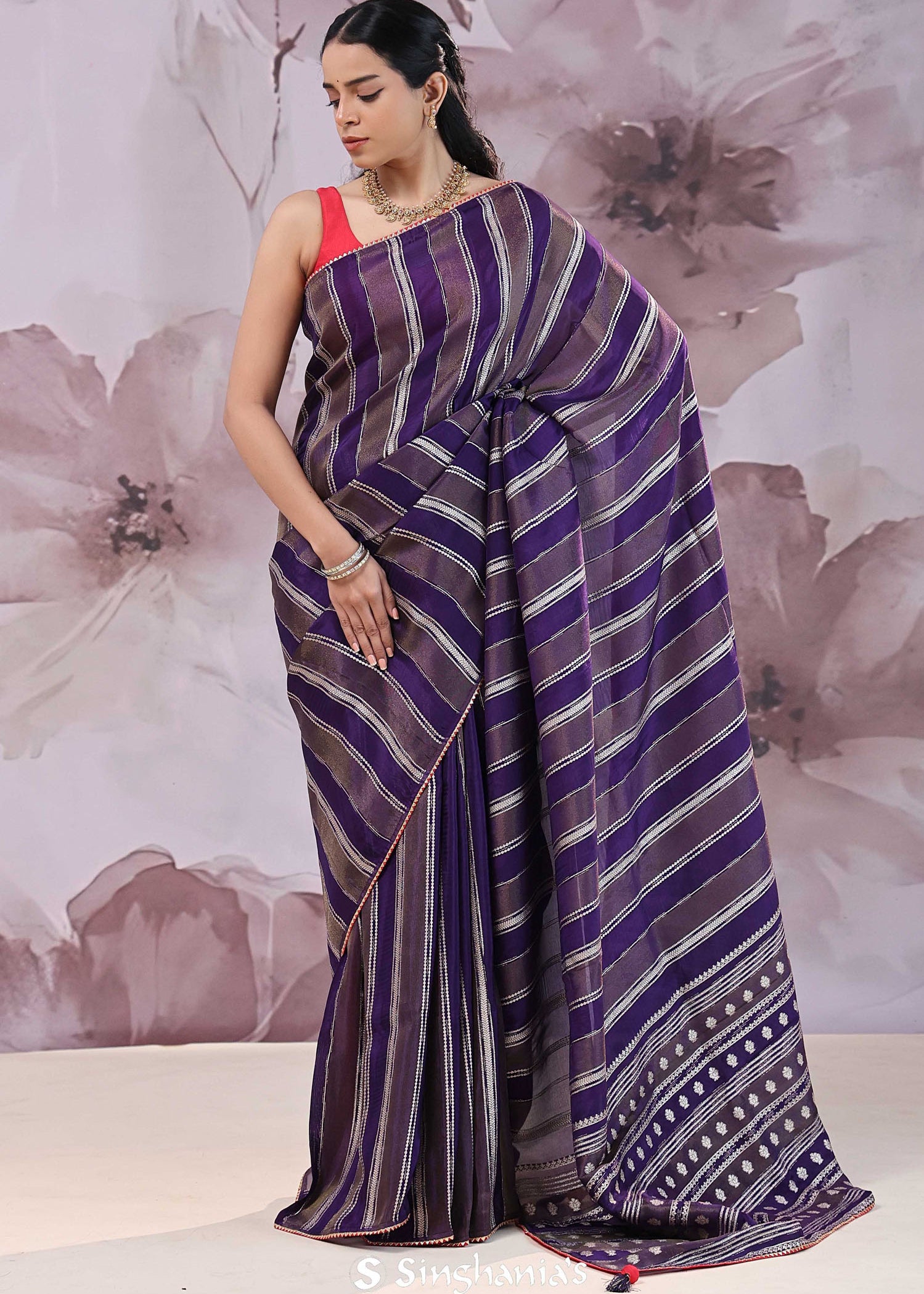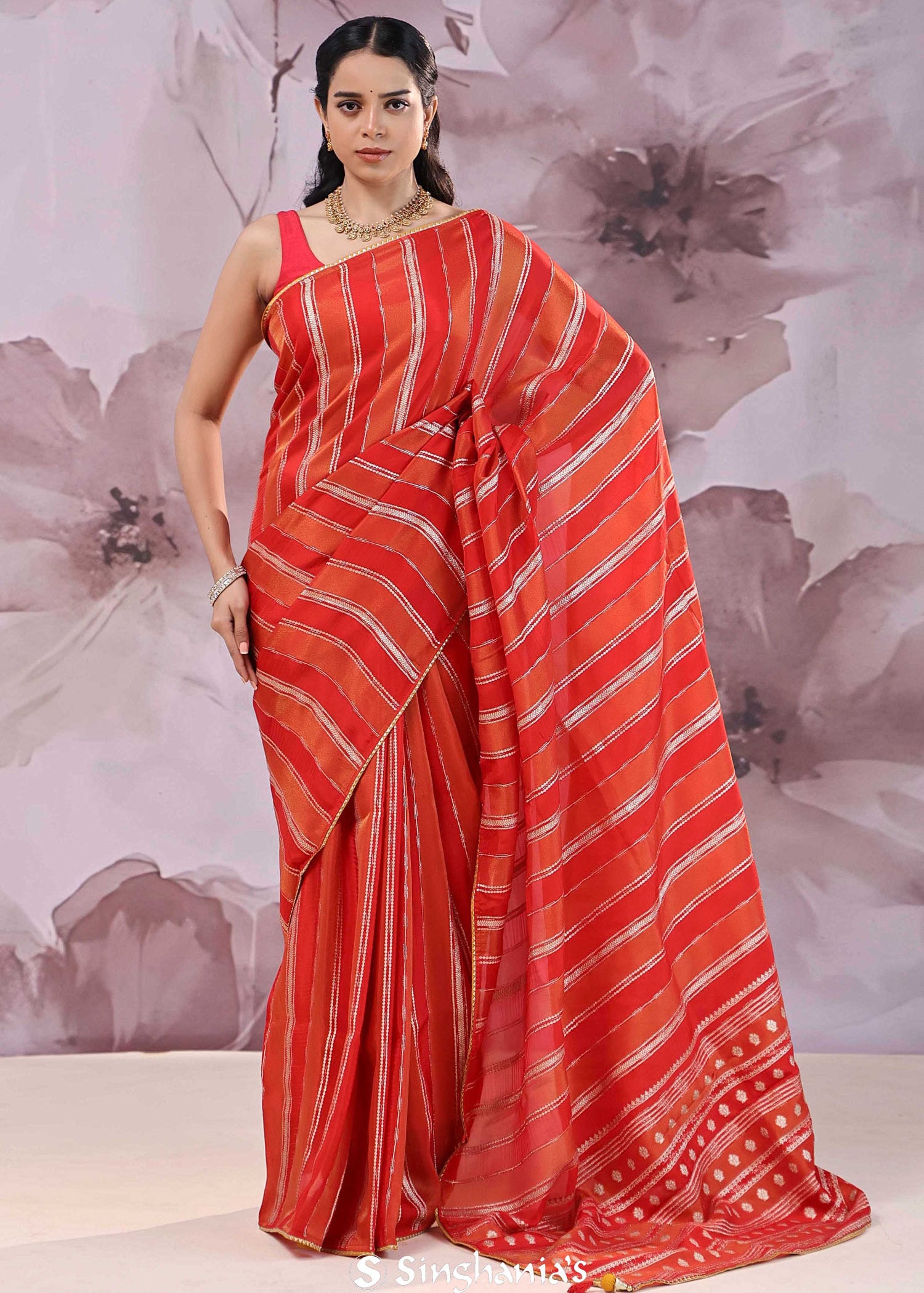 Soft Light Lime Green Organza Tissue Saree With Stripes