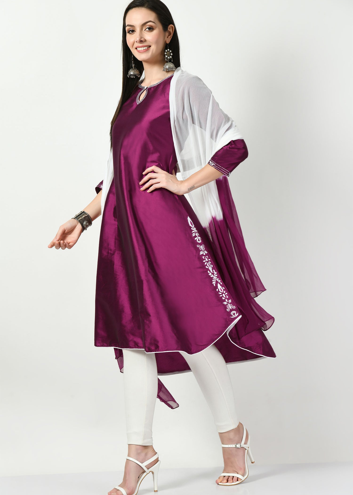 Deep Plum Purple Velvet Embroidered Kurti Set