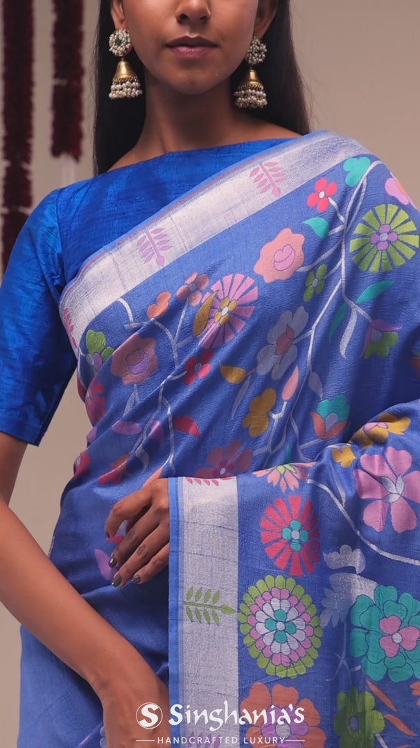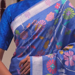 Berry Blue Banarasi Tussar Saree With Floral Design