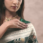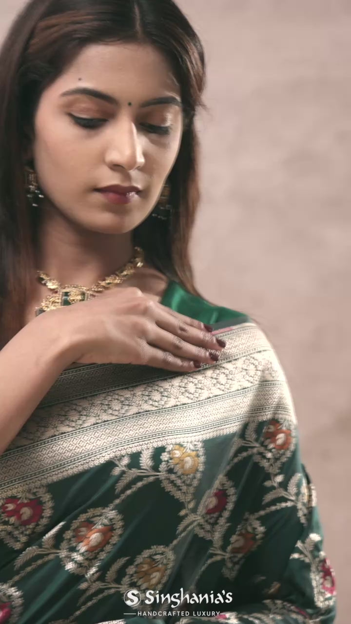 Bottle Green Banarasi Silk Saree With Meenakari Design