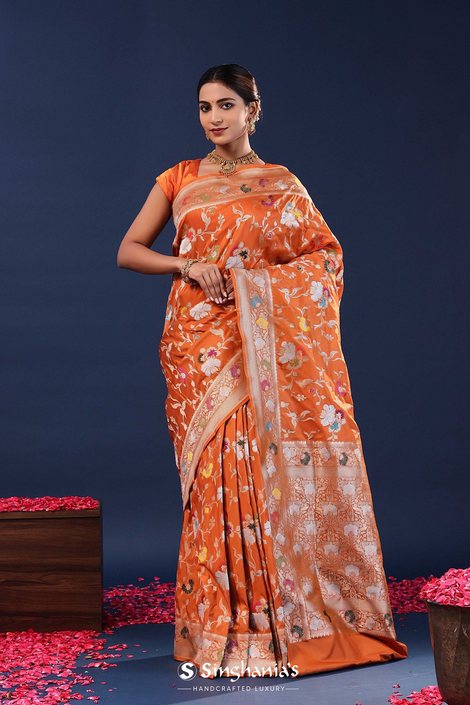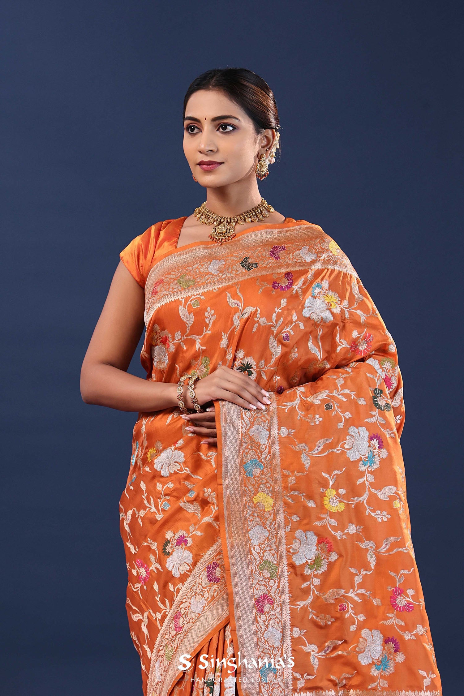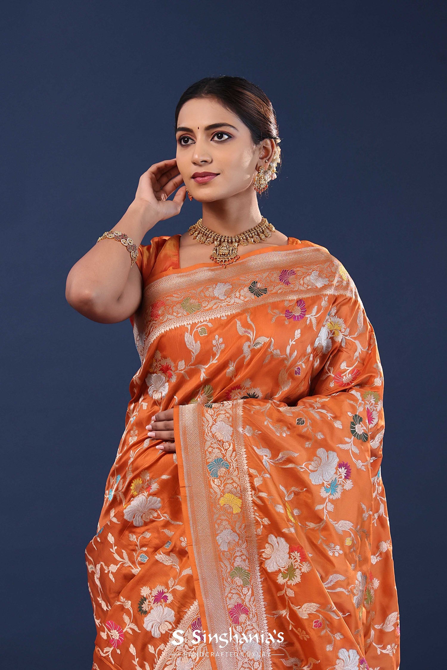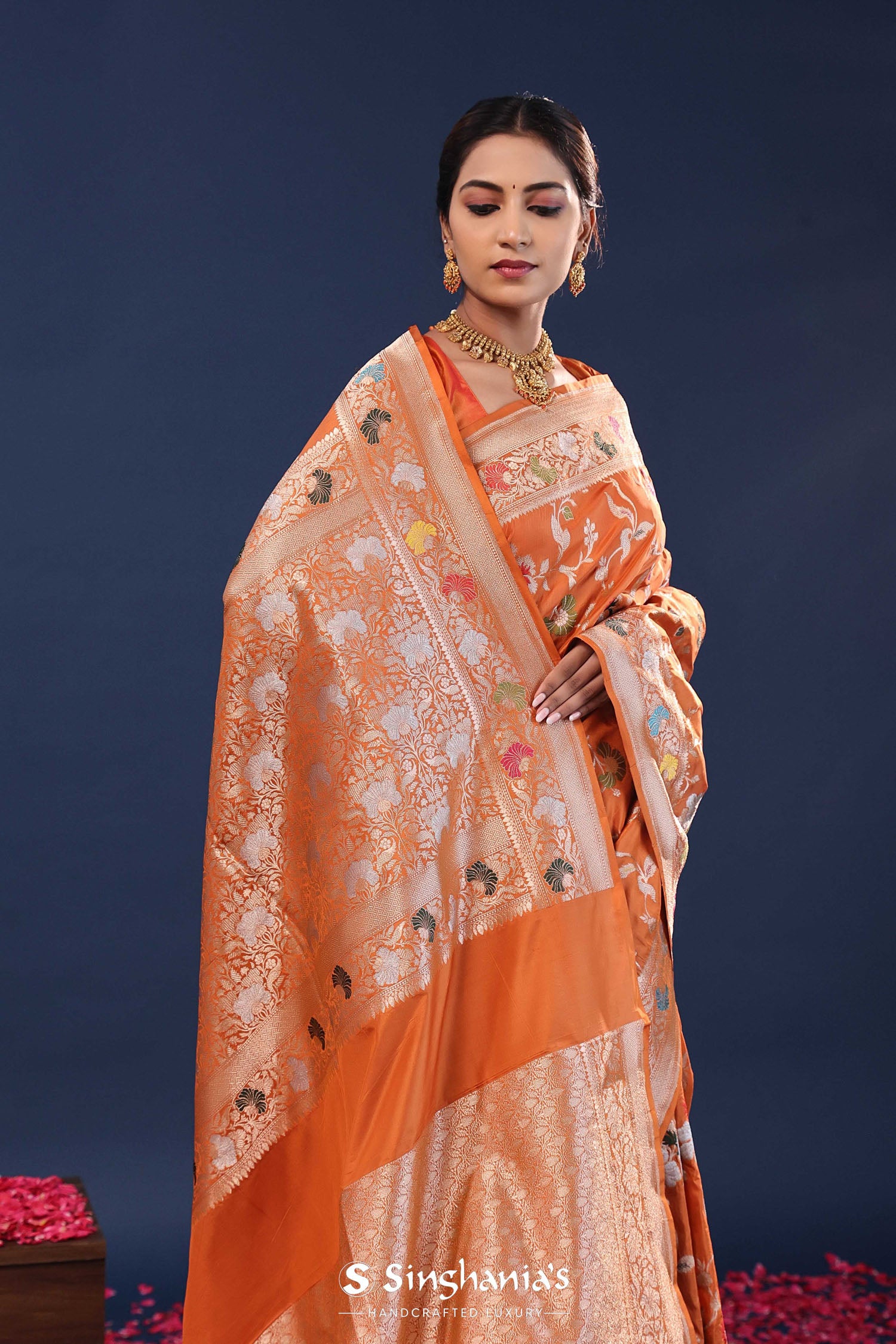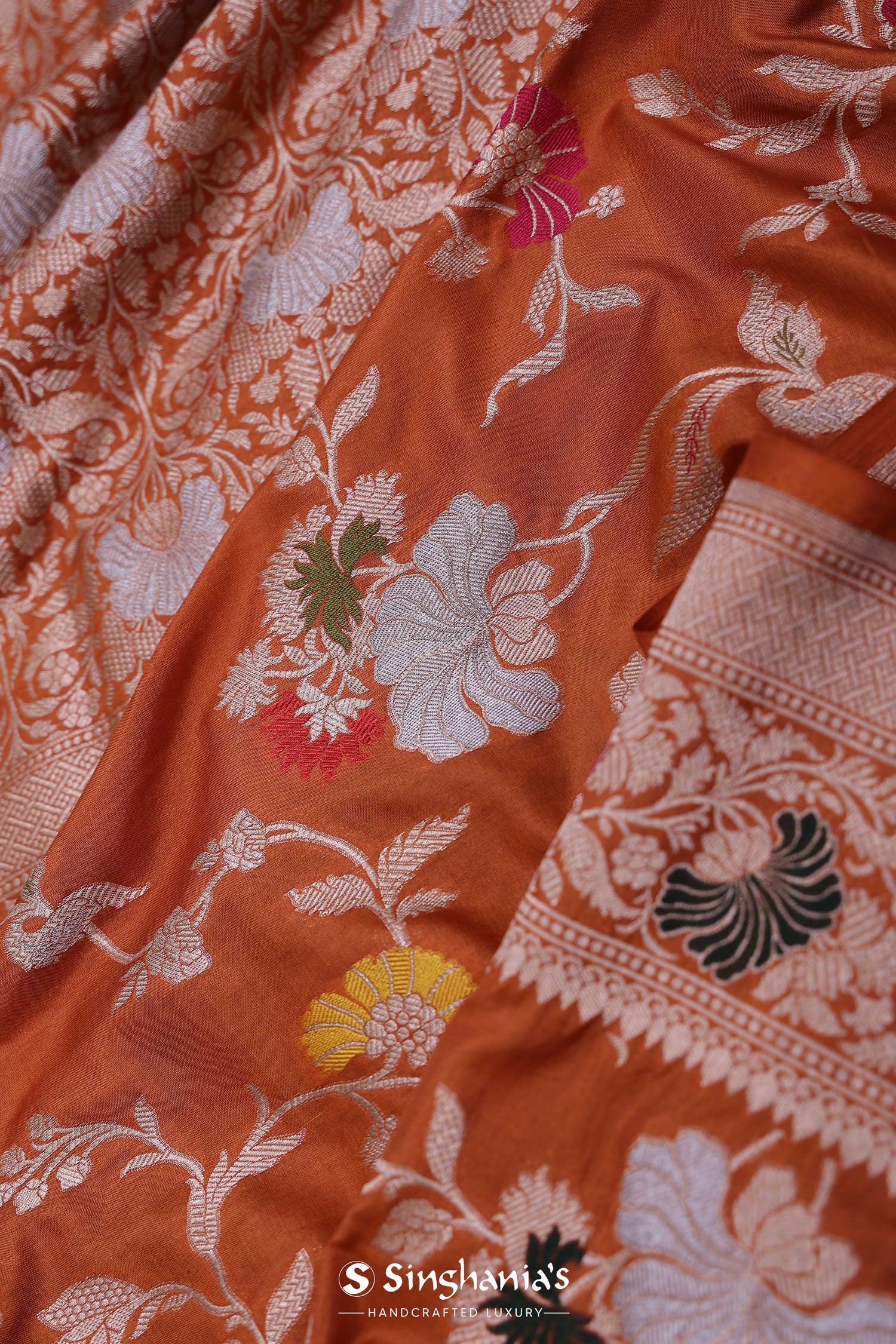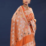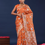Burnt Orange Banarasi Saree With Meenakari Jaal