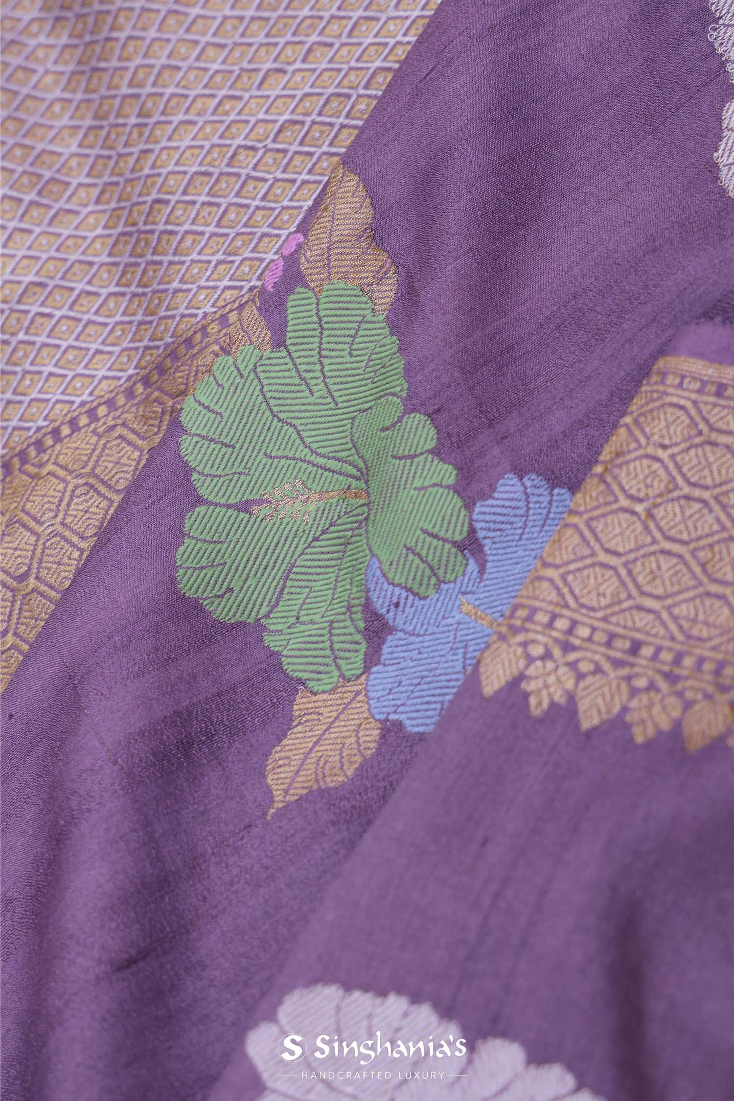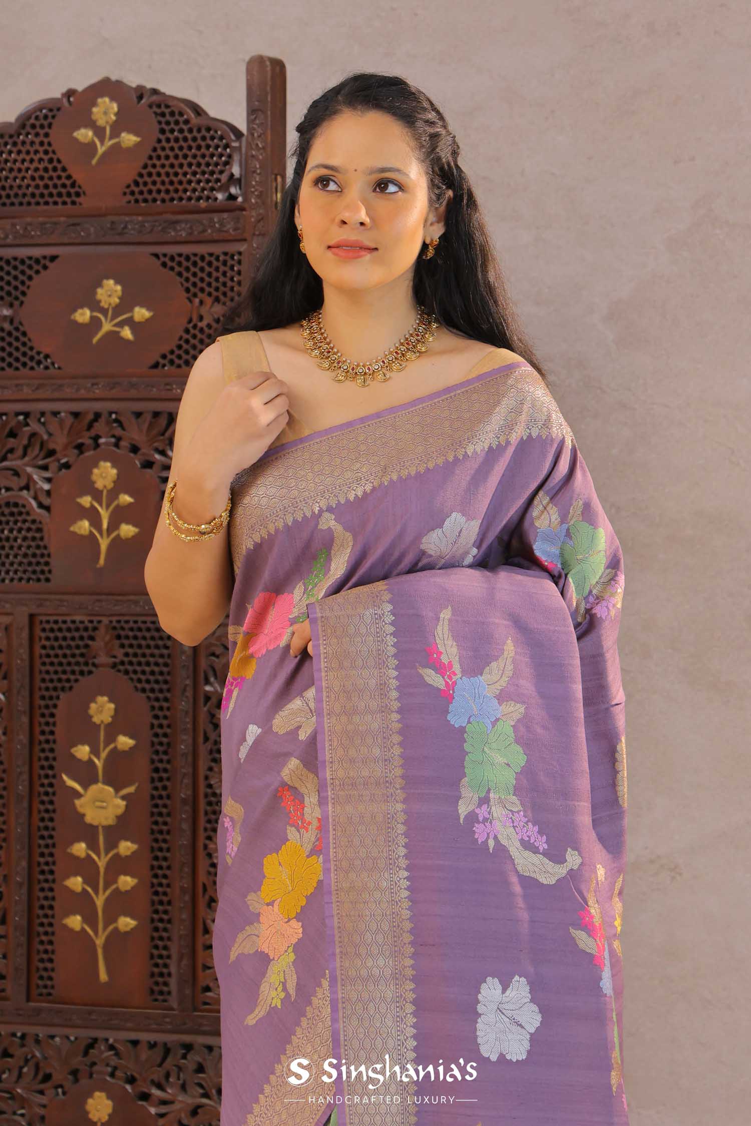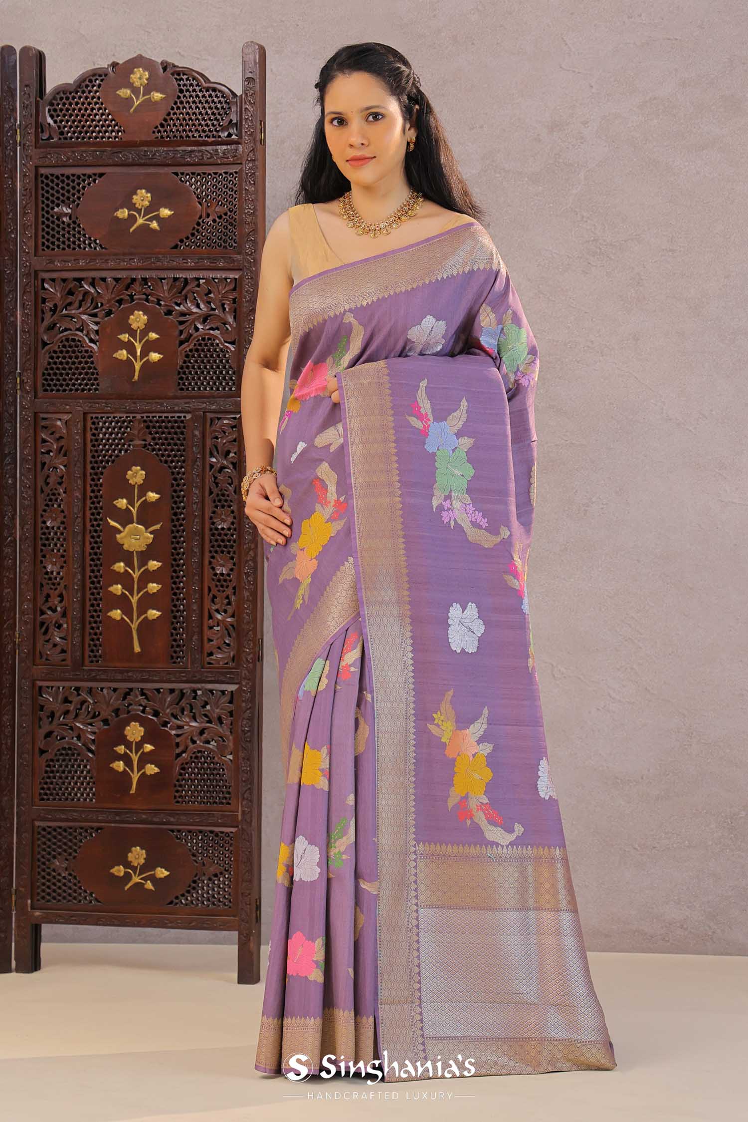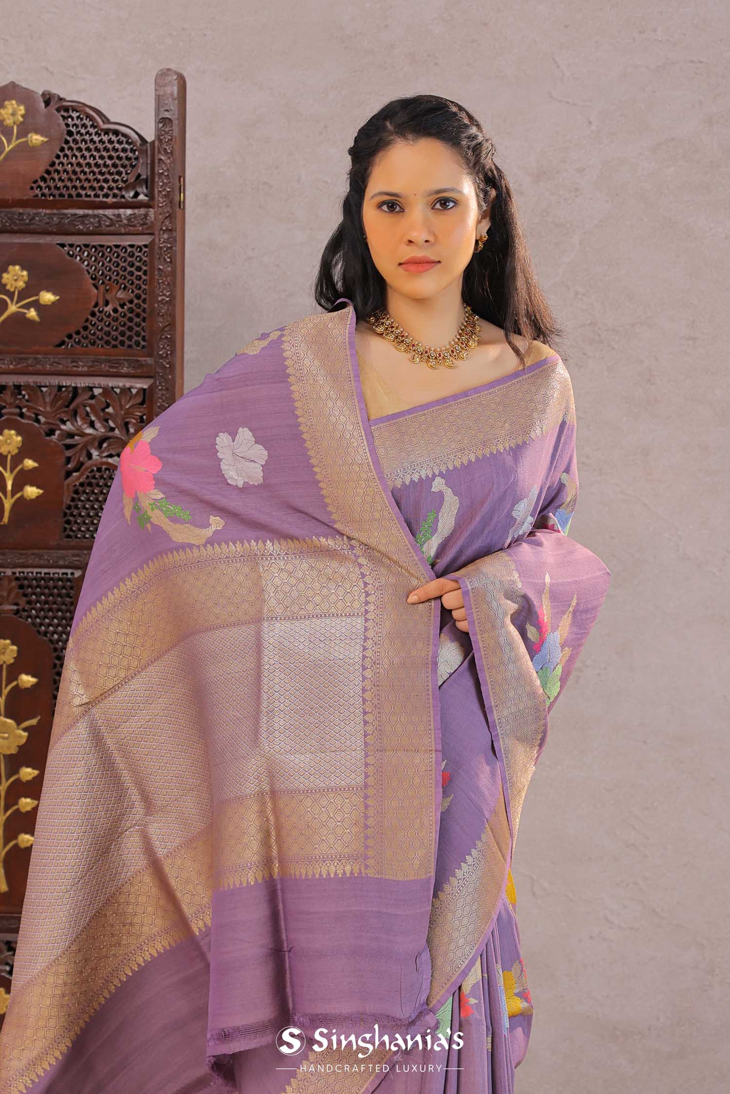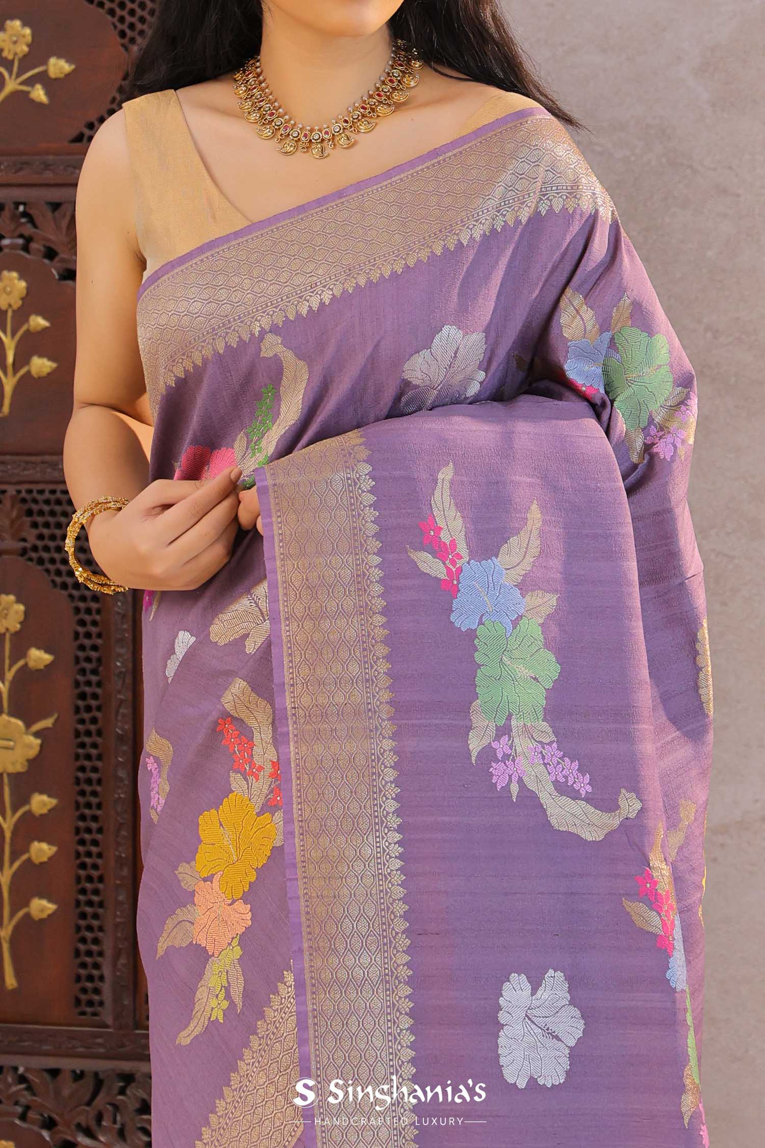 Lilac Purple Khadi Tussar Saree With Floral Design