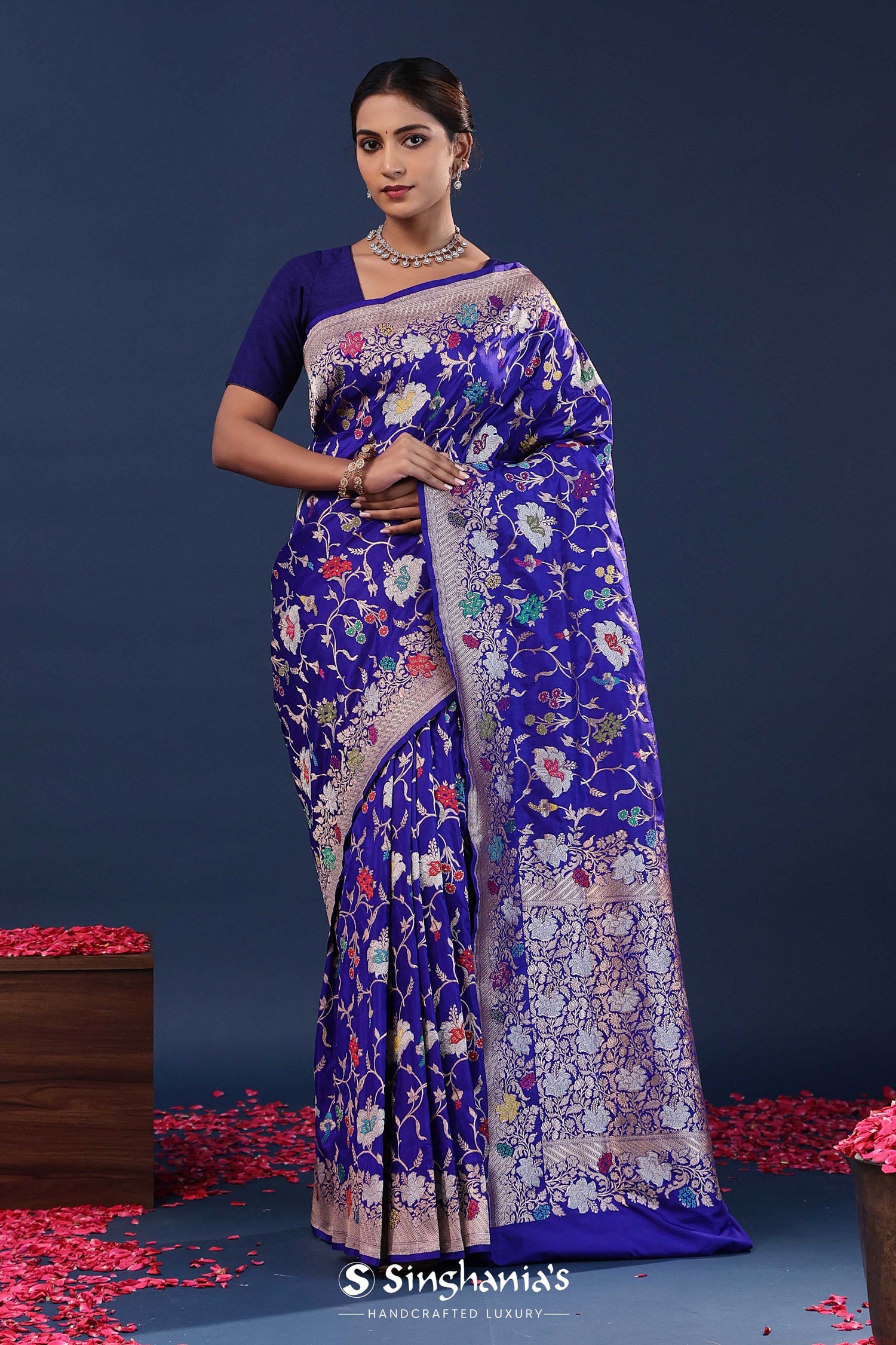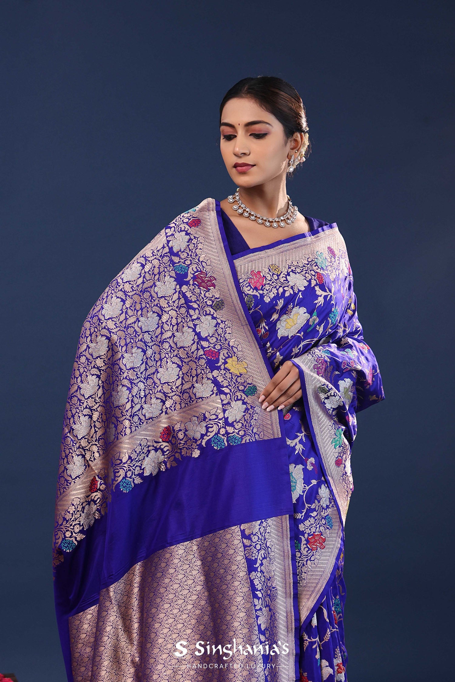 Persian Indigo Banarasi Saree With Meenakari Jaal