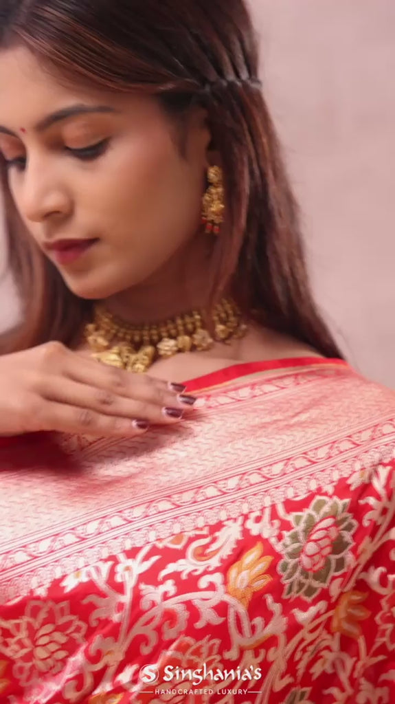 Vibrant Orange Banarasi Silk Saree With Meenakari Design
