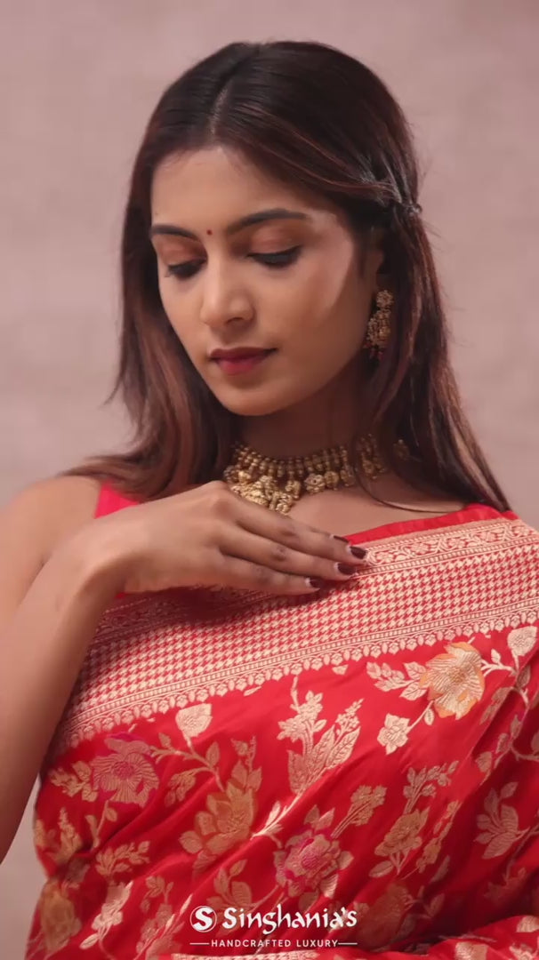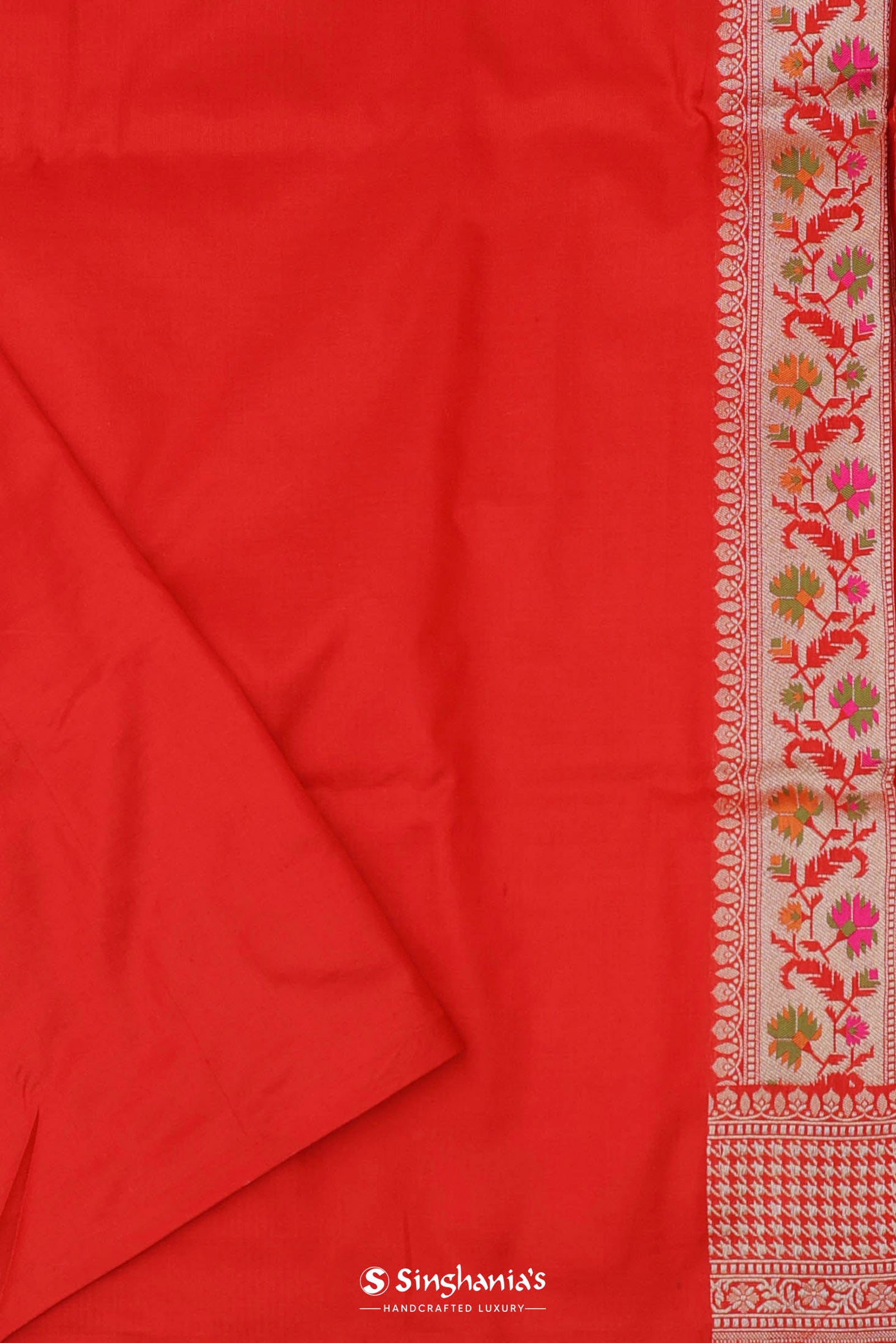 Vibrant Orange Banarasi Silk Saree With Meenakari Work