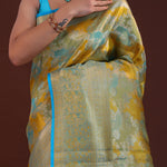 Yellow And Blue Kanjivaram Tissue Saree With Rangkat Design