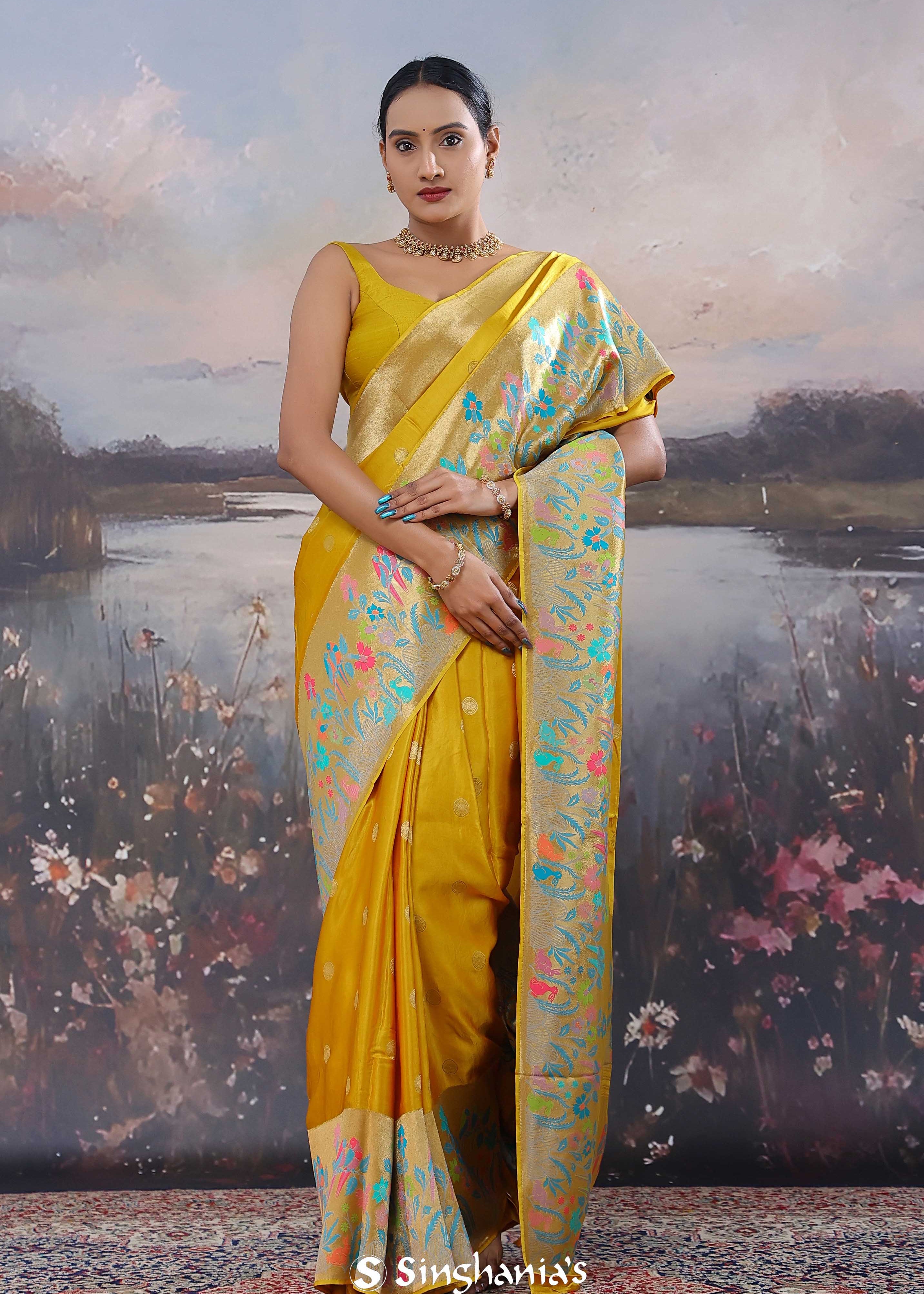 Saffron Yellow Banarasi with Floral Meenakari Magic