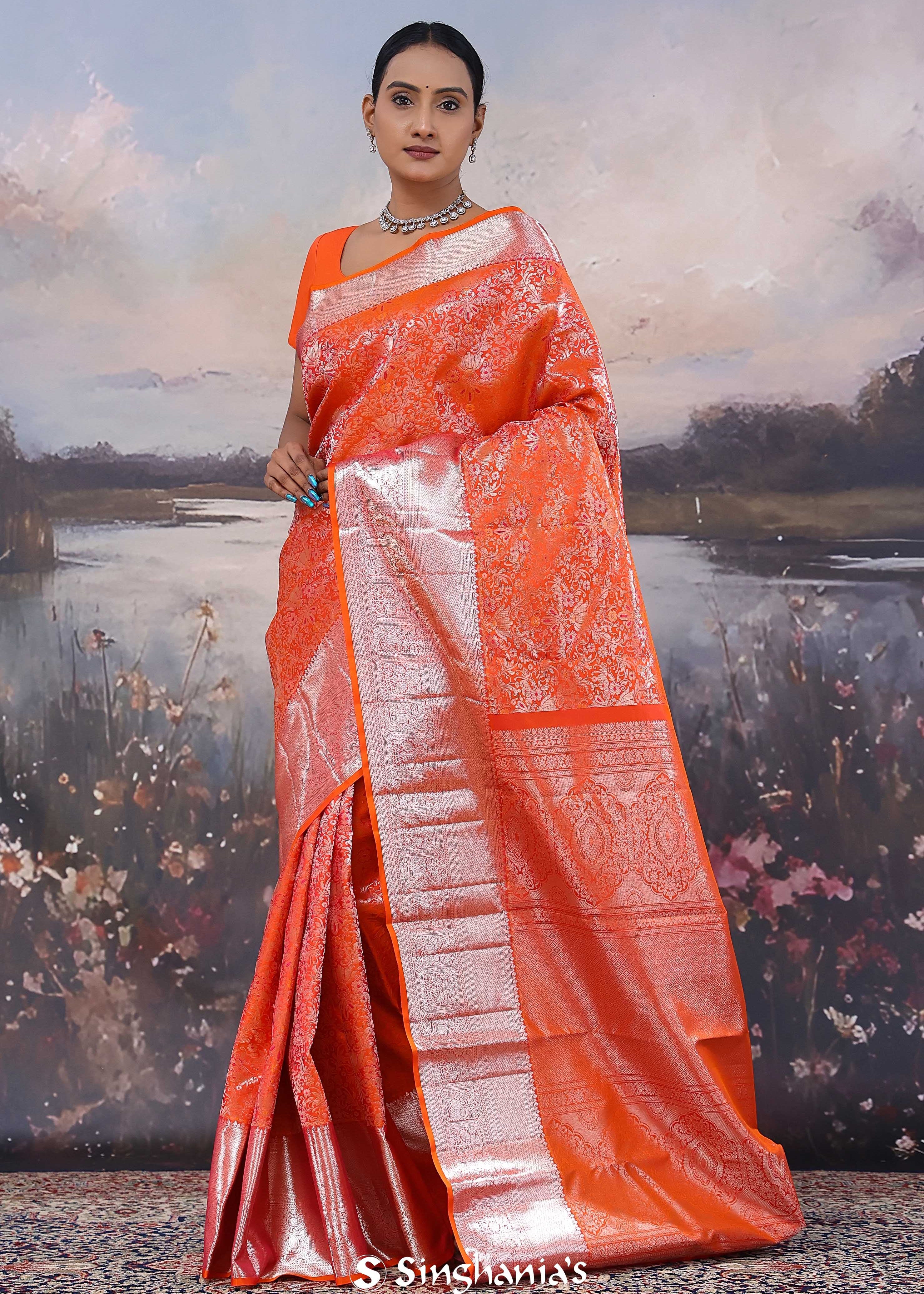 Yellow Orange Banarasi Silk Saree With Meenakari Floral Jaal