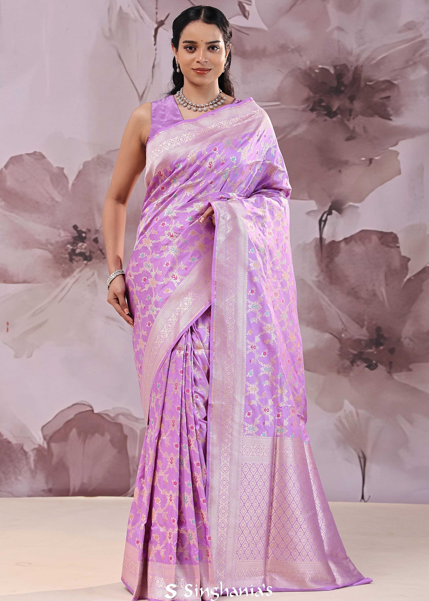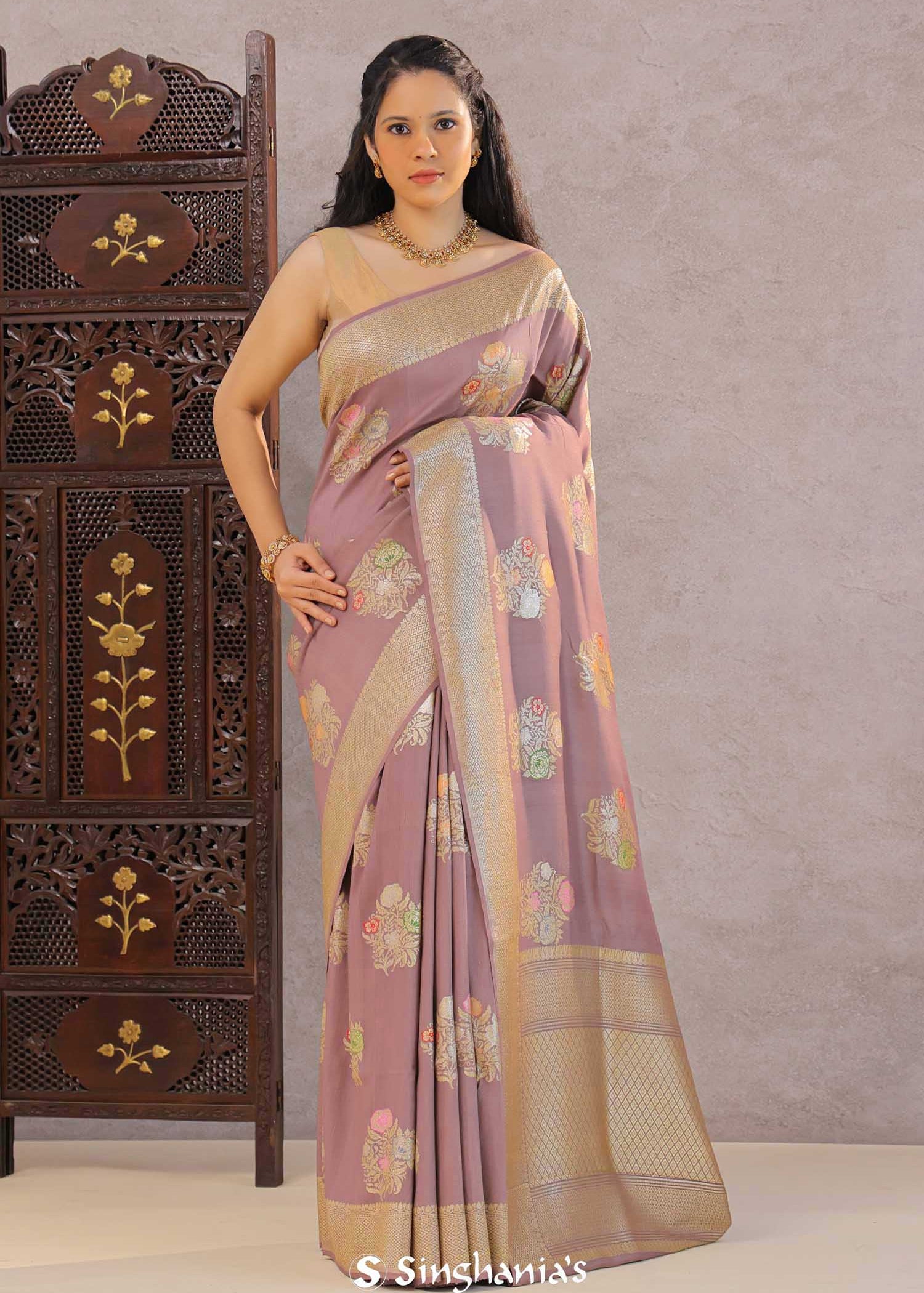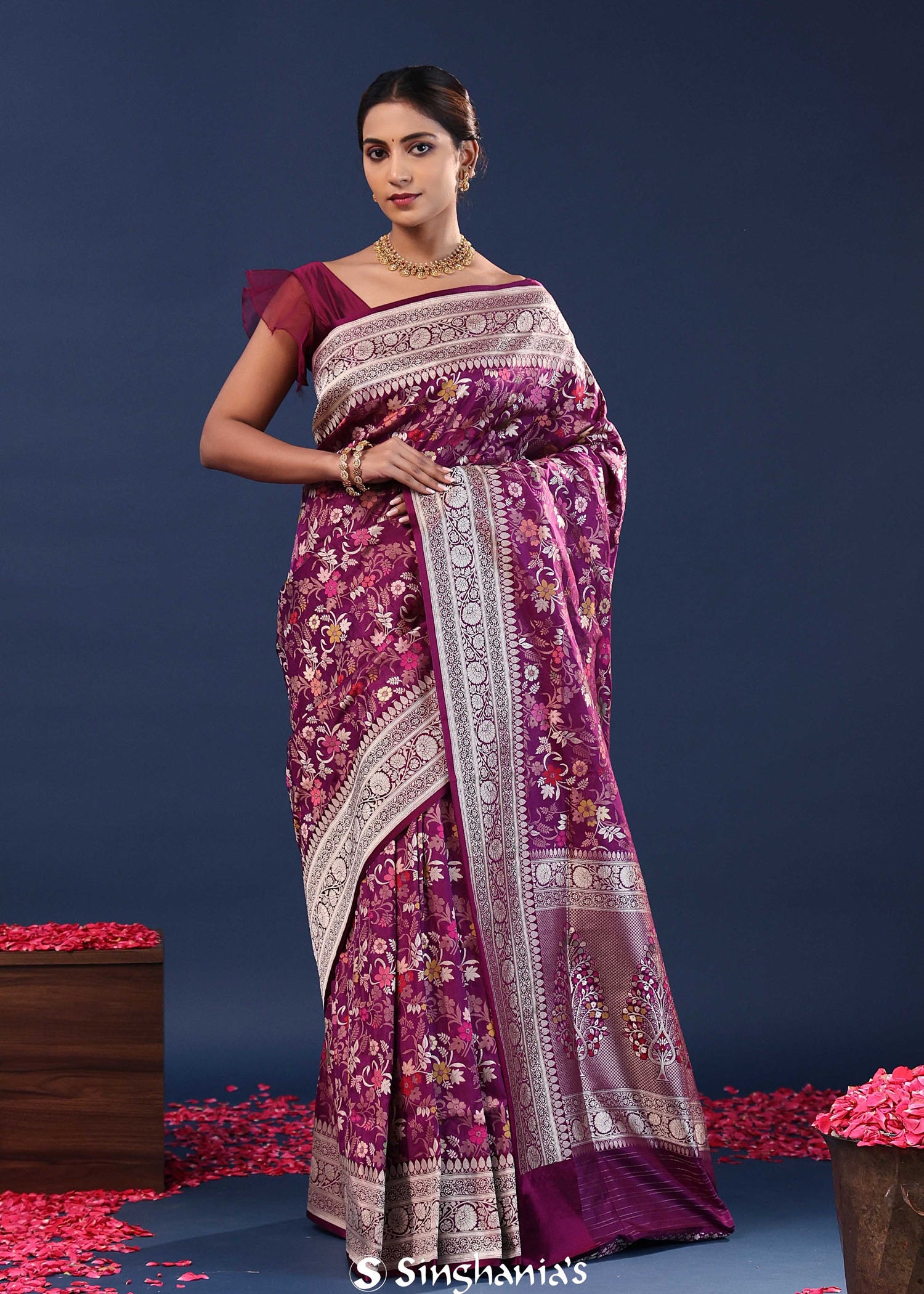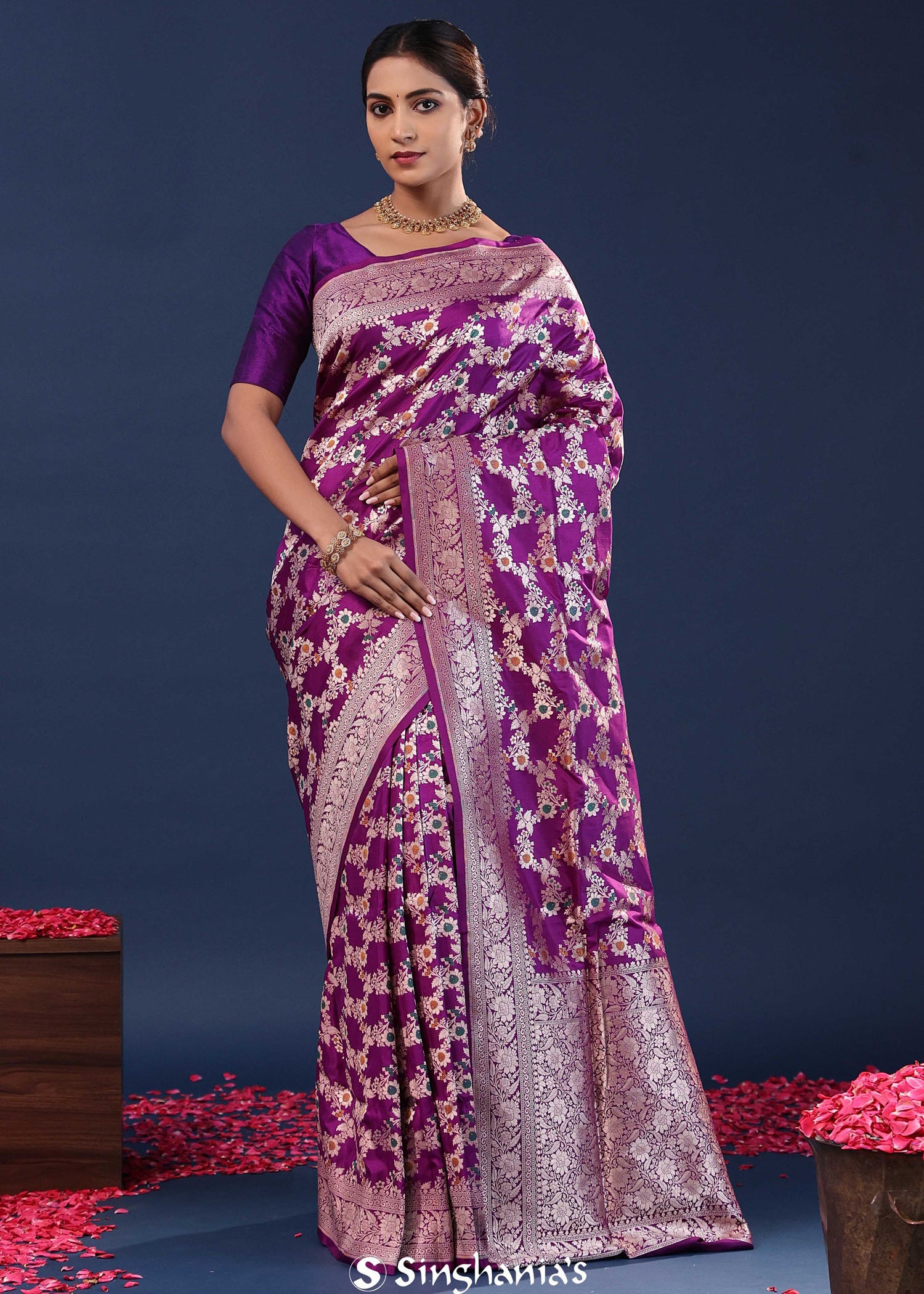 Autumn Purple Banarasi Silk Saree With Meenakari Floral