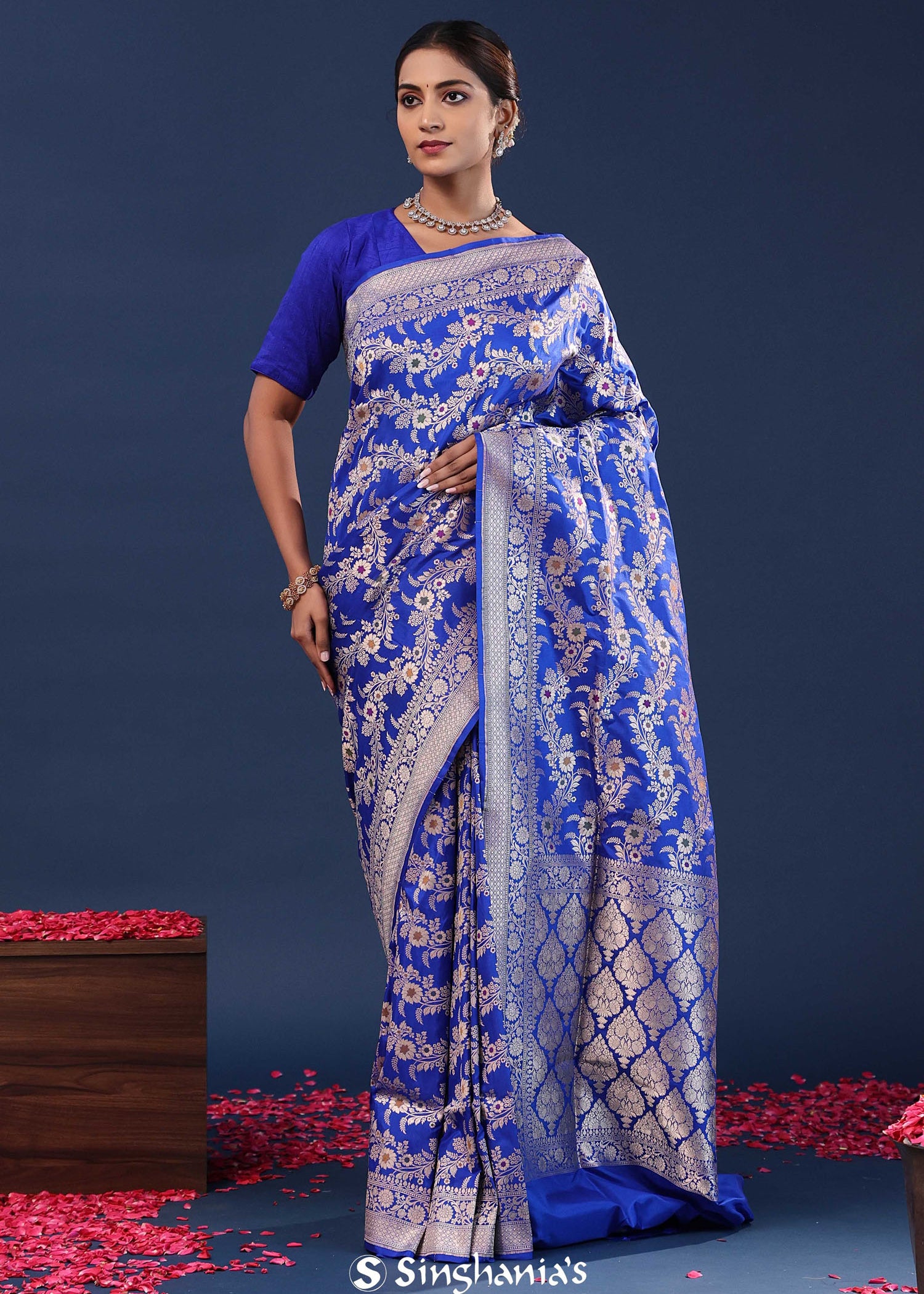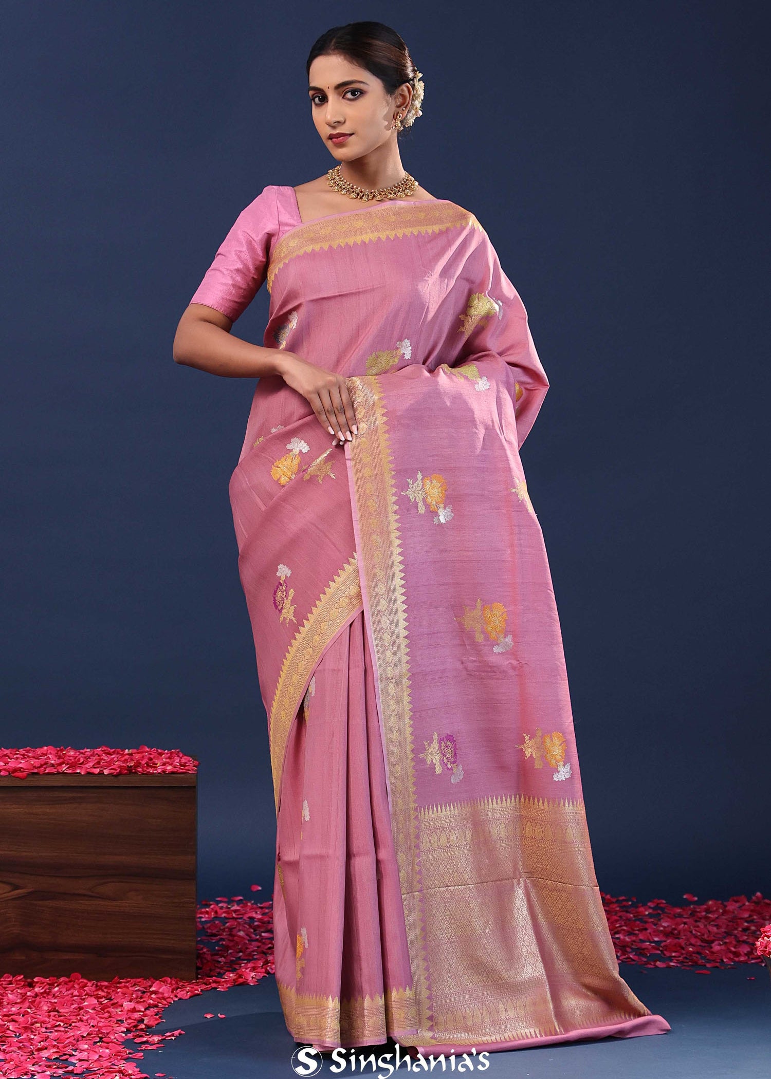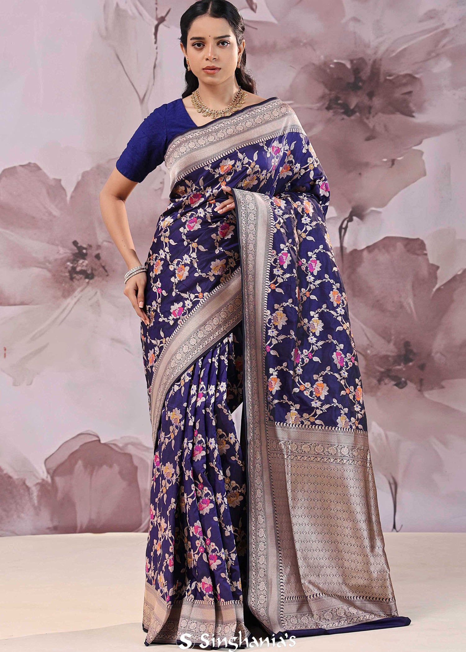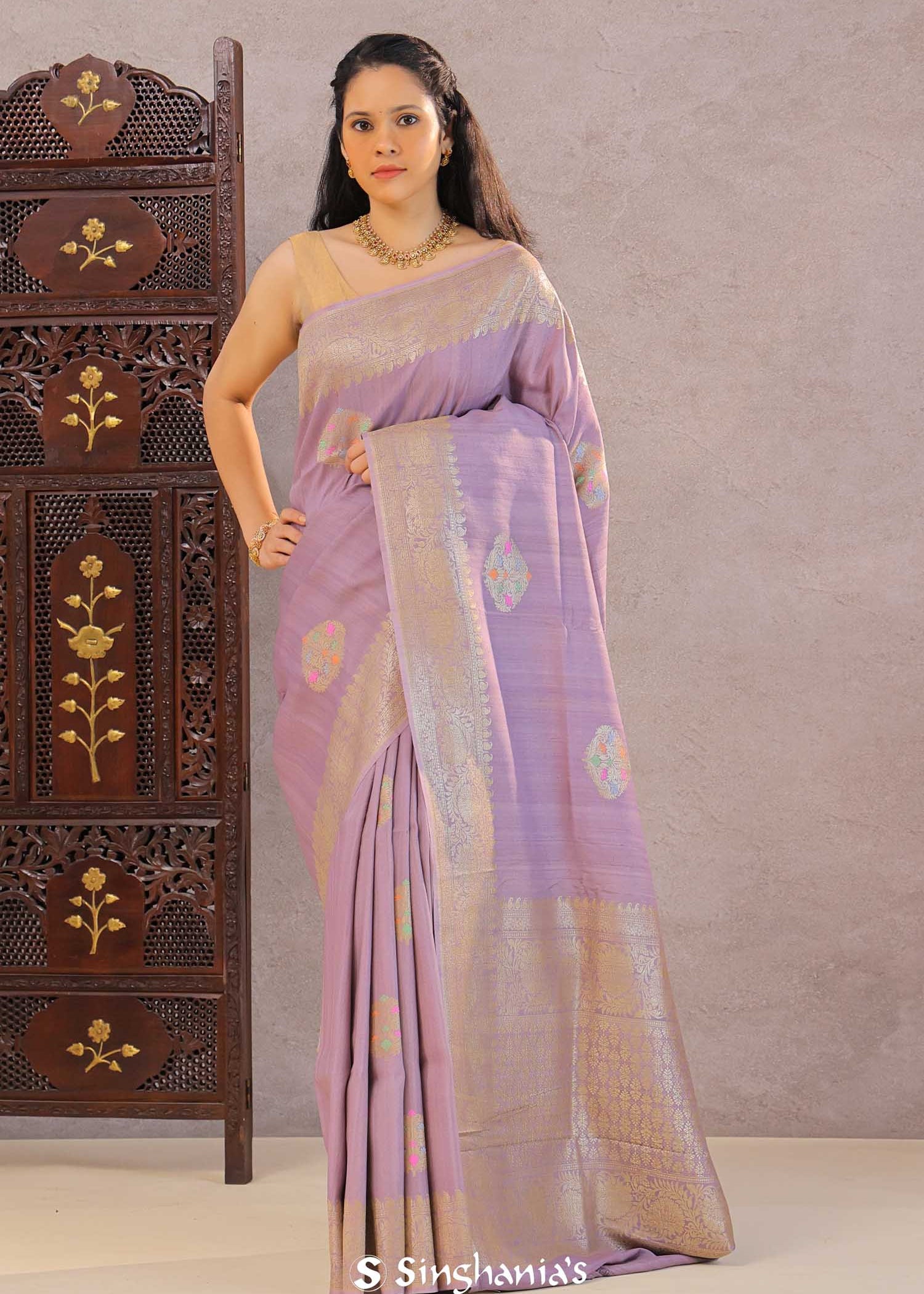 Autumn Purple Banarasi Silk Saree With Meenakari Floral
