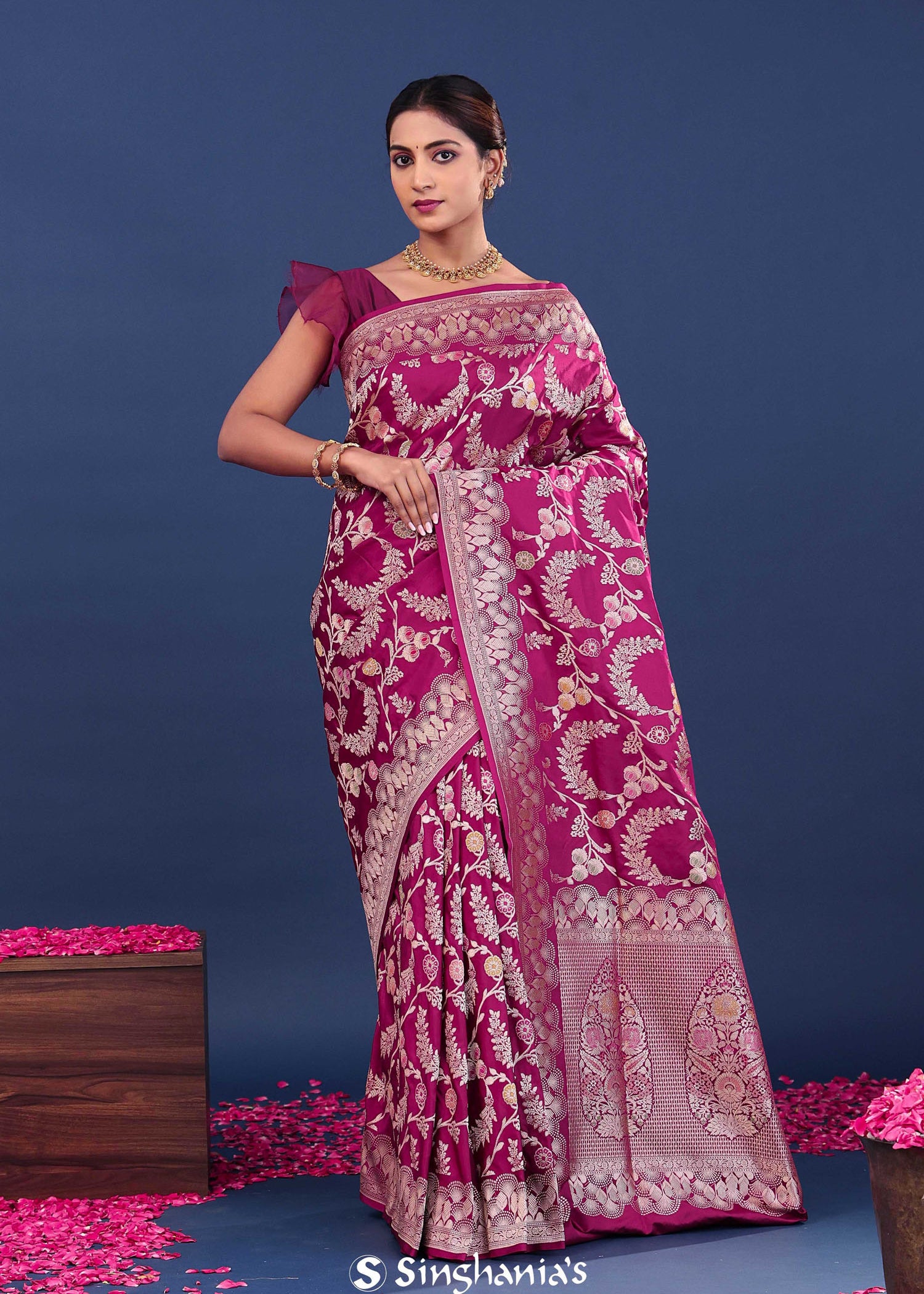 Deep Pink-Purple Banarasi with Chevron Meenakari Weave