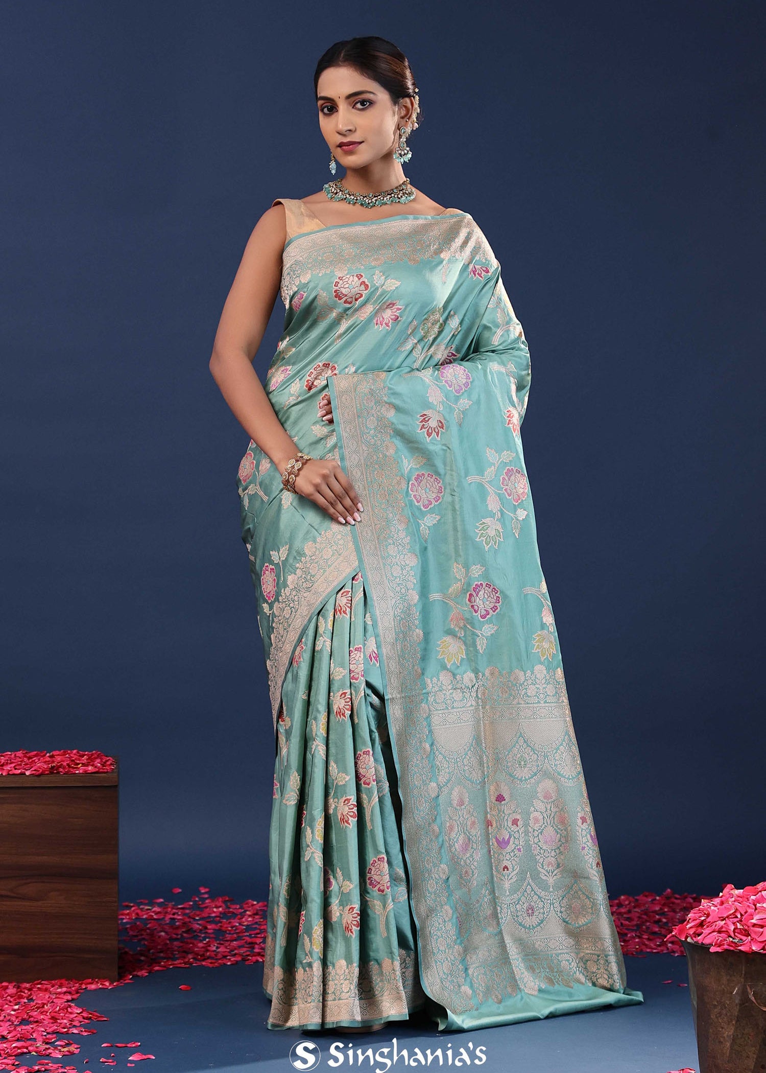 Kaitoke Green Meenakari Banarasi Silk Saree