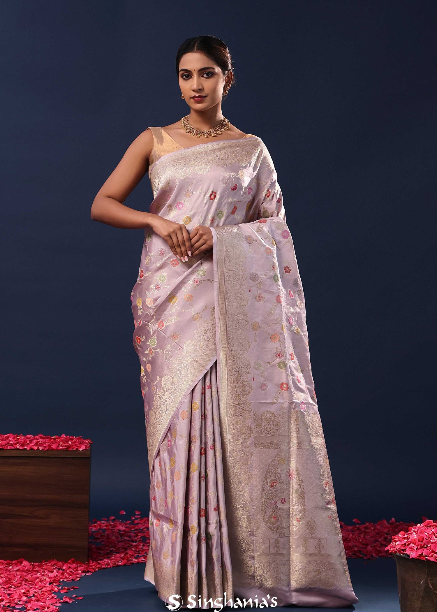 Pale Purple Kanjivaram Saree Floral Meenakari Weave