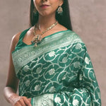 Green Banarasi Silk Saree With Silver Zari Border