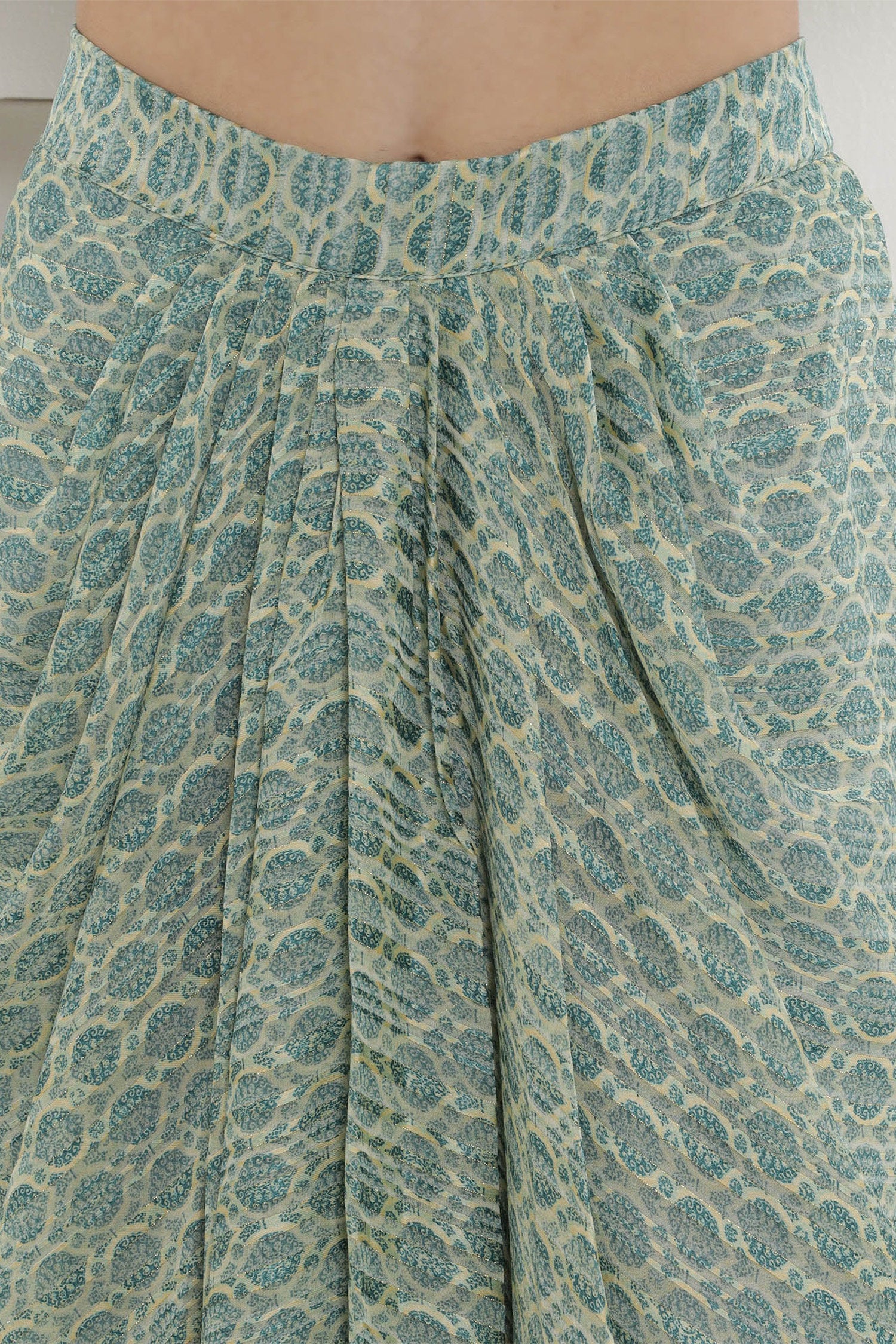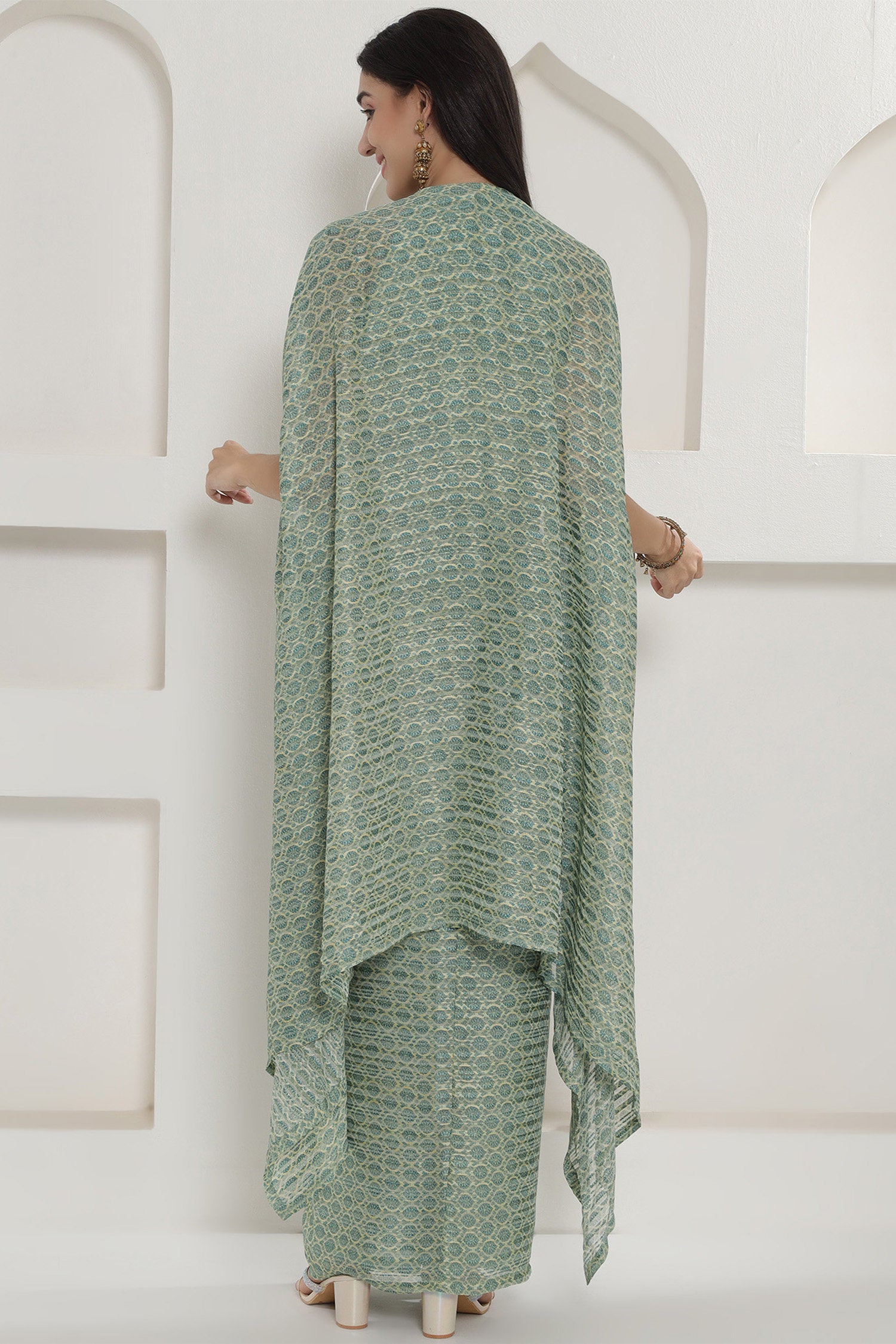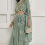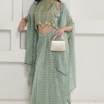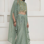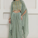 Green Georgette Cape Inner And Dhoti Set