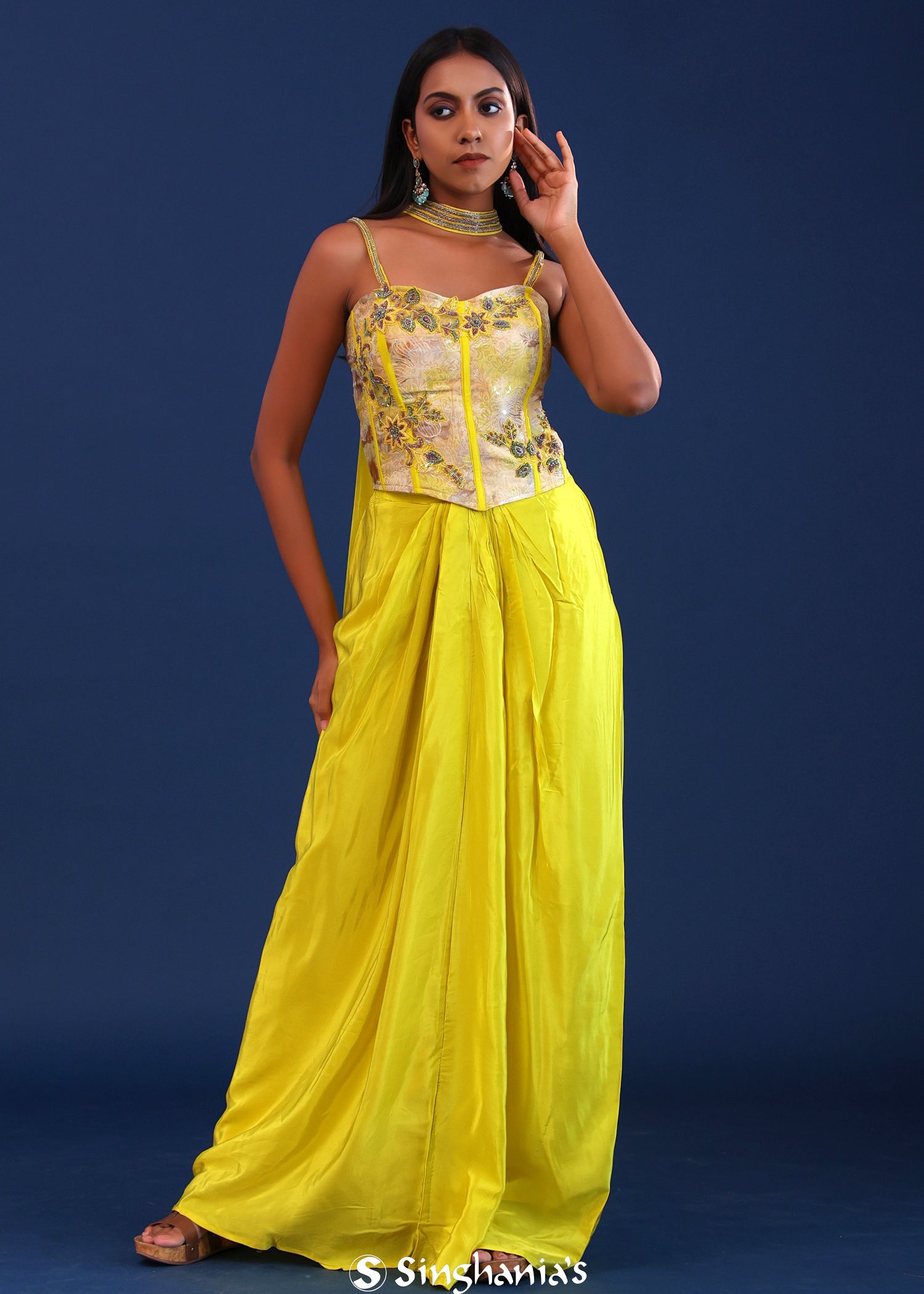 Bright Lime Green Crepe Silk Indo Western Skirt Set