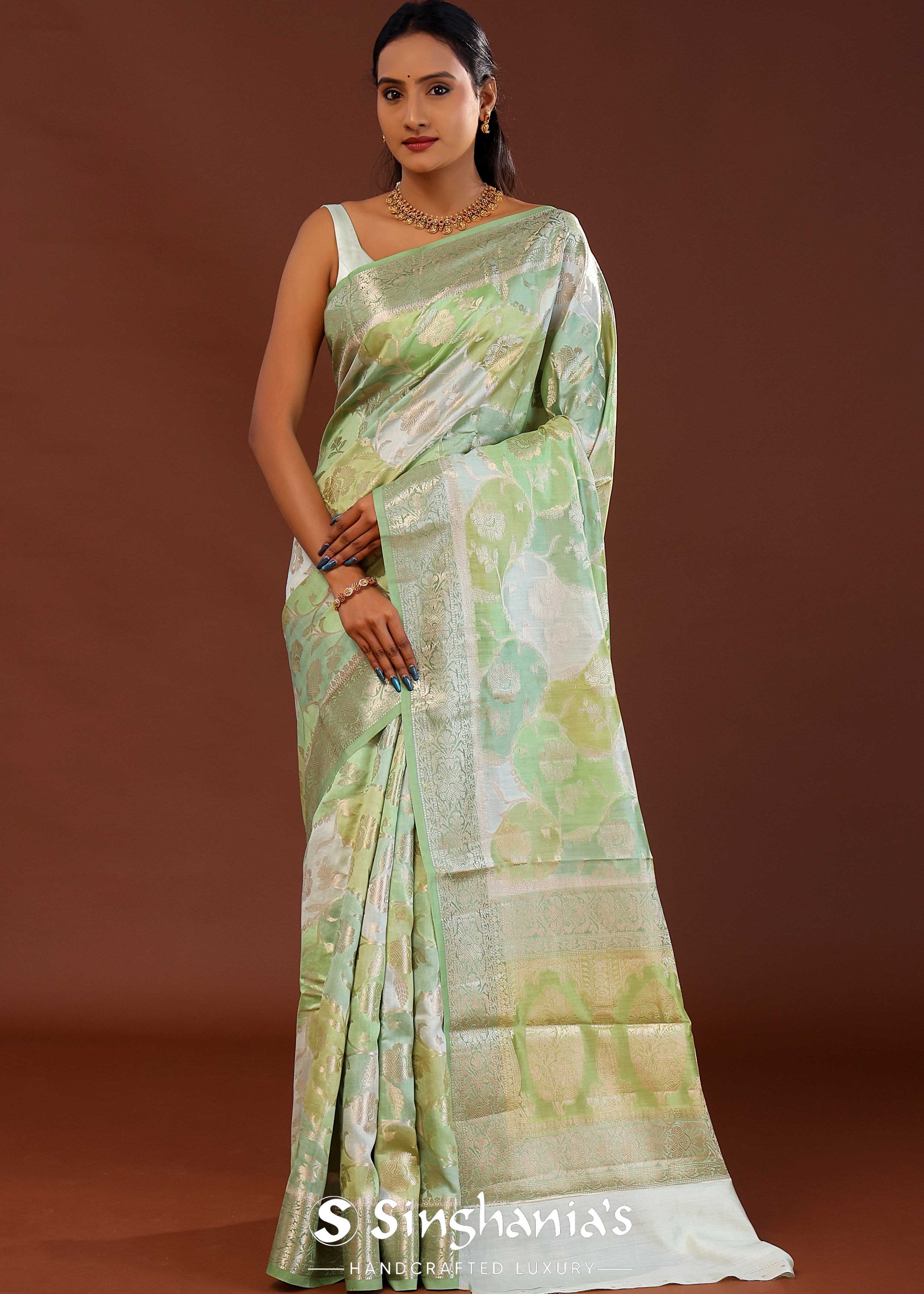 Pistachio Green Organza Embroidery Saree With Floral Border