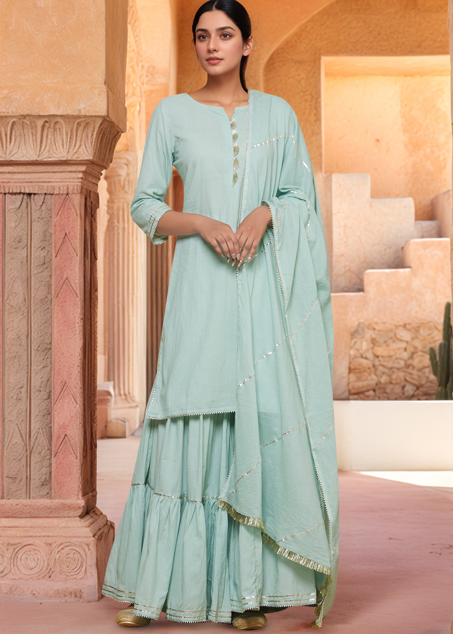 Dark Mint Green Crush Tissue Saree With Paisley Border