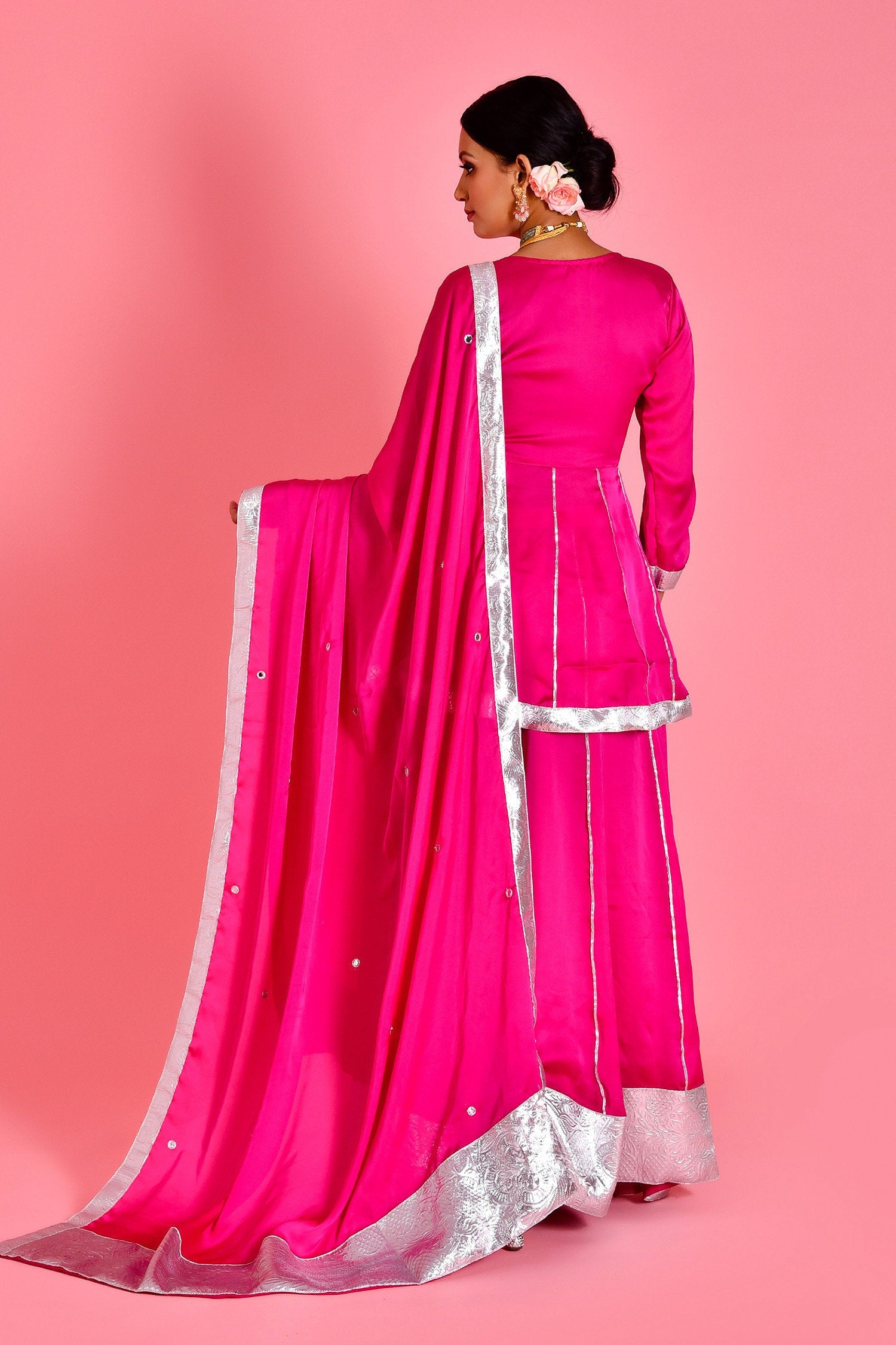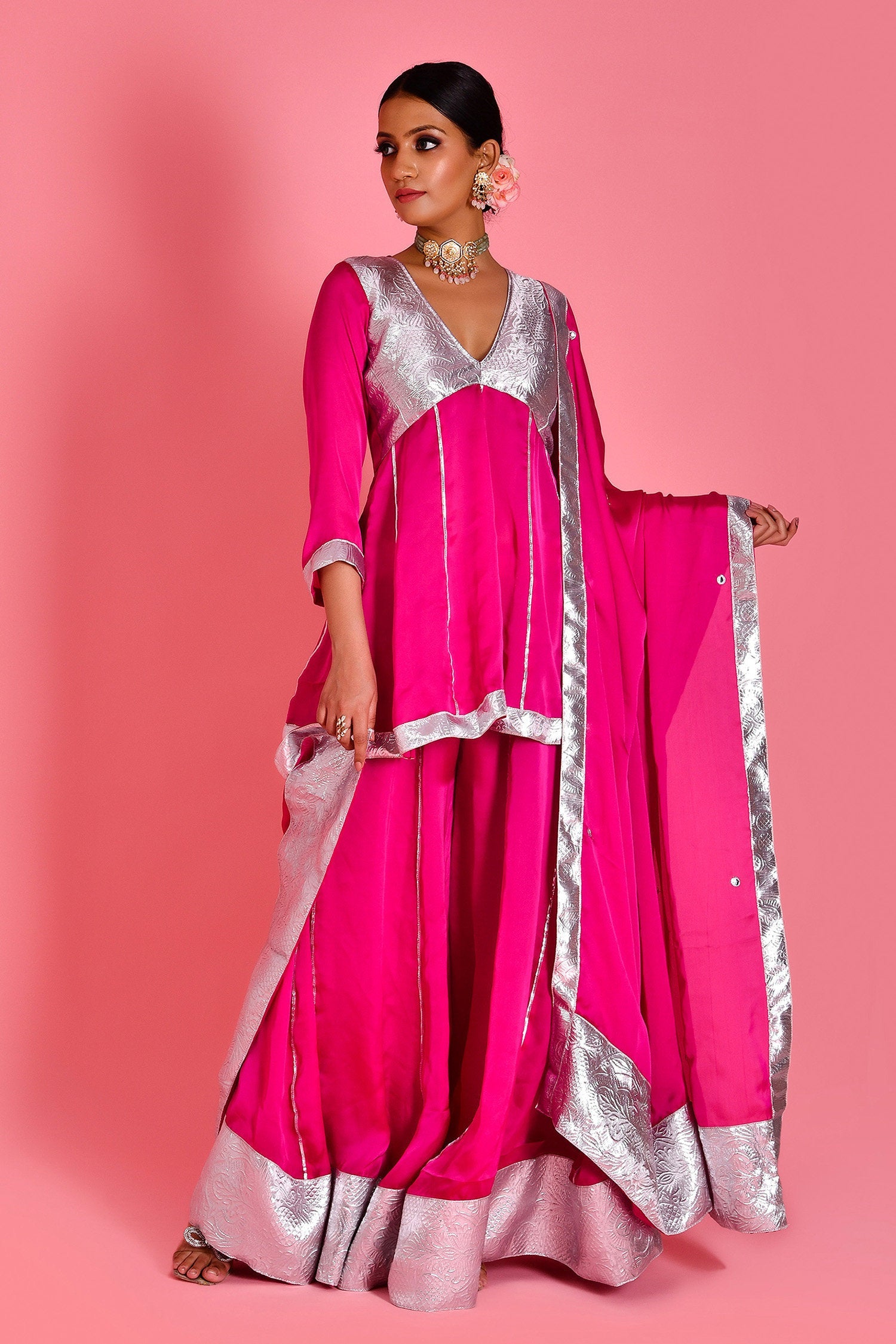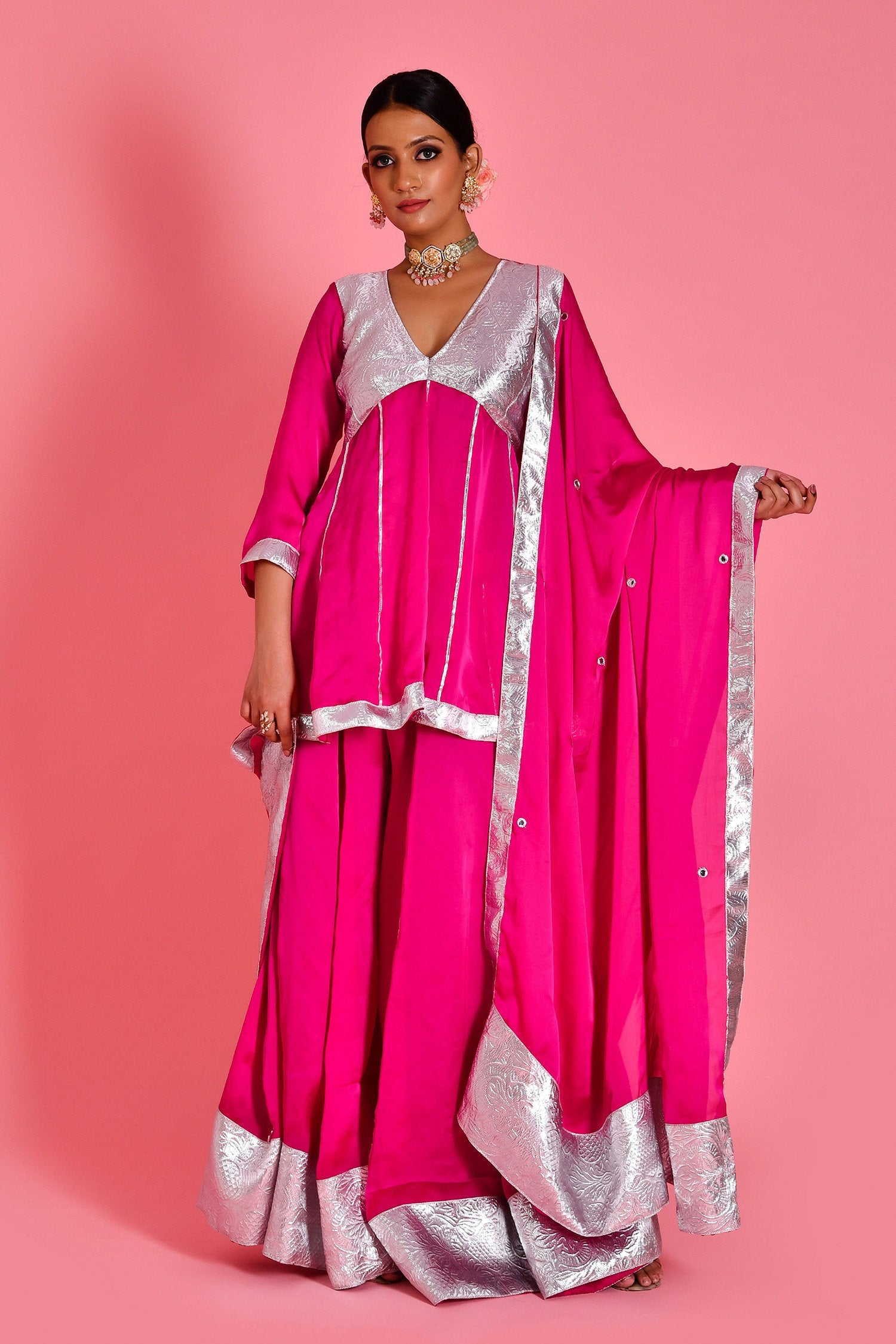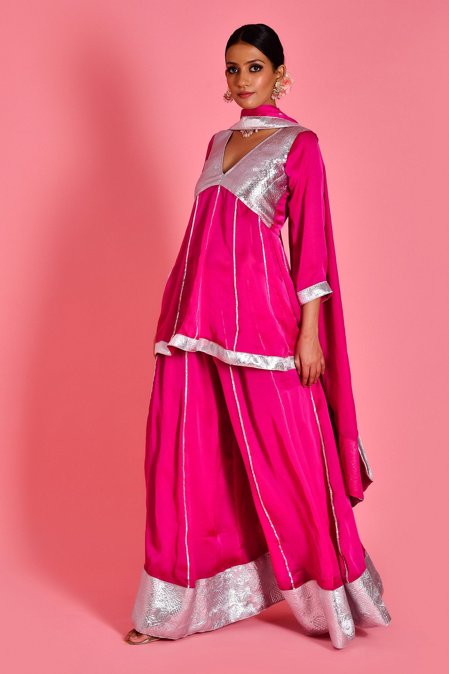 Magenta Pink Satin Silk Sharara Set