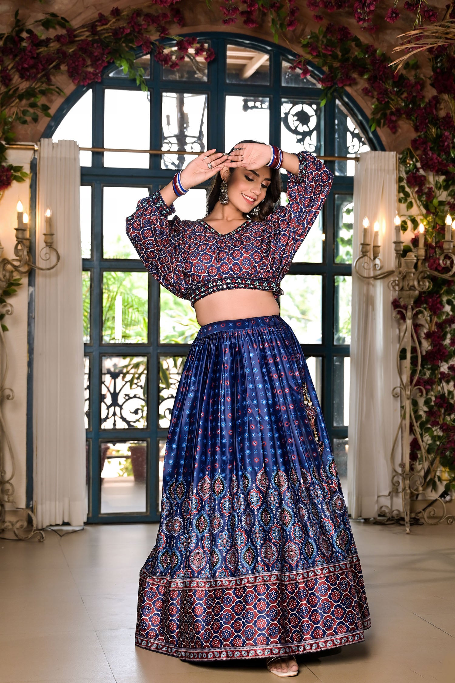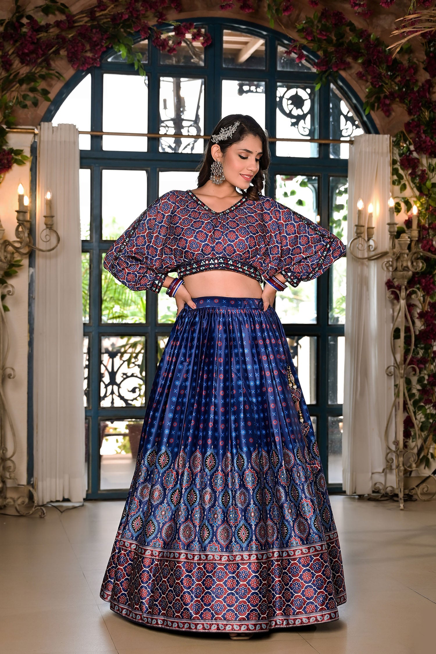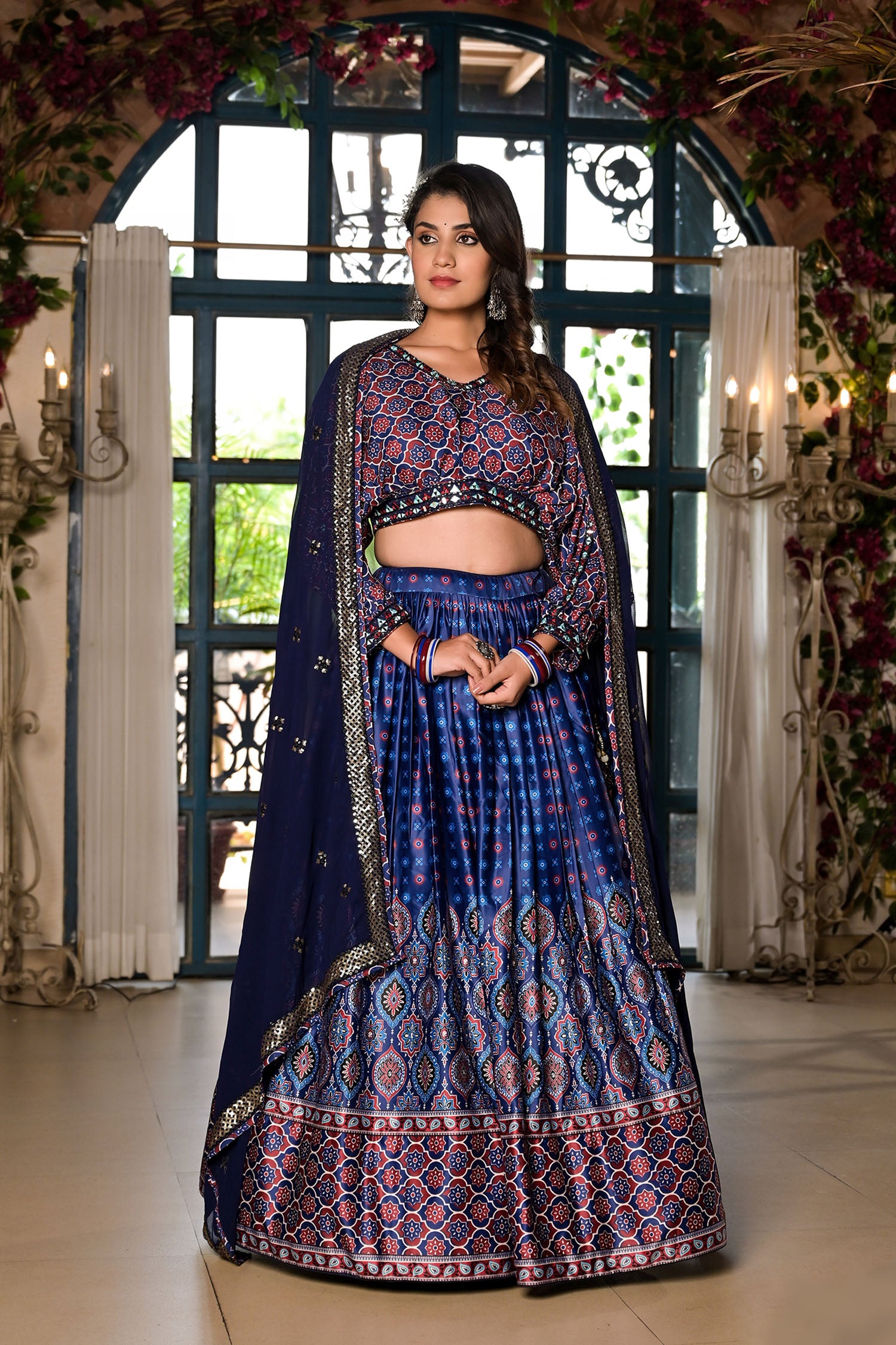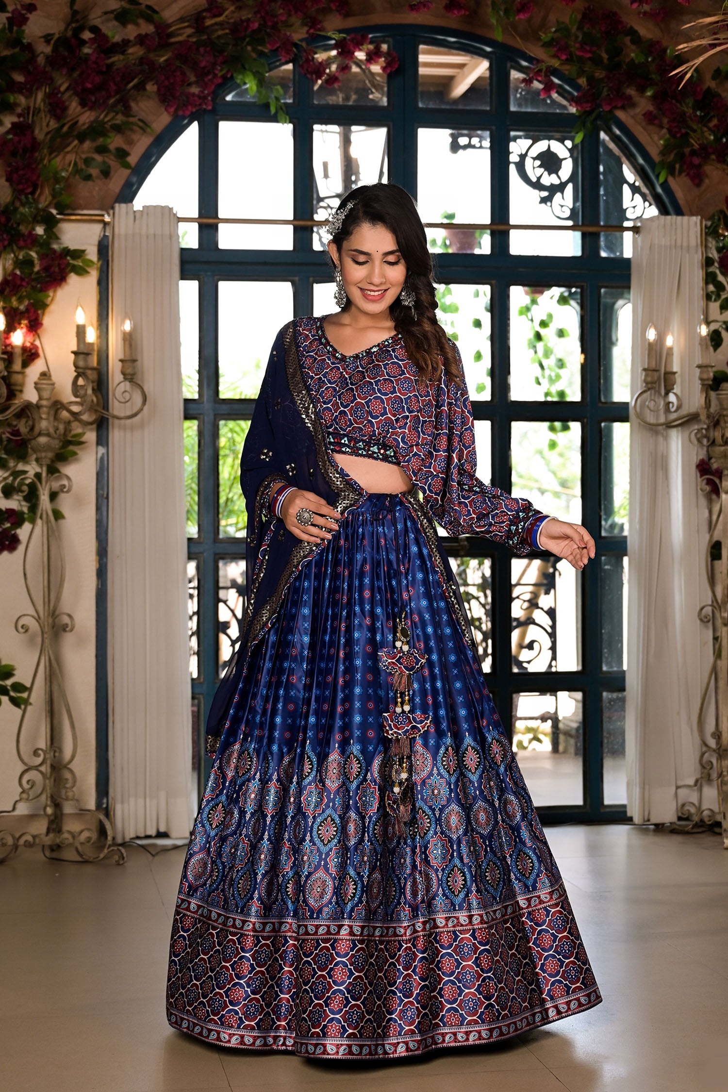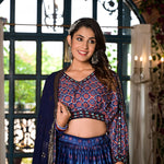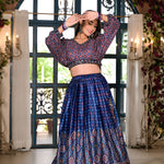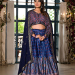 Royal Blue Satin Printed Lehenga Set