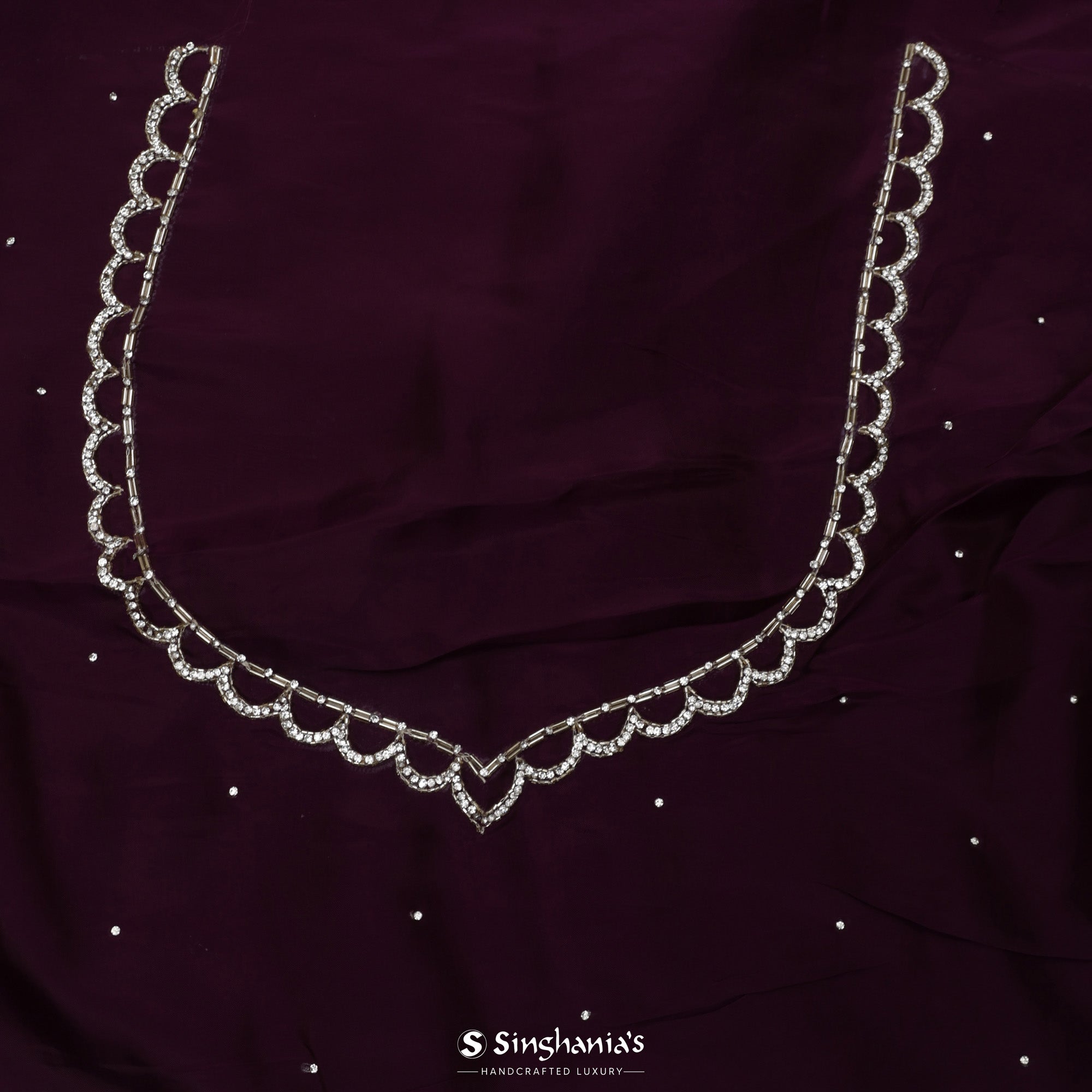 This Rubine Red Satin Saree features classic floral buttis in sequins and glass beads, ideal for festive and wedding wear. The rich colour paired with embroidered border makes this saree lively and elegant.