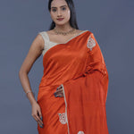 Rusty Orange Colour Satin Crepe Saree