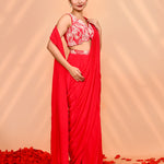 Reddish Pink Crepe Silk Draped Saree