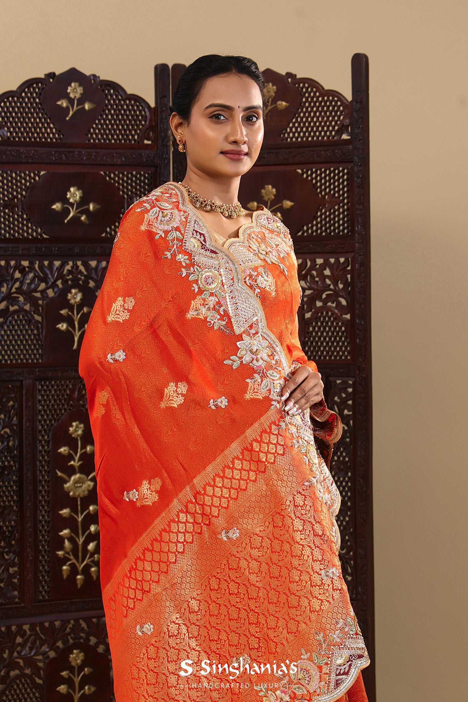 Pair with minimal jewellery and soft makeup to highlight the timeless elegance Singhaniaβs is known for.