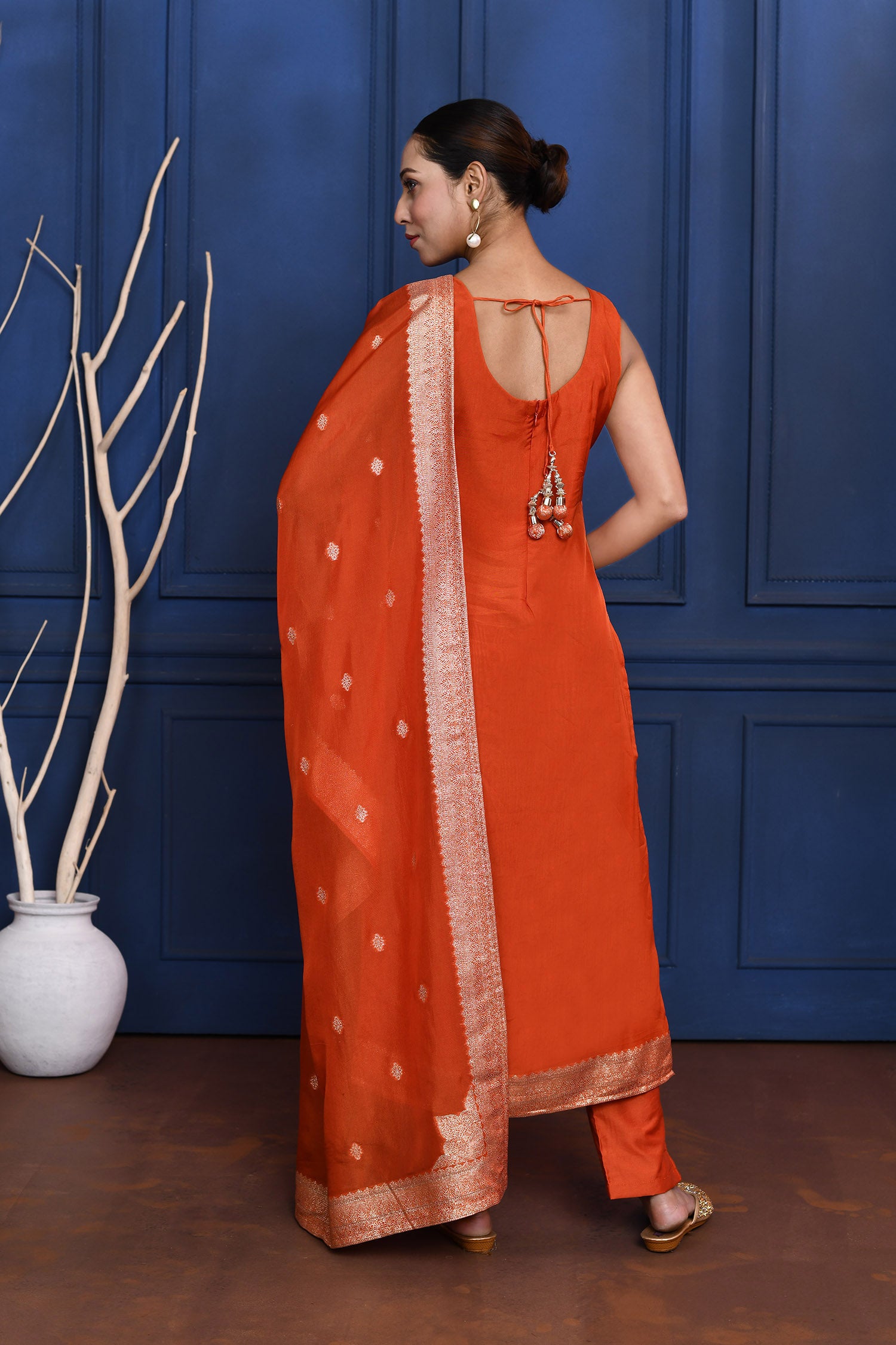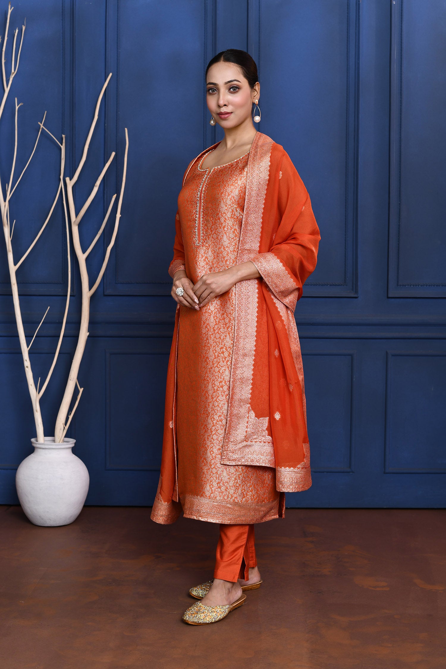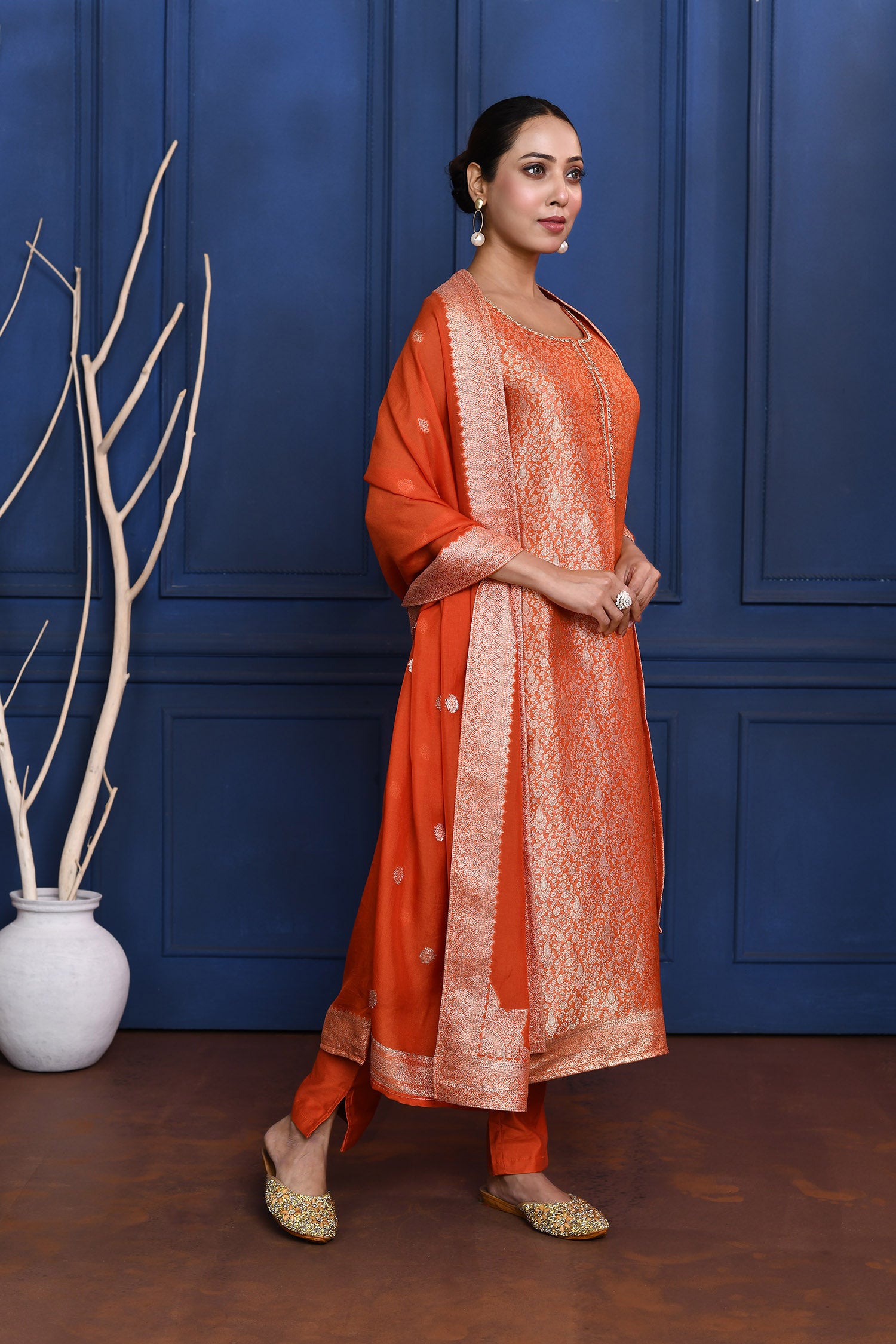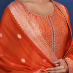 Bright Orange Banarasi Brocade Silk Kurta Set
