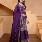 Dark Purple Embroidered Silk Sharara Set