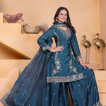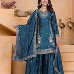 Teal Green Embroidered Crepe Sharara Set