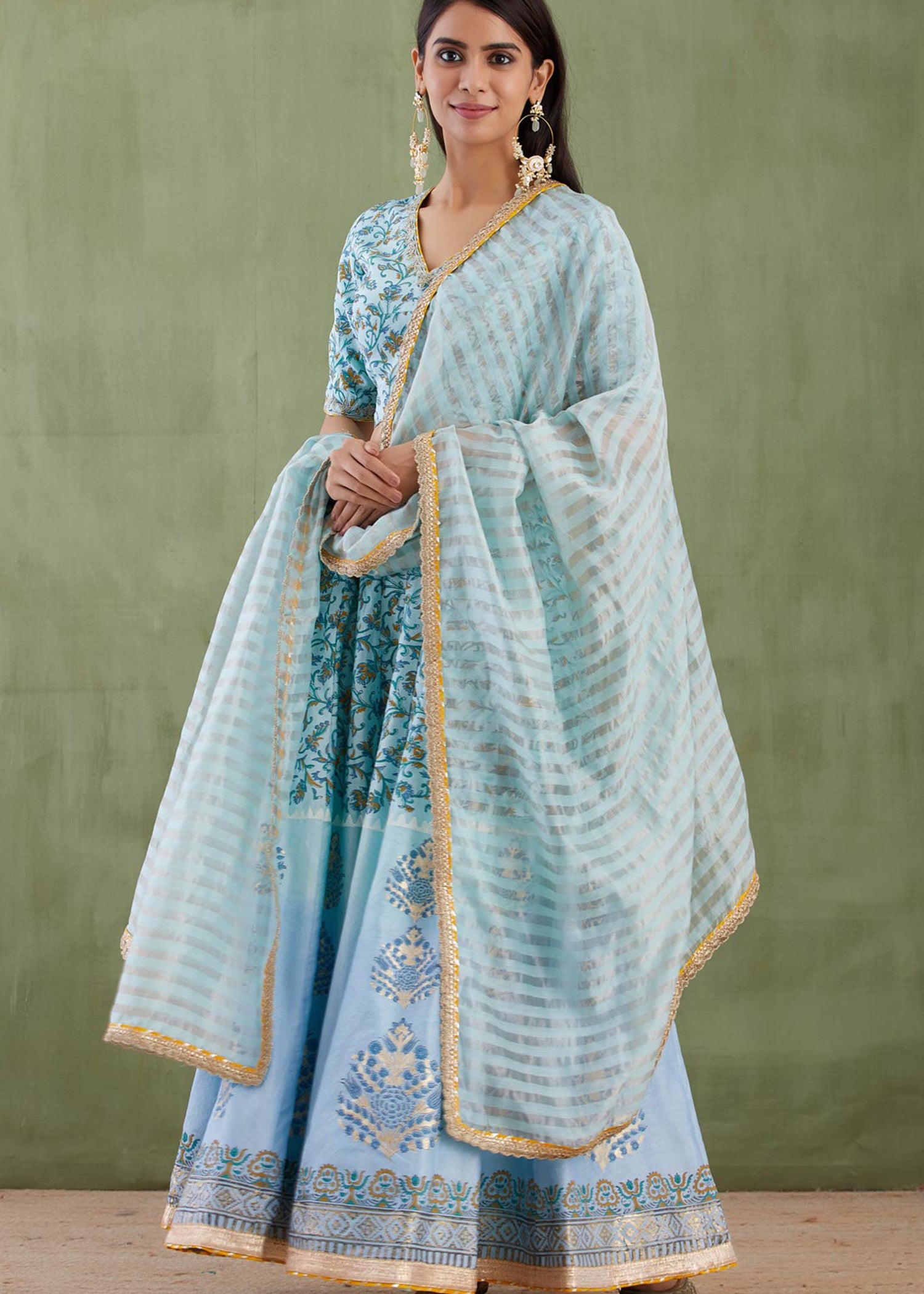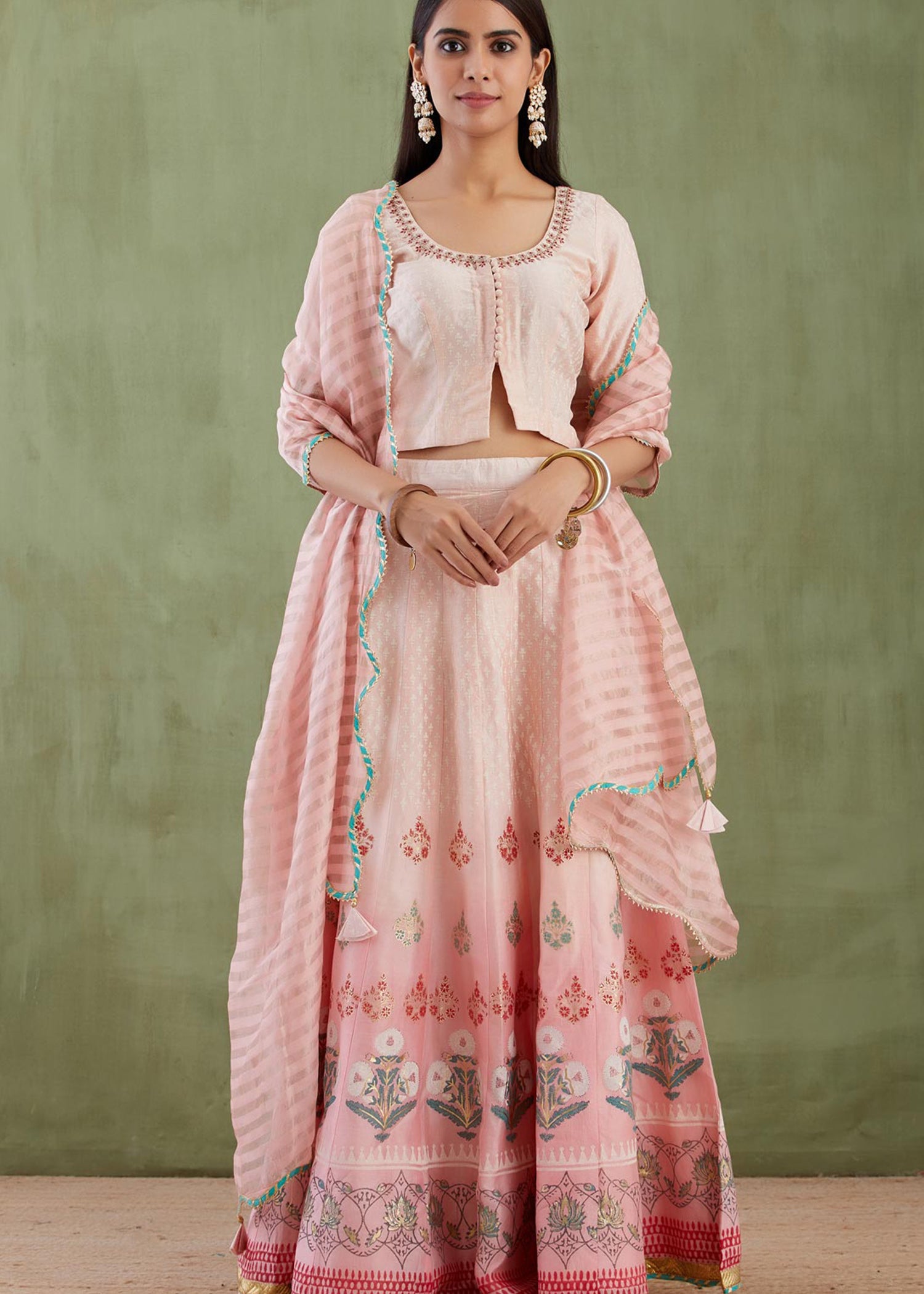 Floral Printed Soft Lilac Chanderi Lehenga Set