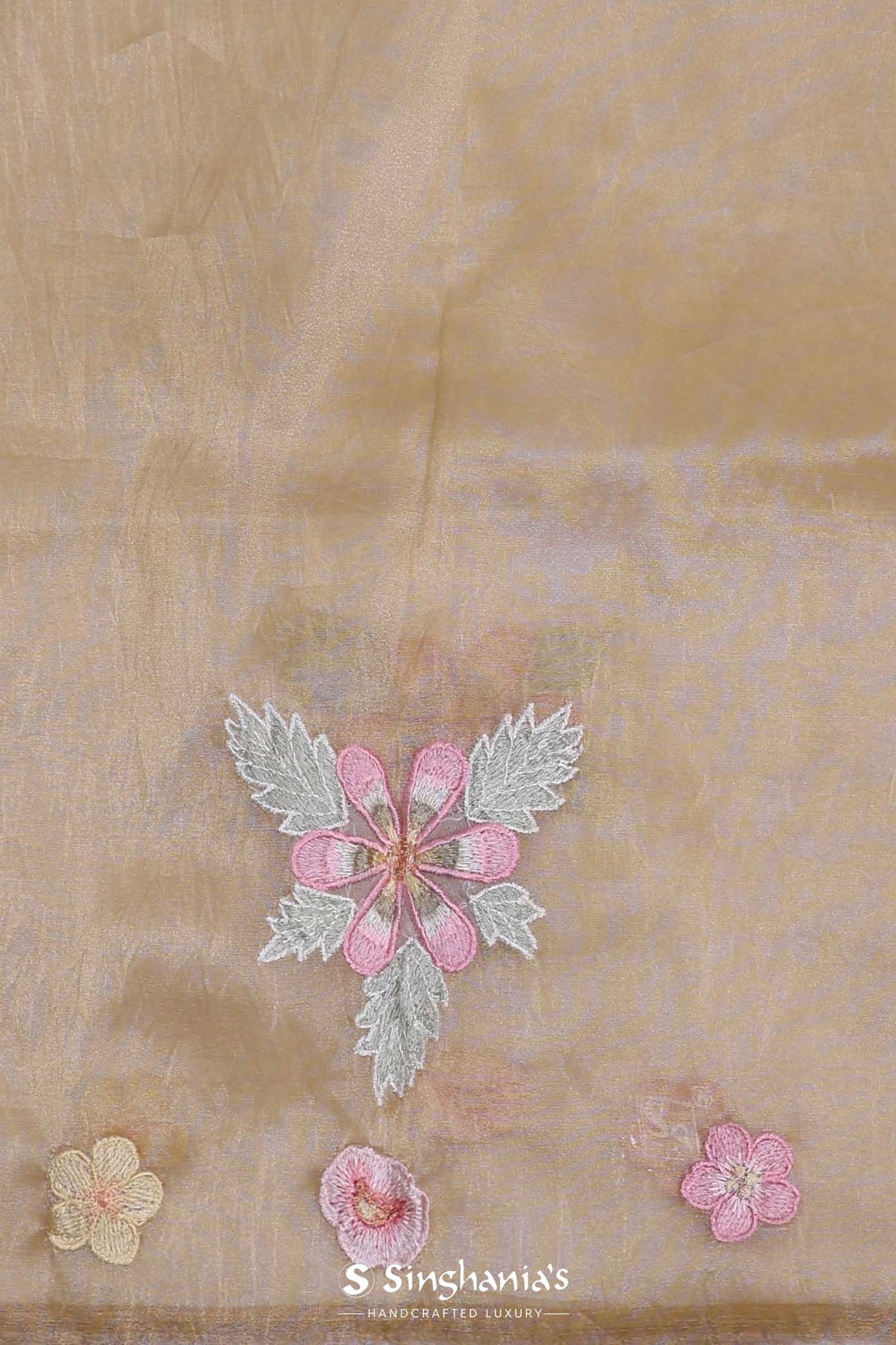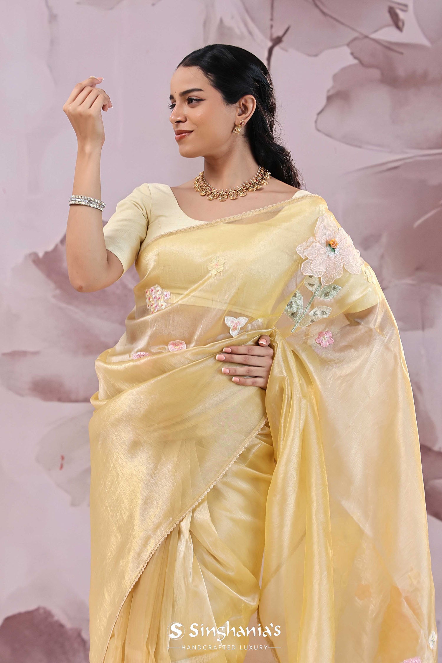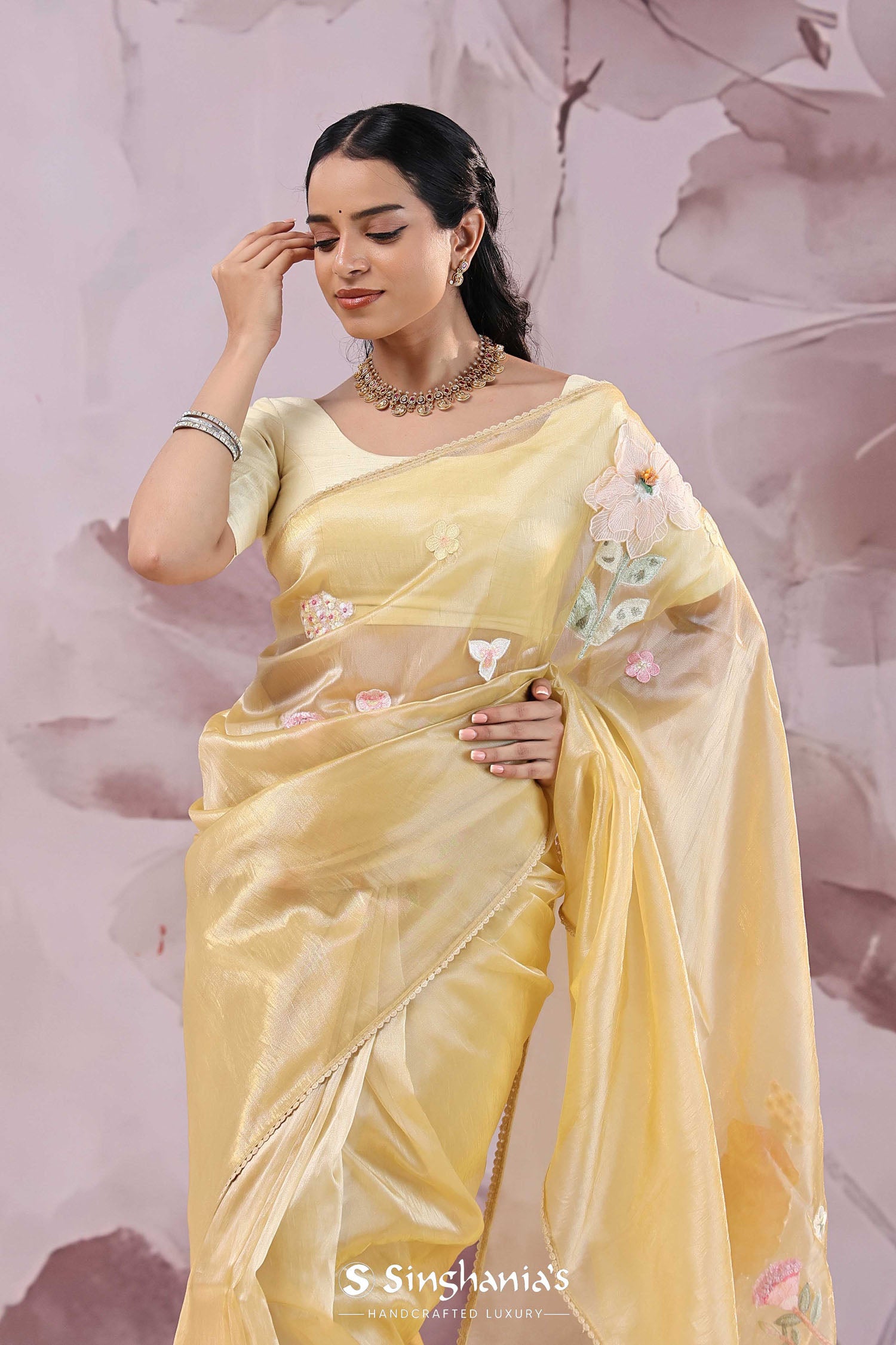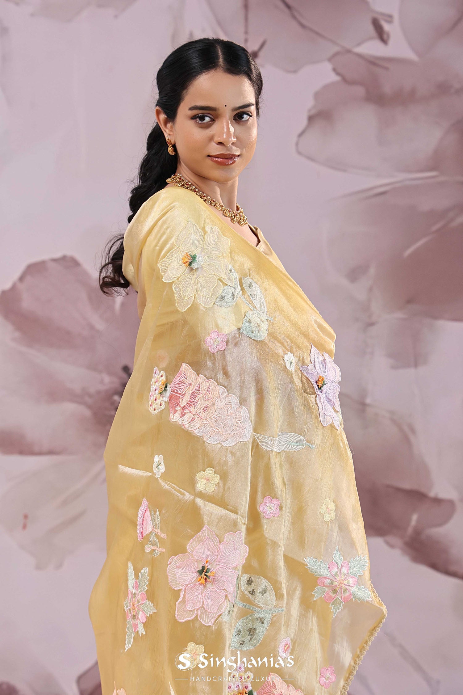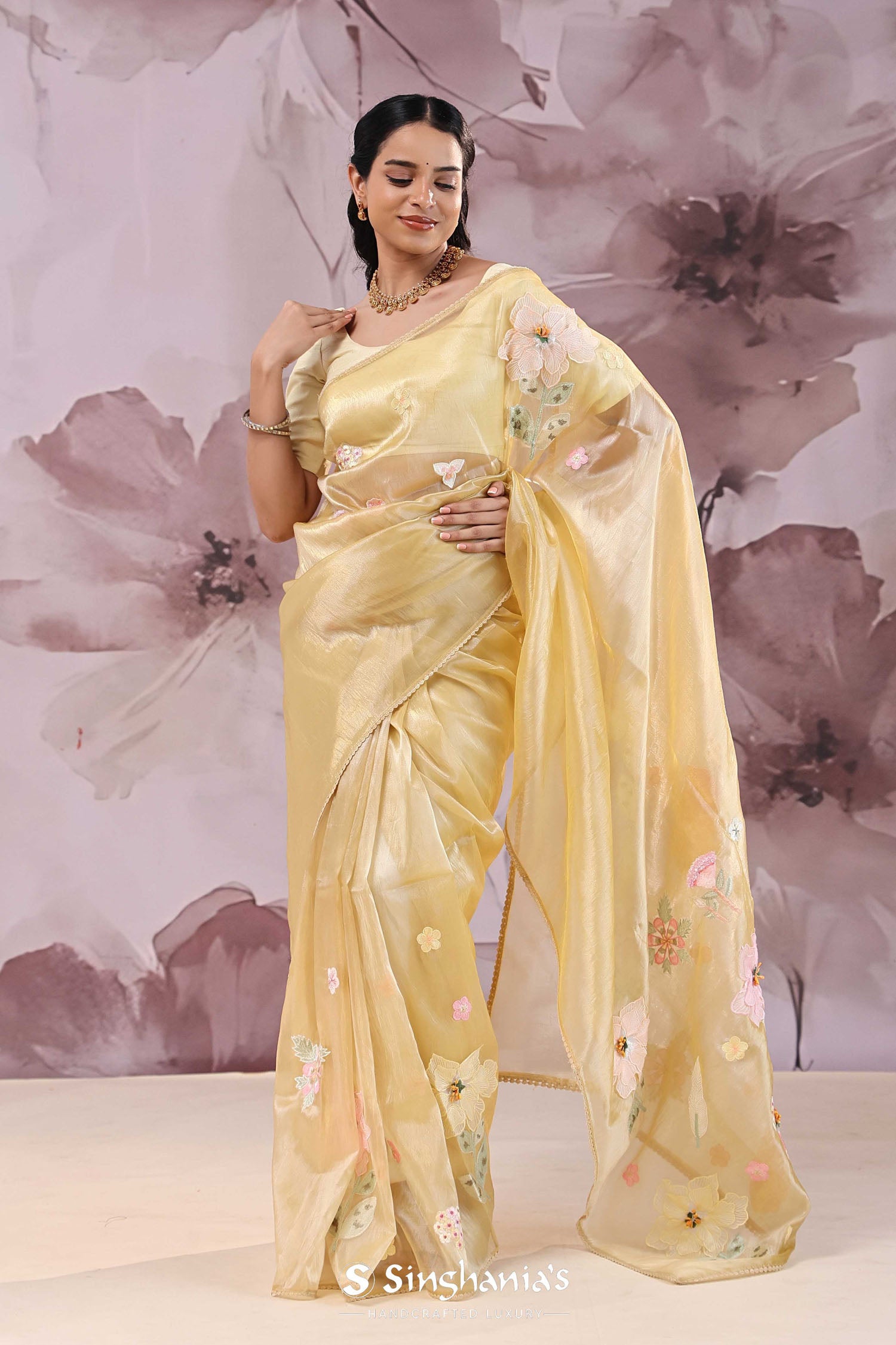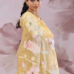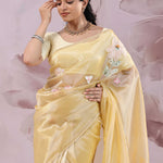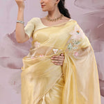 Brass Yellow Organza Saree With Embroidery