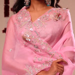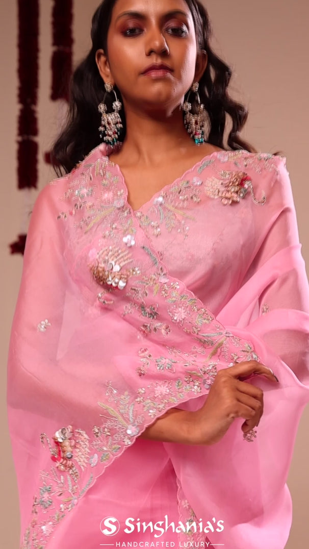 Bright Pink Organza Handcrafted Saree