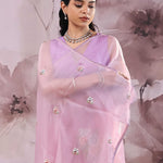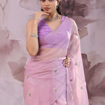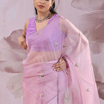 Lavender Pink Organza Saree With Petit Embroidery